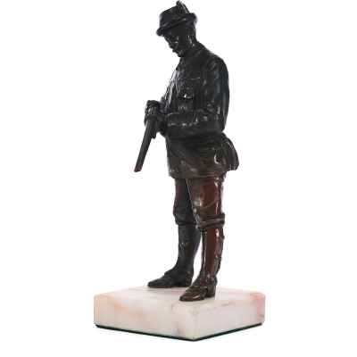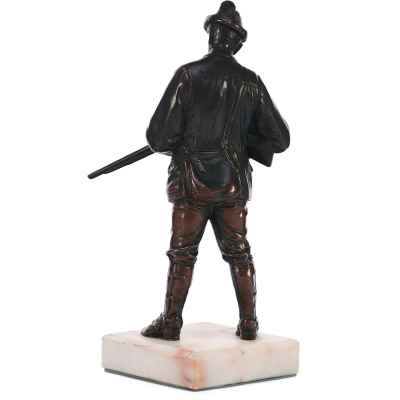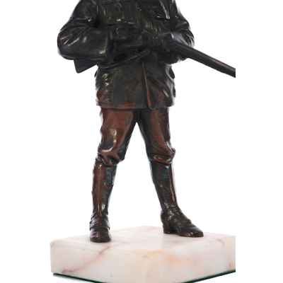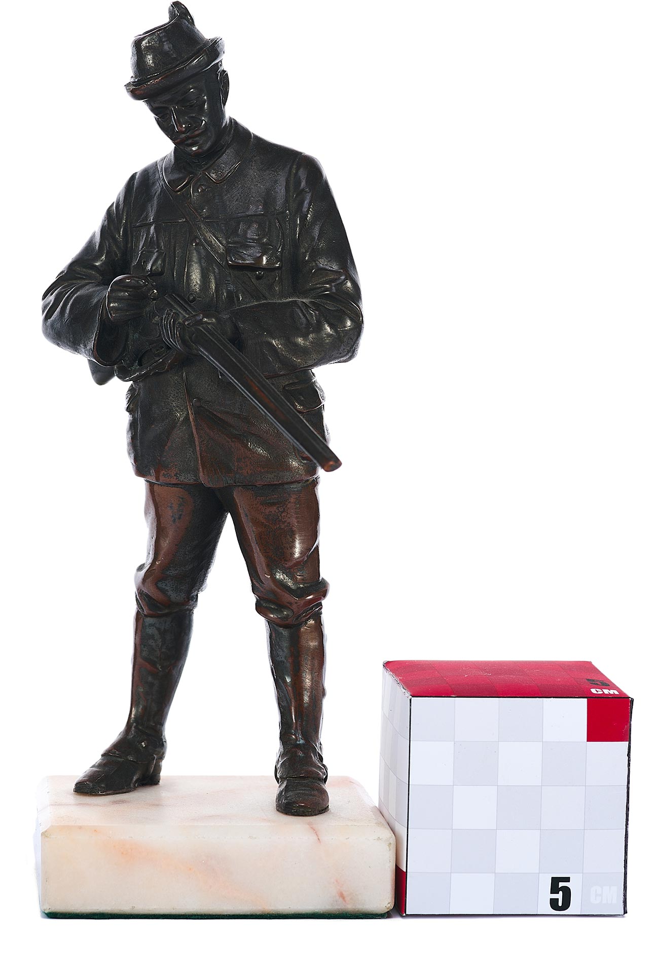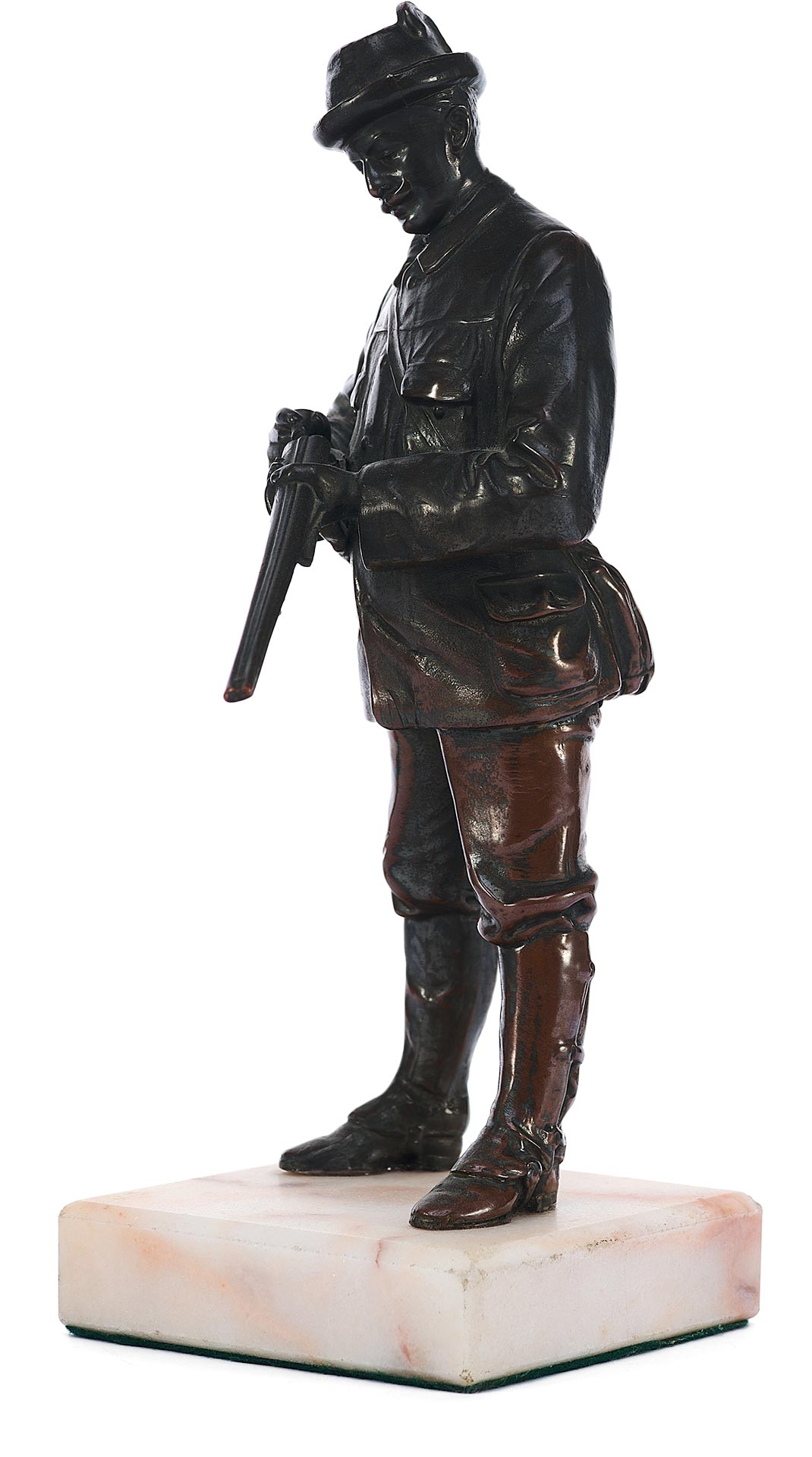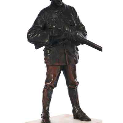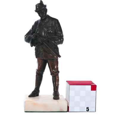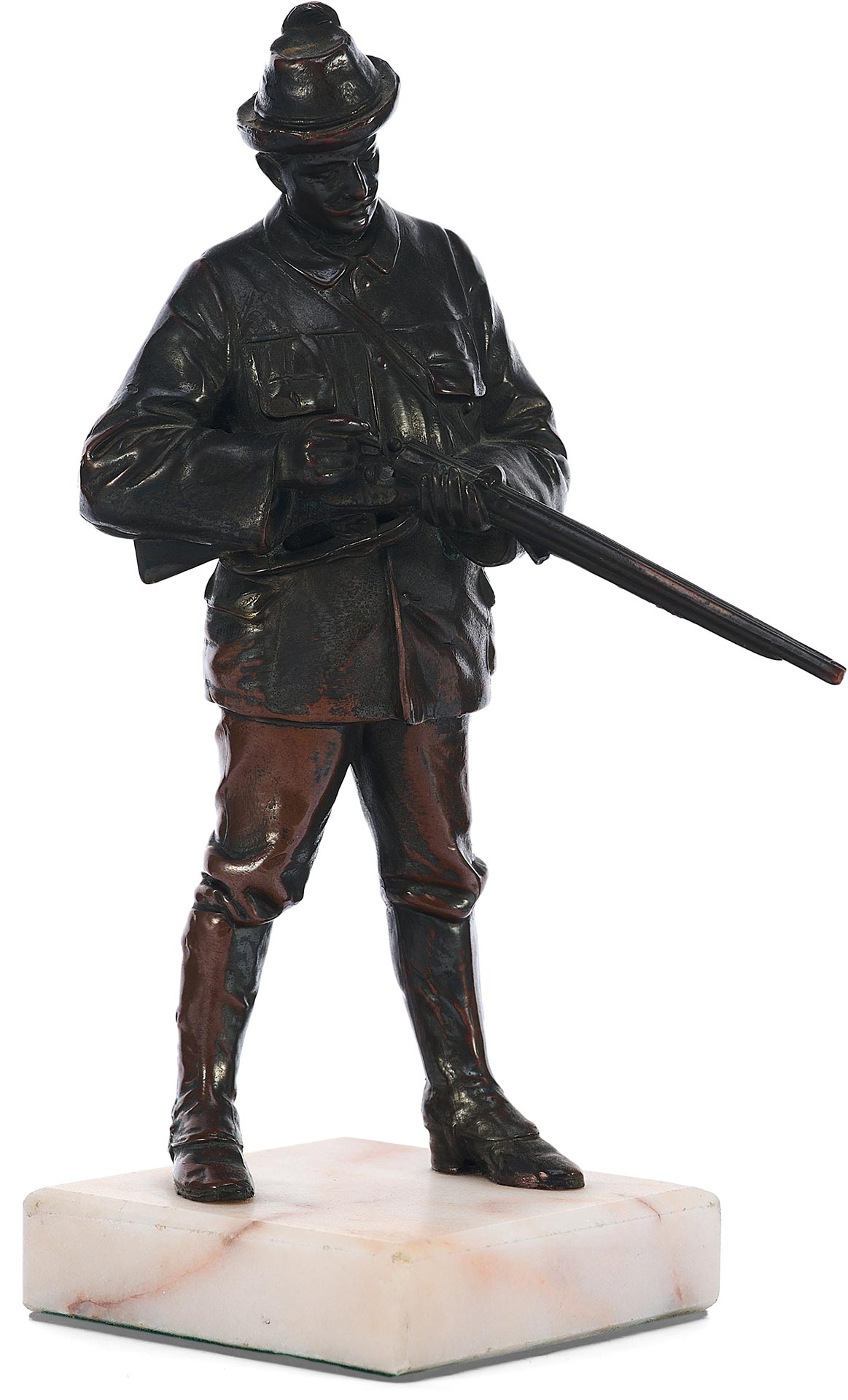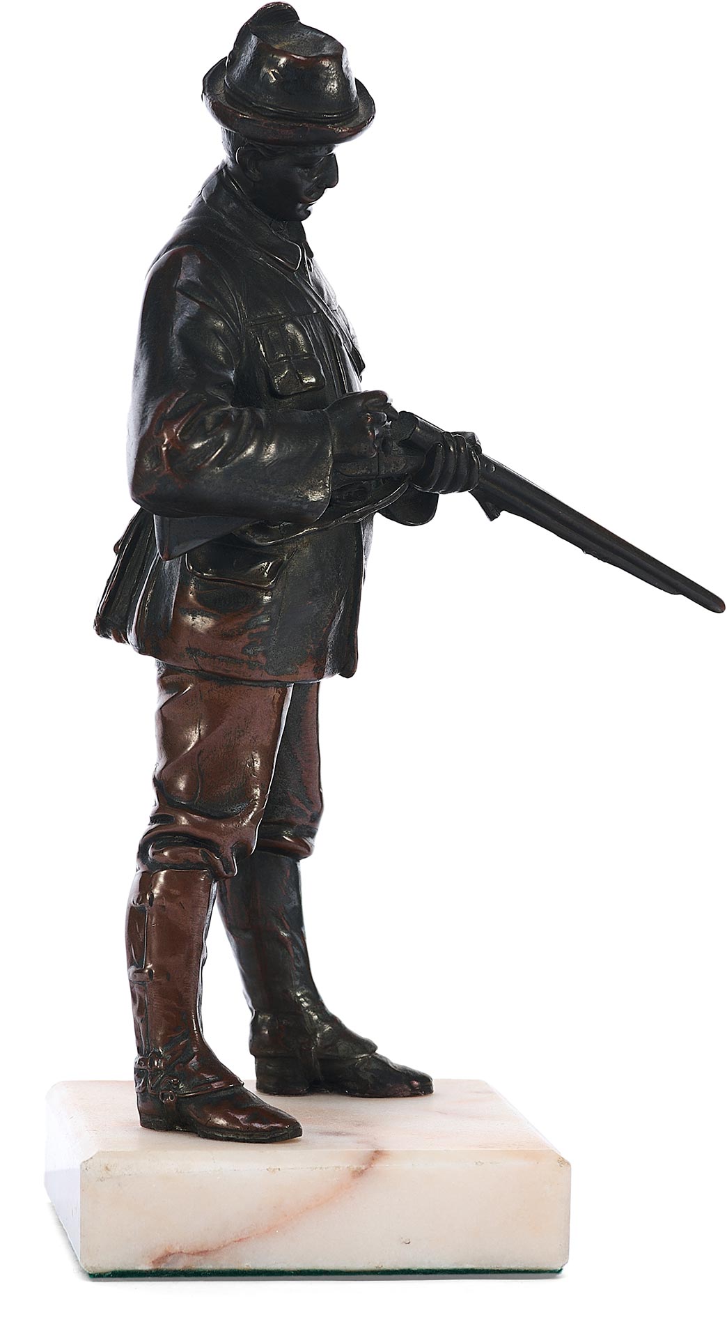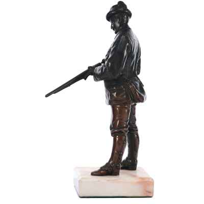 Скульптура, представляющая охотника в осенней кожаной куртке и тирольской шляпе, перезаряжающего ружье. Испокон веков охота требовала зачастую больших затрат и во многом была увлечением аристократии, поскольку воспринималась не только как светский ритуал, но и как военная тренировка будущих рыцарей. Традиций ведения охоты в Европе было множество, их различия во многом основывались на особенностях местной фауны, и каждая из этих традиций имела не