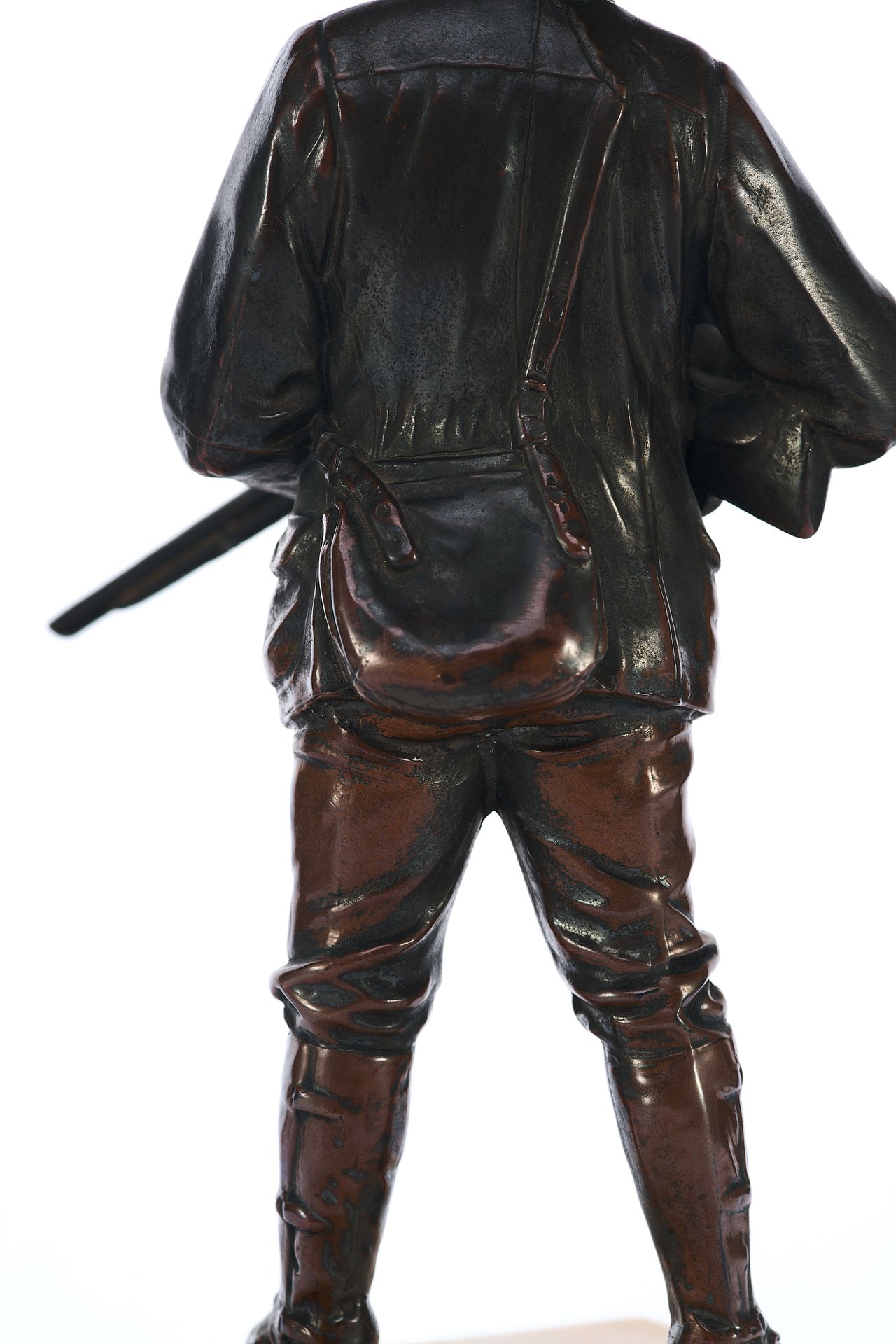 только свои технические нюансы, но и свою эстетику, что формировало определённую стилевую направленность охотничьих сцен в изобразительном искусстве. Для Северной Европы октябрь и ноябрь всегда традиционно являлись «охотничьими»: охота с собаками на водоплавающую и полевую дичь, на кабана и оленя, конная охота на лис, соколиная охота на зайцев и дичь и другие виды охотничьих забав проводят именно в это время года. Ещё с периода раннего средневековья изображения охоты получают широкое распространение в искусстве Северной Европы, постепенно превращаясь в целую изобразительную традицию со своими стилевыми особенностями. Наиболее профессиональными мастерами охотничьего жанра всегда являлись художники-анималисты, прекрасно знающие повадки, масти и даже характер своих «моделей». Скульптура представляет собой типичный пример кабинетной бронзовой пластики конца XIX - начала XX вв., довольно популярной в Европе.