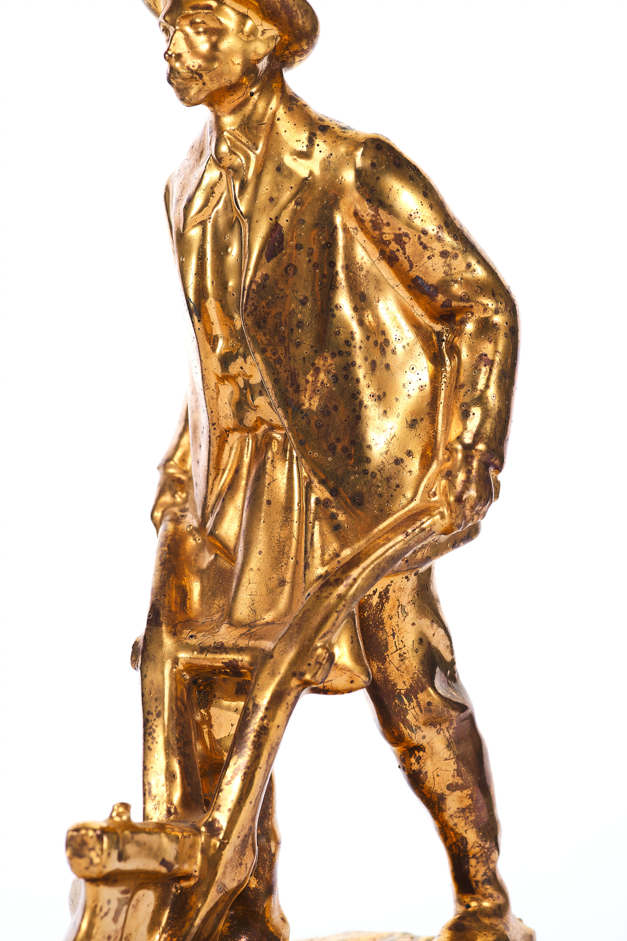 Скульптура Пахарь керамика, золочение Hugo Franz Kirsch Австрия пер. пол. ХХ в. Н-26,5 см. Австрия первая половина XX века