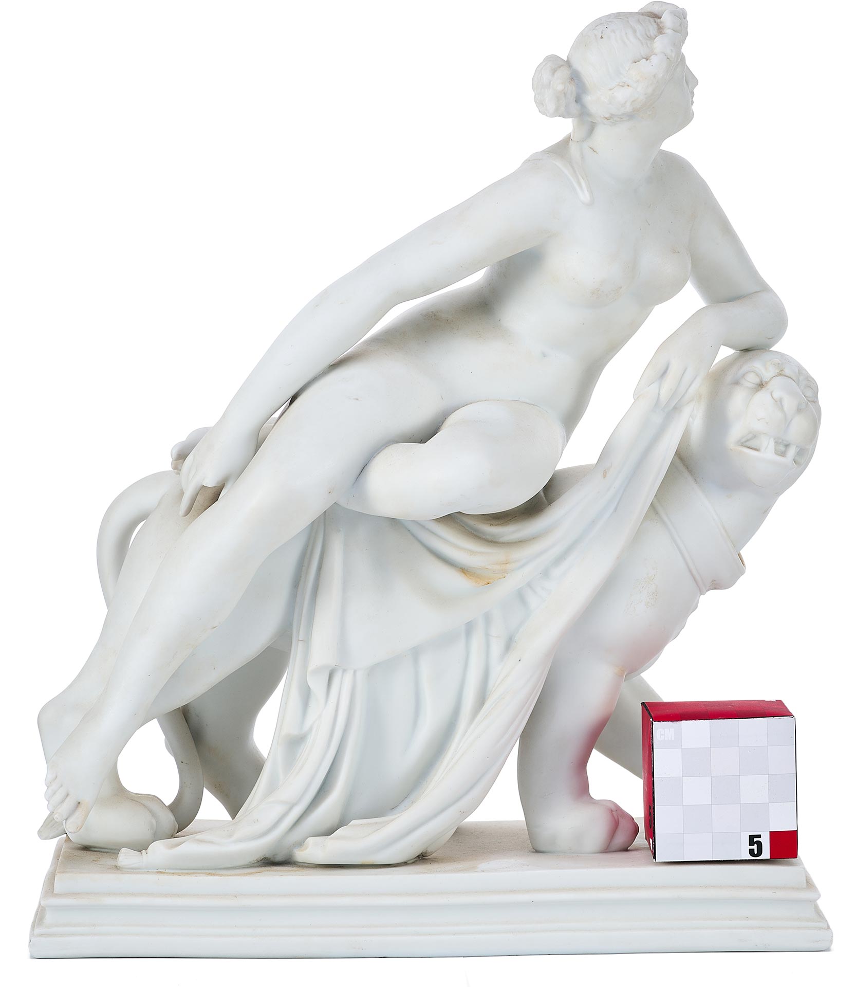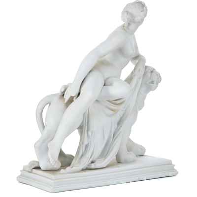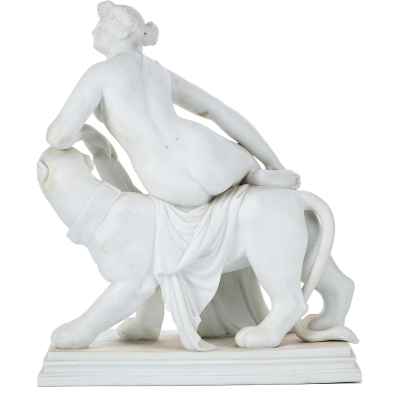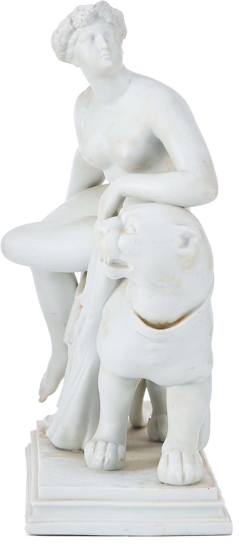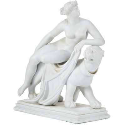 Скульптура выполненная по модели Генриха фон Даннакера (1776-1841) «Ариадна на пантере». Изначально данная скульптура серийно изготавливалась для Мейсенской фарфоровой мануфактуры.