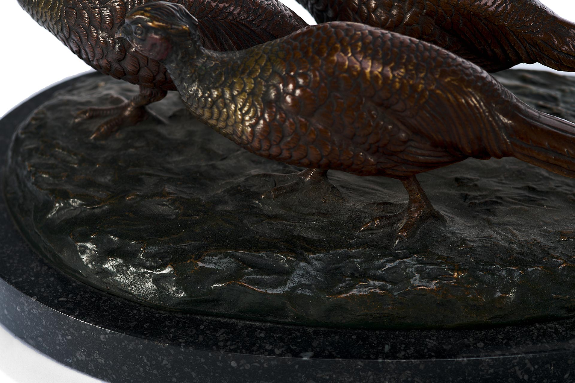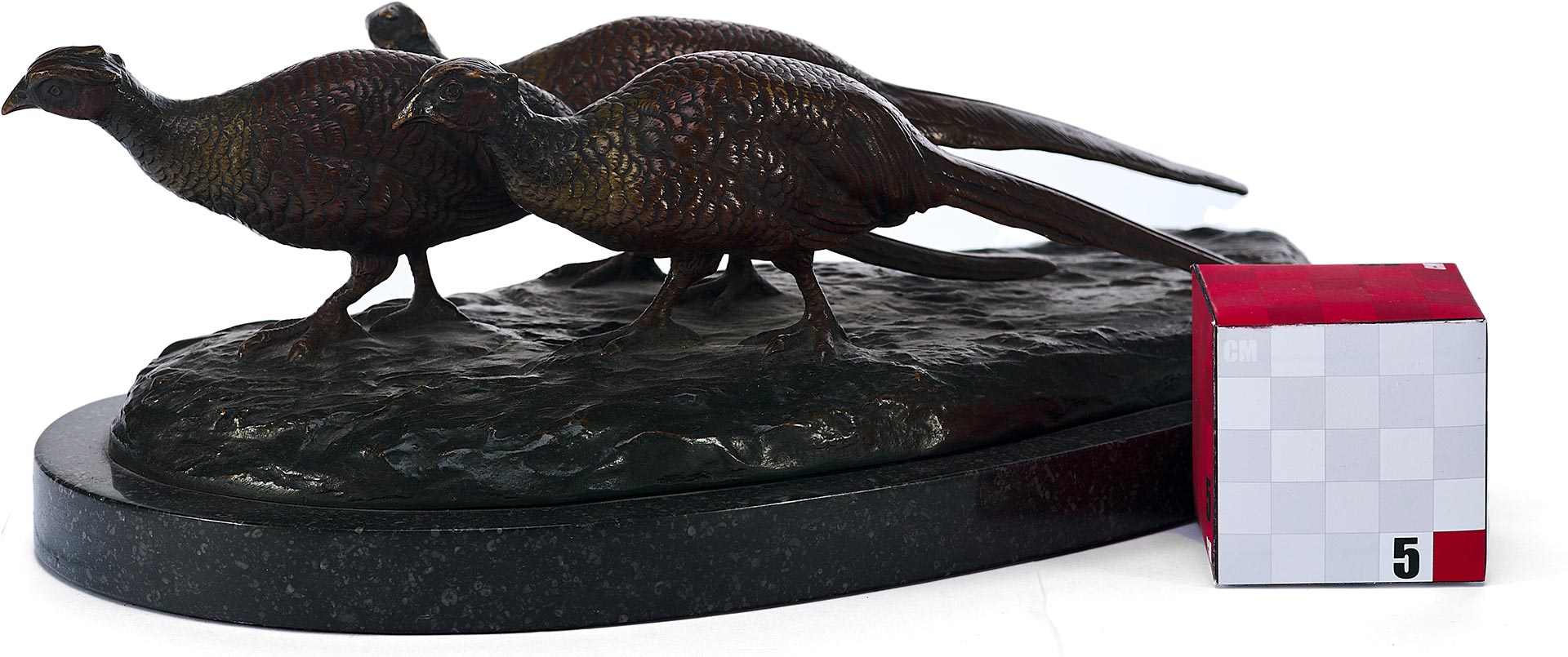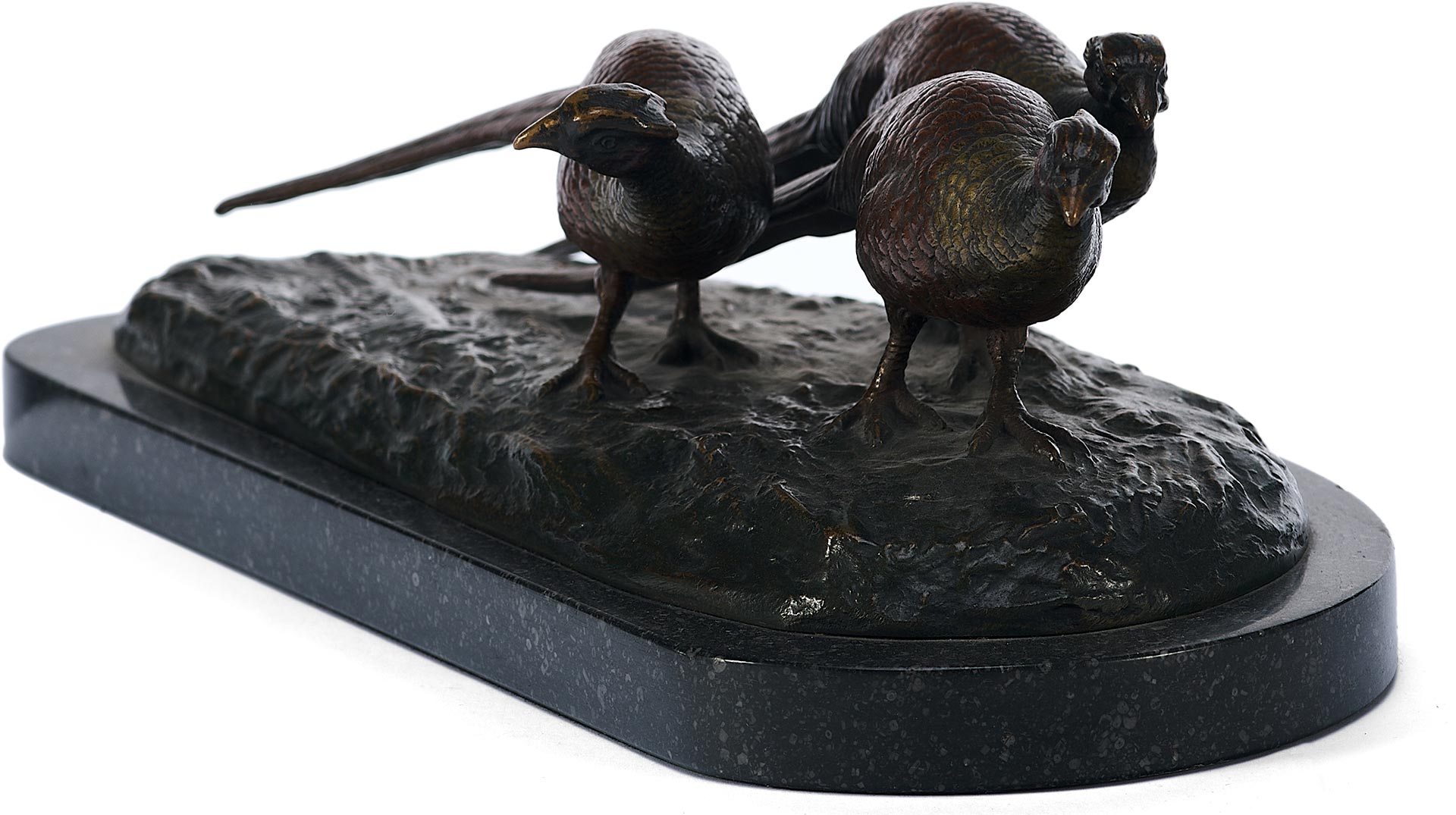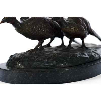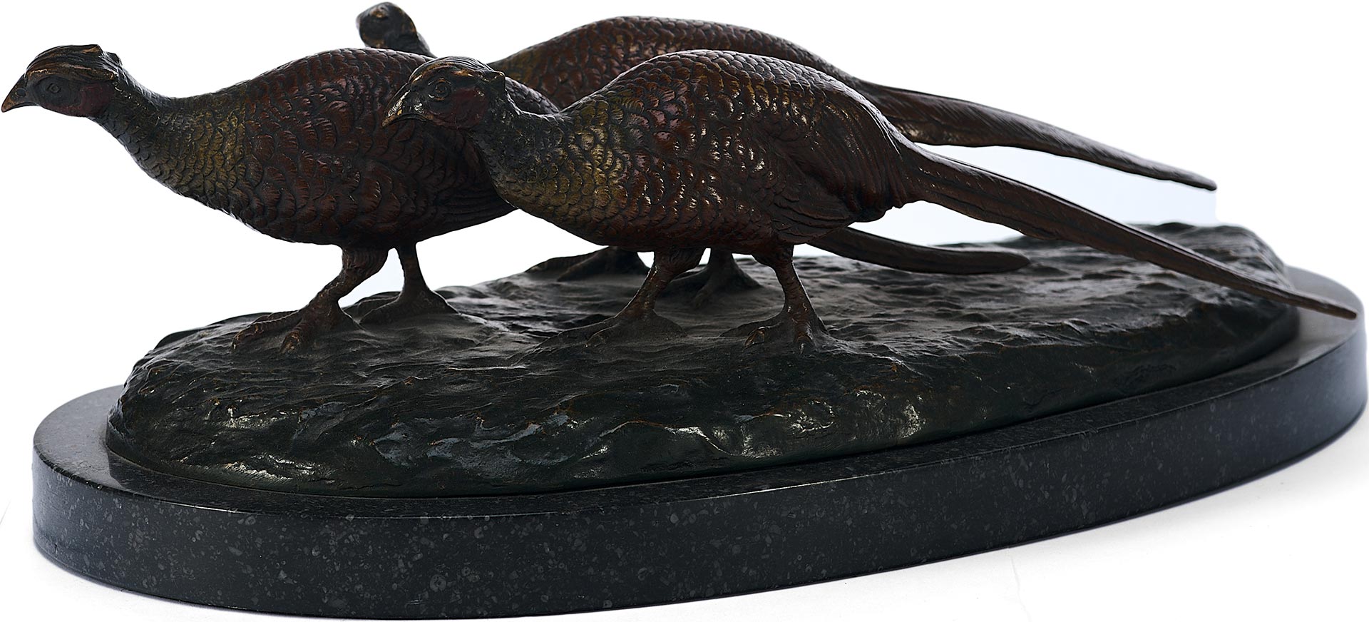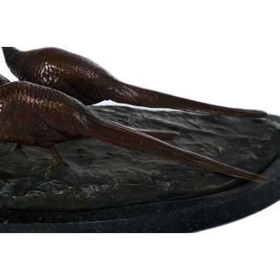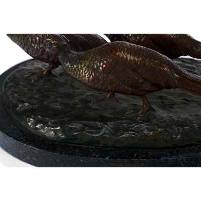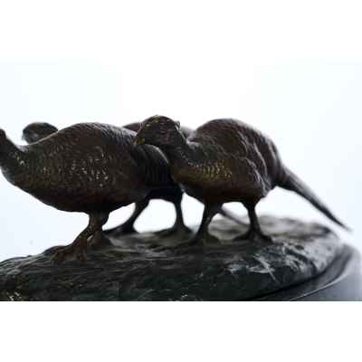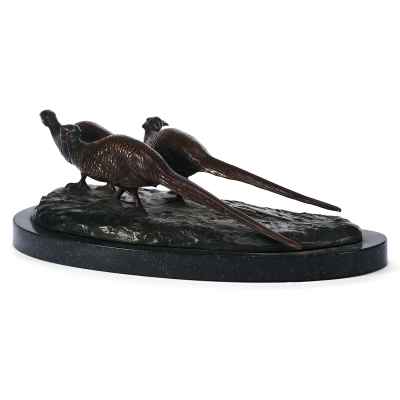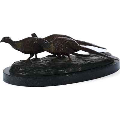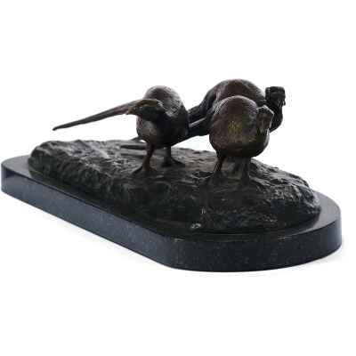 Бронзовая скульптура «Павлины», изготовленная в начале XX века, является ярким образцом кабинетной бронзовой пластики, получившей широкое распространение в Европе с середины XIX века. Изделие выполнено с использованием – бронзового литья, патинирования и мраморного основания.