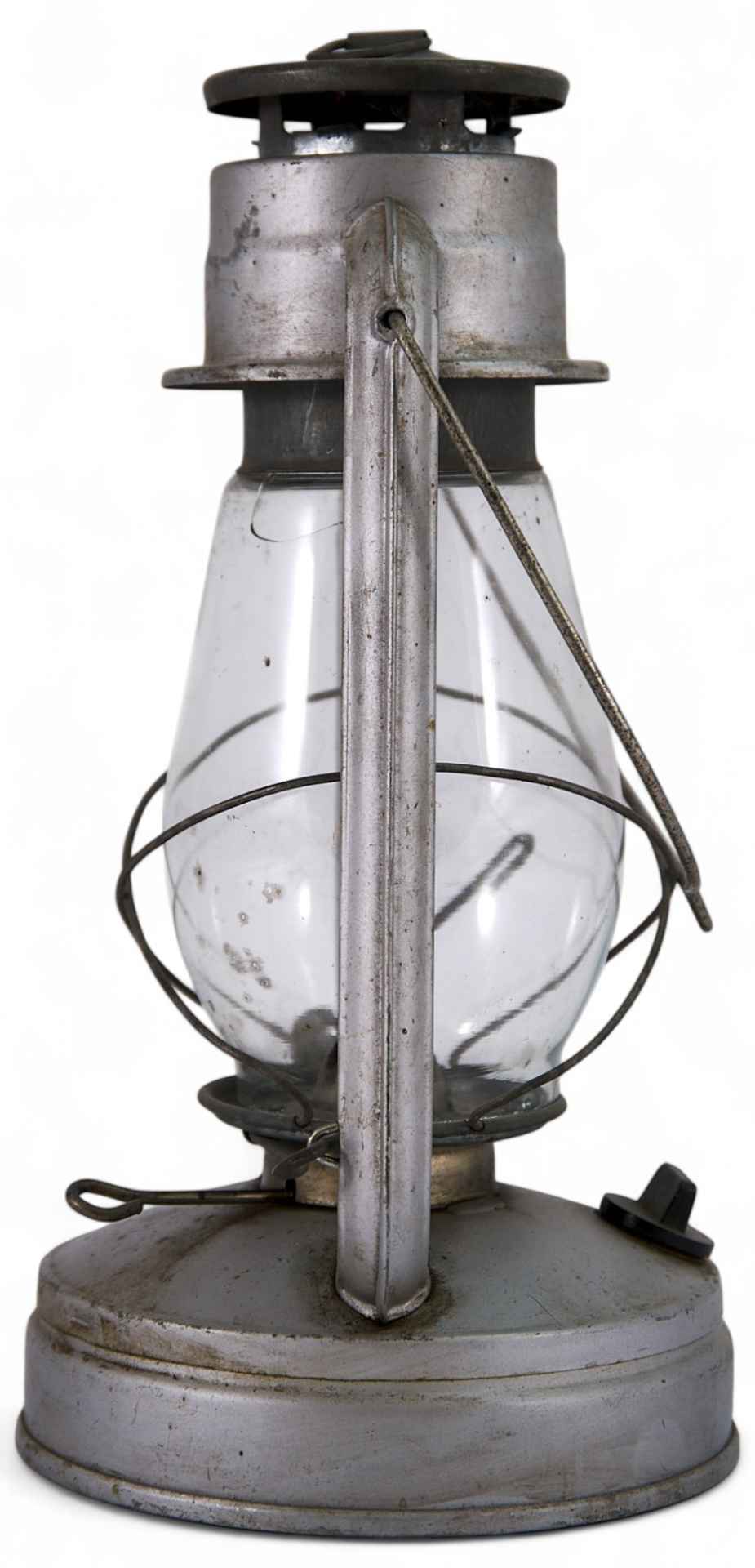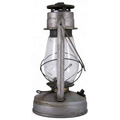 Керосиновая лампа с высоким стеклянным плафоном. Основание лампы с ручкой выполнено из цветного стекла. еросиновая лампа — светильник на основе сгорания керосина — продукта перегонки нефти. Принцип действия лампы примерно такой же, что и у масляной лампы: в ёмкость заливается керосин, опускается фитиль. Другой конец фитиля зажат поднимающим