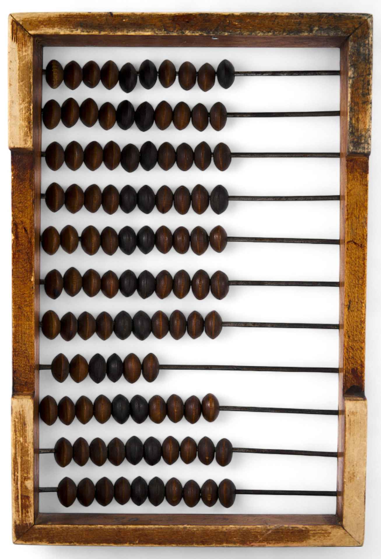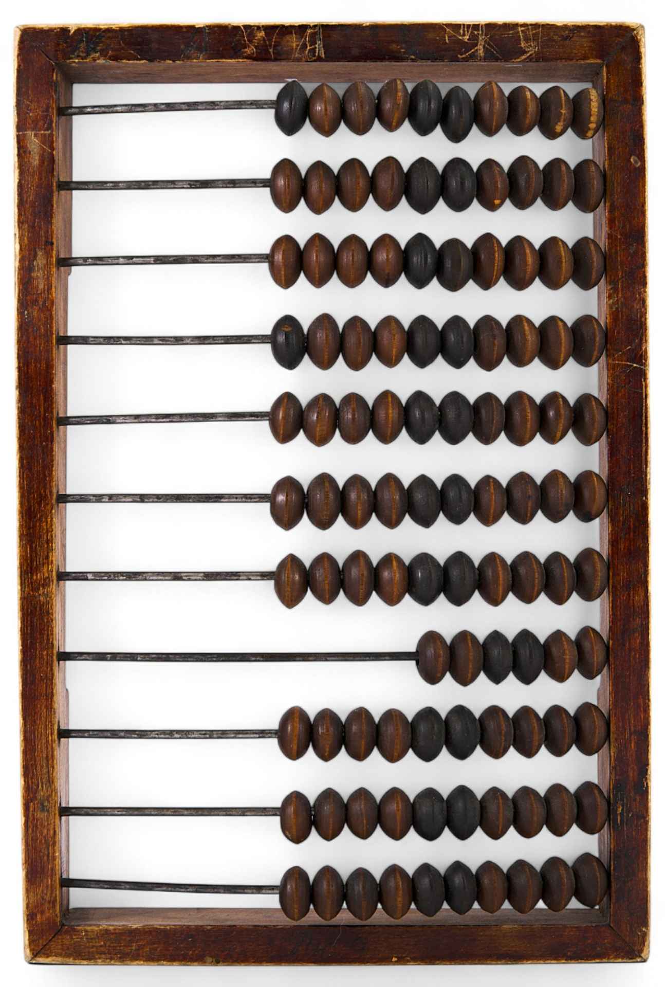 Деревянные русские счеты с 12 рядами костяшек - счет до десятков миллионов. Счёты (русские счёты) — простое механическое устройство для произведения арифметических расчётов, усовершенствованный аналог римского абака, являются одним из первых вычислительных устройств. Счёты представляют собой раму с нанизанными на спицы костяшками, обычно по 10 штук. Русские счёты появились на рубеже ХѴ-ХѴІ веков и вплоть до XX века массово использовались в торговле и бухгалтерском деле для арифметических расчётов. В конце XX века их заменили электронные