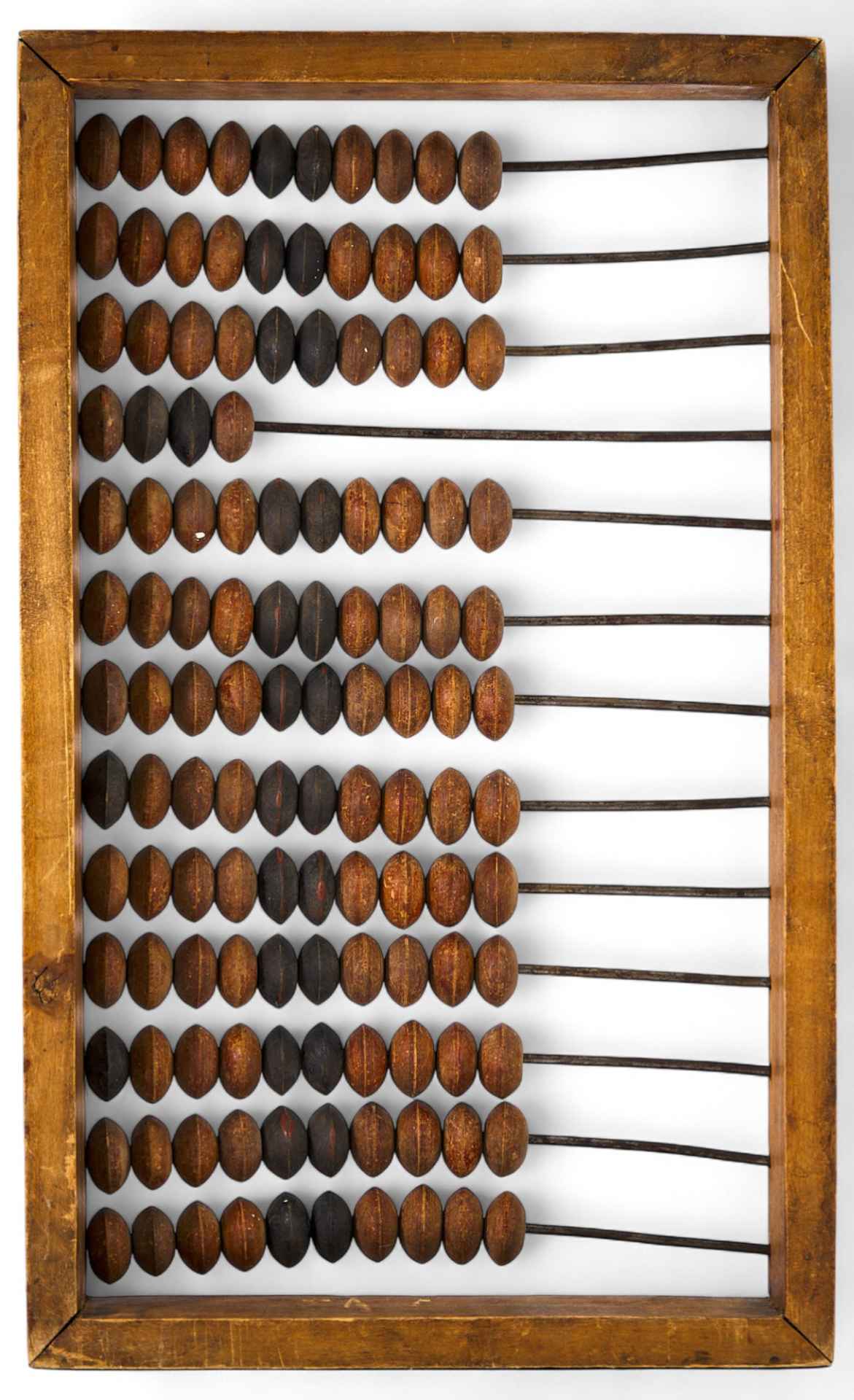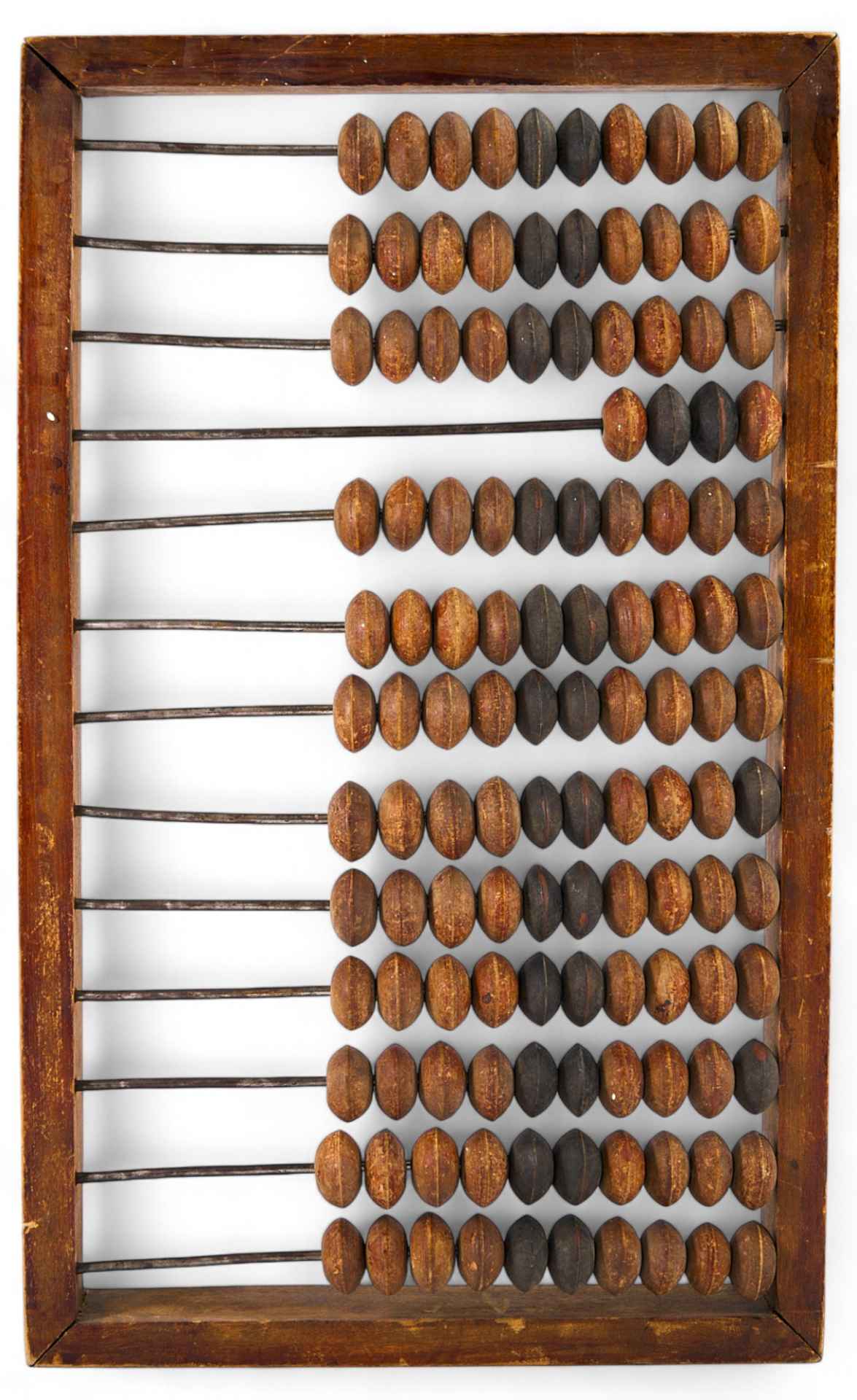 Деревянные русские счеты с 11 рядами костяшек - счет до десятков миллионов. Счёты (русские счёты) — простое механическое устройство для произведения арифметических расчётов, усовершенствованный аналог римского абака, являются одним из первых вычислительных устройств. Счёты представляют собой раму с нанизанными на спицы костяшками, обычно по 10 штук. Русские счёты появились на рубеже ХѴ-ХѴІ веков и вплоть до XX века массово использовались в торговле и бухгалтерском деле для арифметических расчётов. В конце XX века их заменили электронные