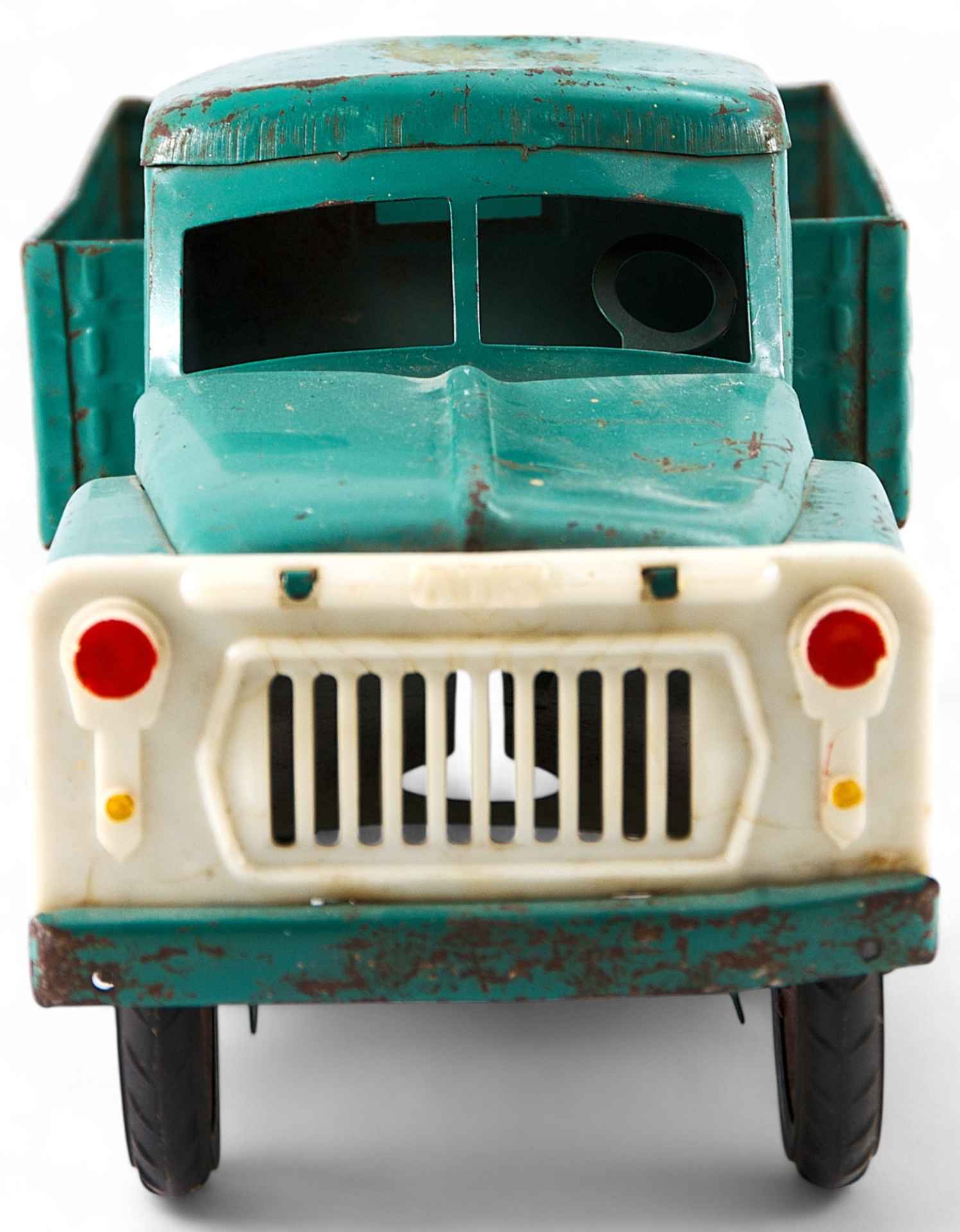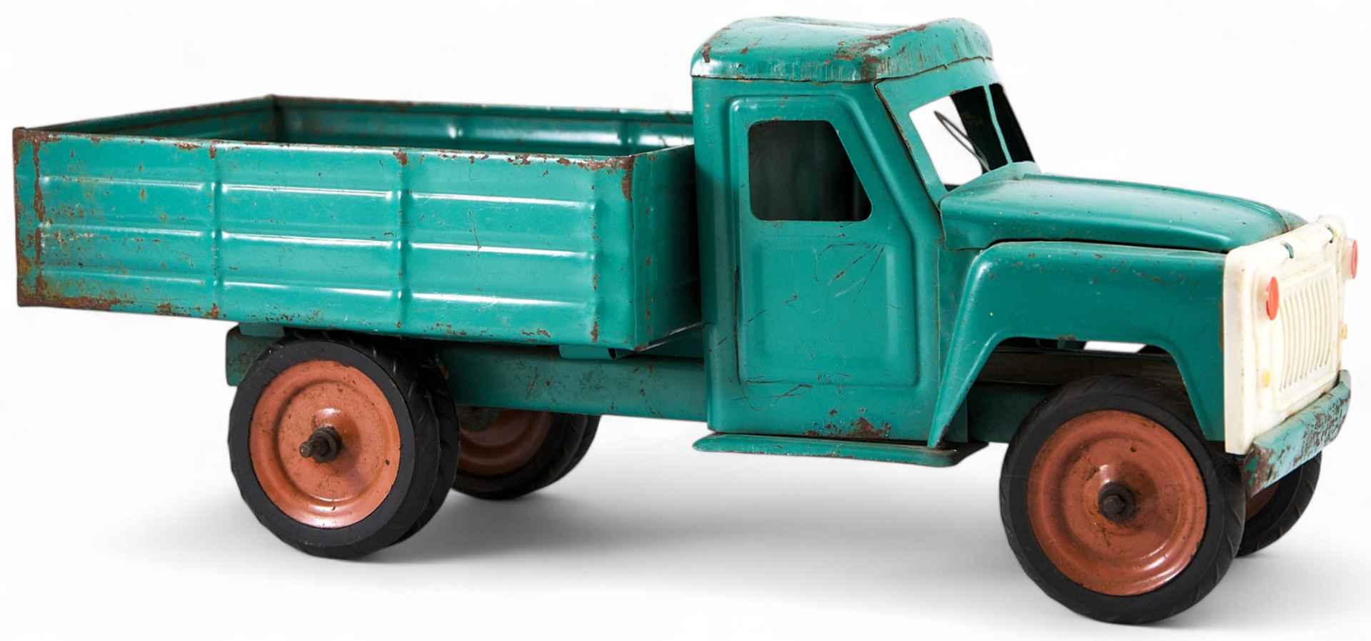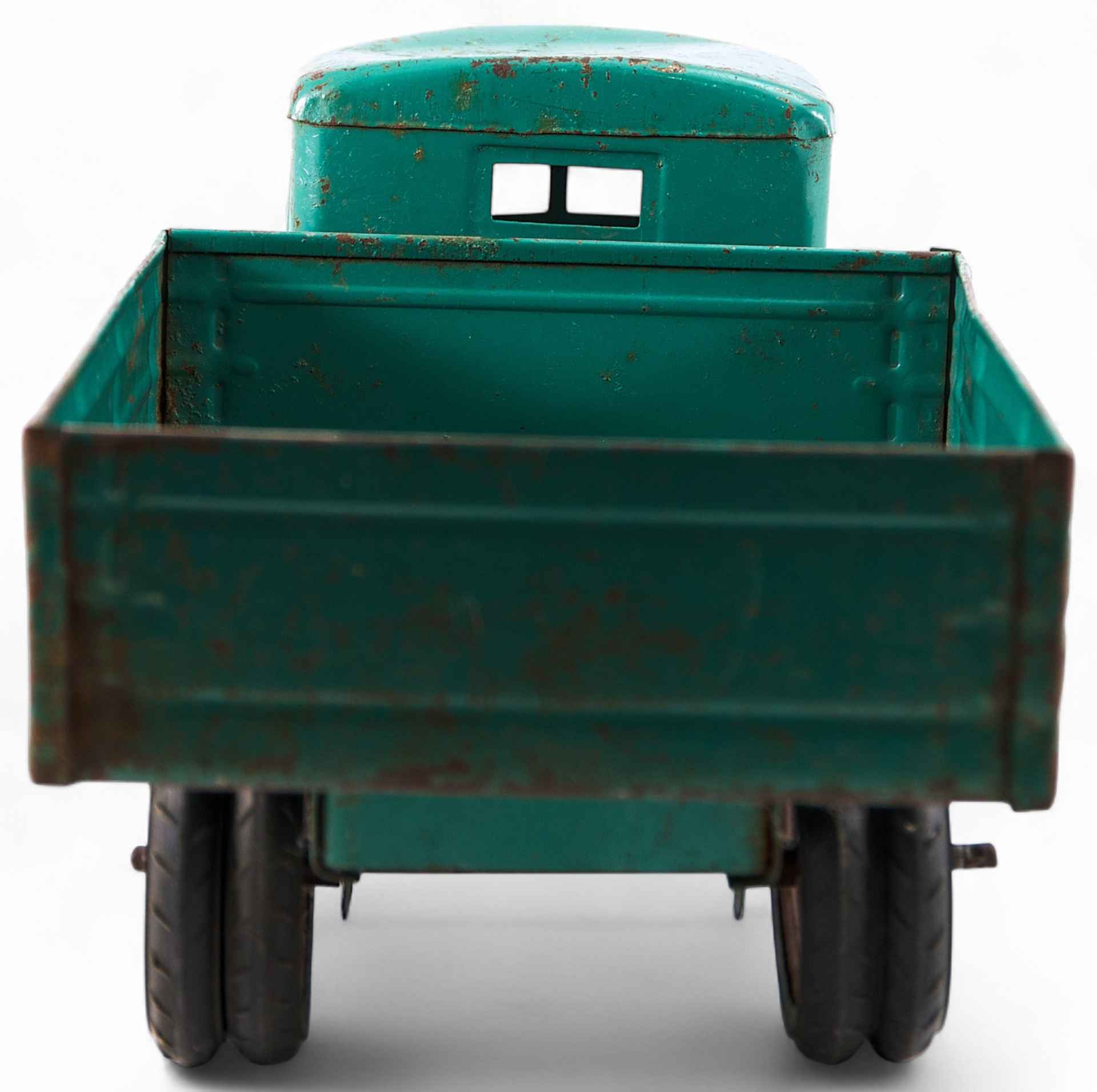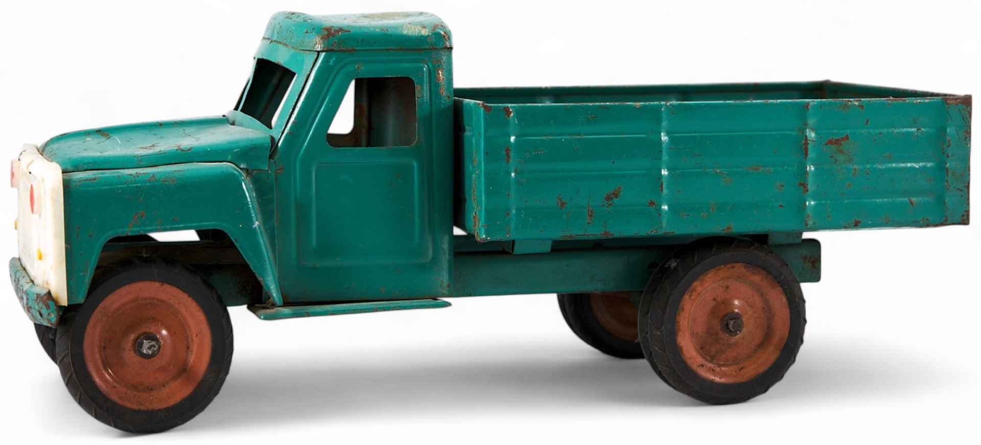 Игрушечная модель бортового грузовика «ЗИЛ-130», собранную из жестяного металла. Колеса модели выполнены из металла и пластмассы. Над решеткой мотора автомобиля аббревиатура: «ЛТЗ» (Липецкий тракторный завод). «... На Московском автомобильном заводе имени Лихачева создан экспериментальный образец автомобиля грузоподъемностью 4 тонны, который предполагается, после ряда дорожных исттыт.зттий и конструктивной доработки, поставить на производство в течение 6-й пятилетки. Автомобиль, получивший пока условно индекс ЗИЛ-130, имеет широкую трехместную кабин}' с панорамическим ветровым стеклом, значительно улучшающим обзорность; крылья, капот и облицовка радиатора нового автомобиля отличаются оригинальными и приятными для глаза формами, обеспечивающими лучшую обтекаемость...»