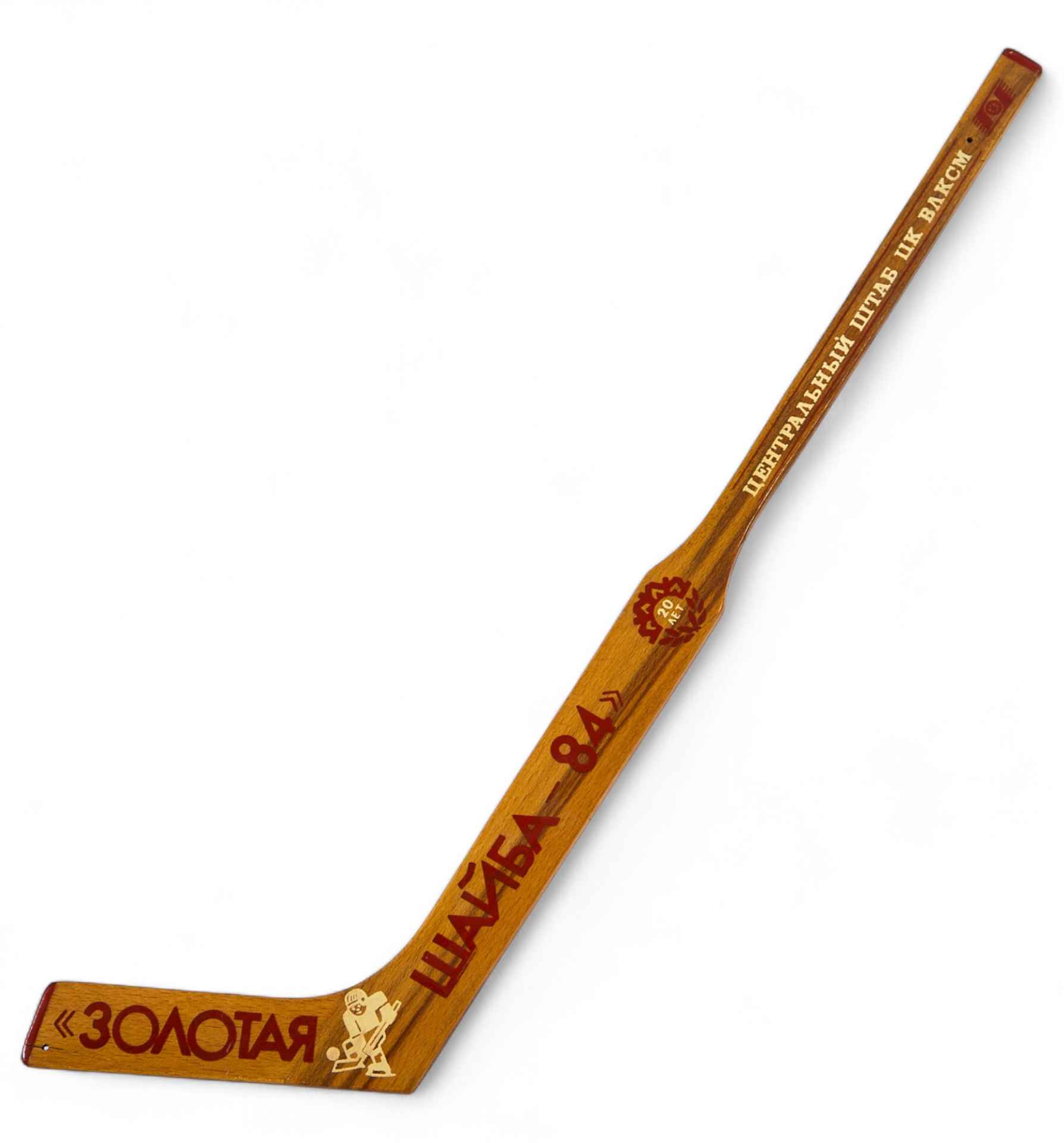 Хоккейная клюшка. подписанная хоккеистами команды “Химик”, победителю первенства города Воскресенска по хоккею на приз клуба “Золотая шайба”. На клюшке имеется надпись “Химик” 1981-1982 и 29 подписей. Турнир детских дворовых команд “Золотая шайба” был доброй традицией в СССР. Главной особенностью этого первенства являлось то , что участниками игр