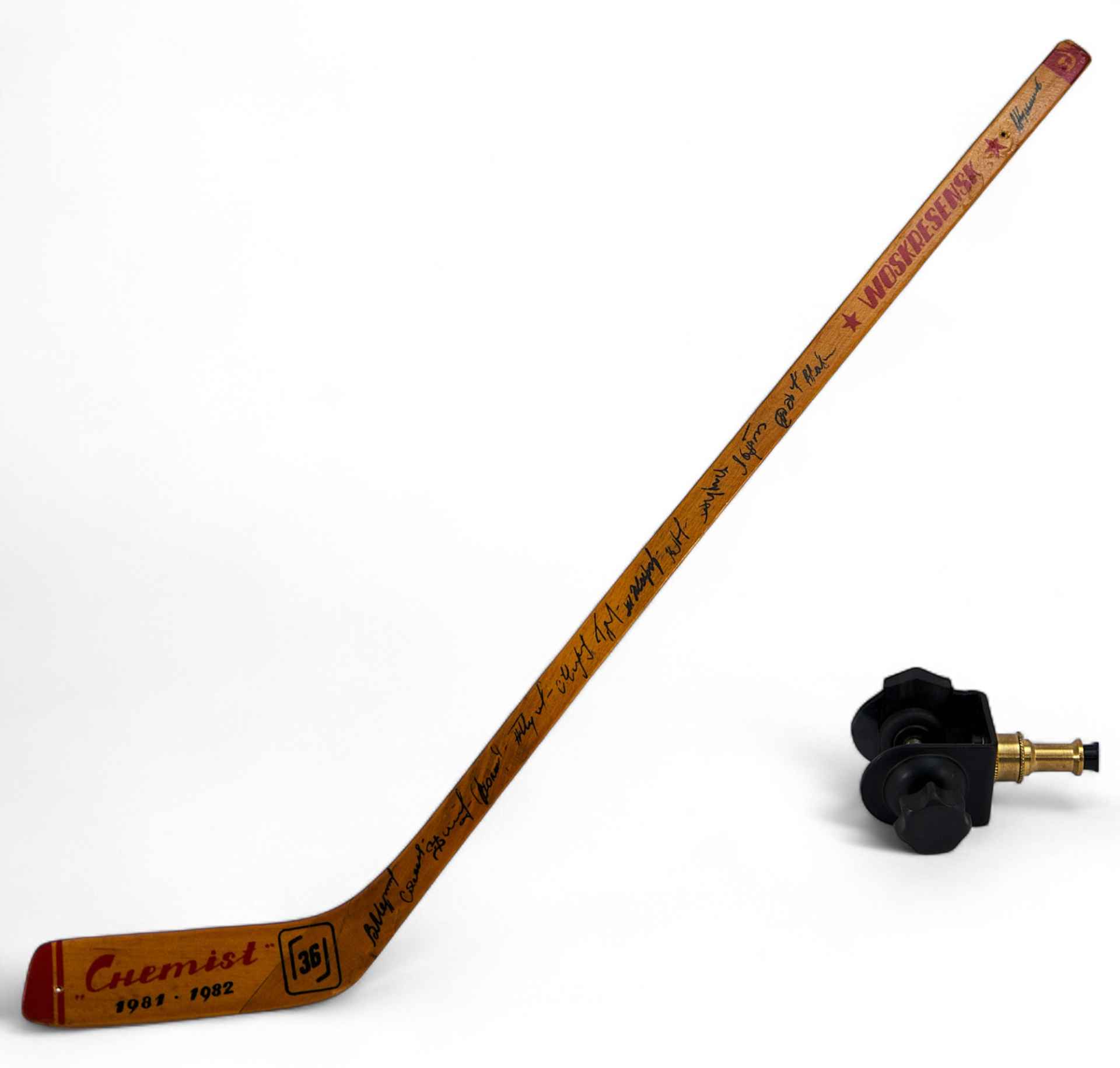 Наградная хоккейная клюшка "Золотая шайба", подписанная хоккеистами "Химика" СССР 1982