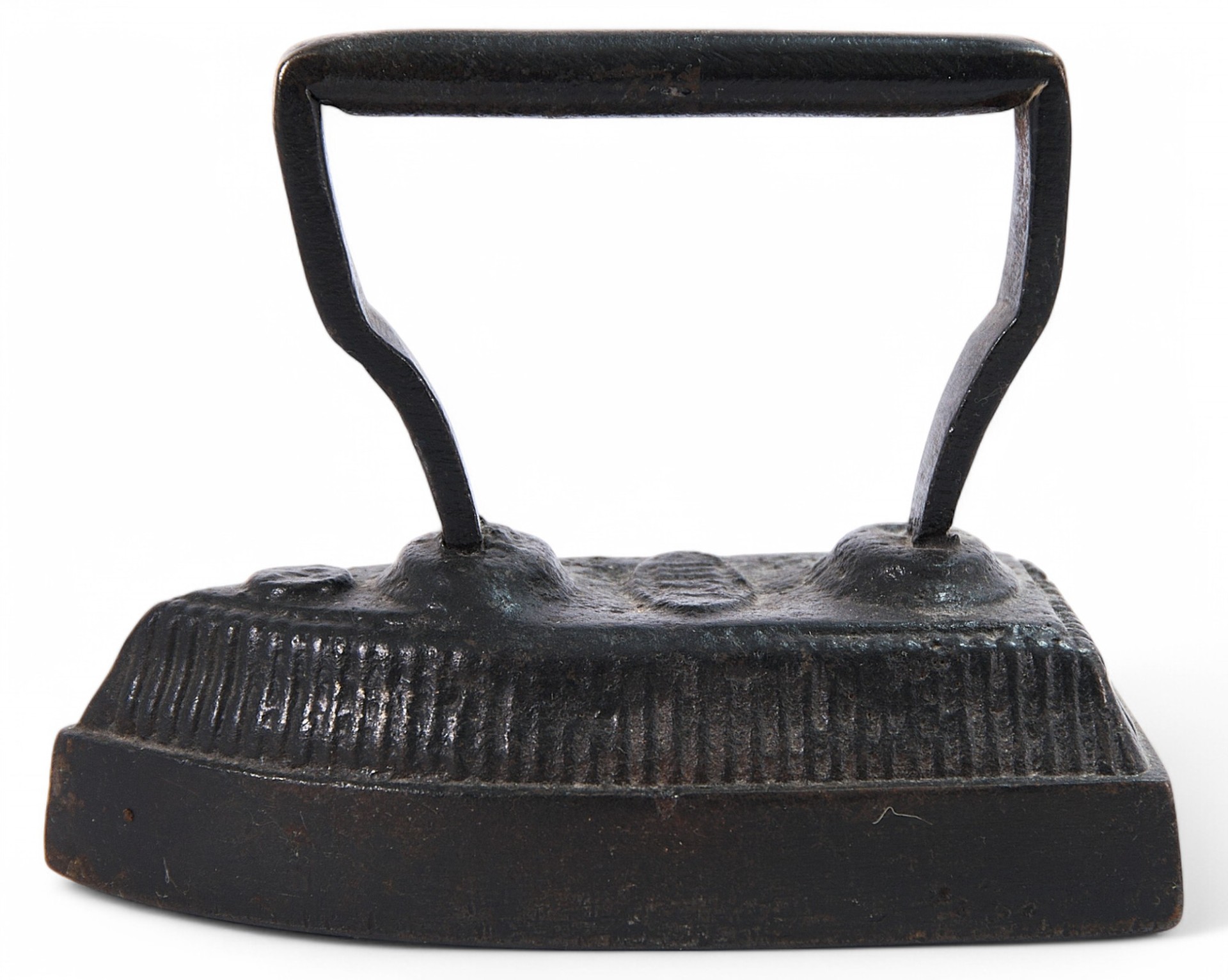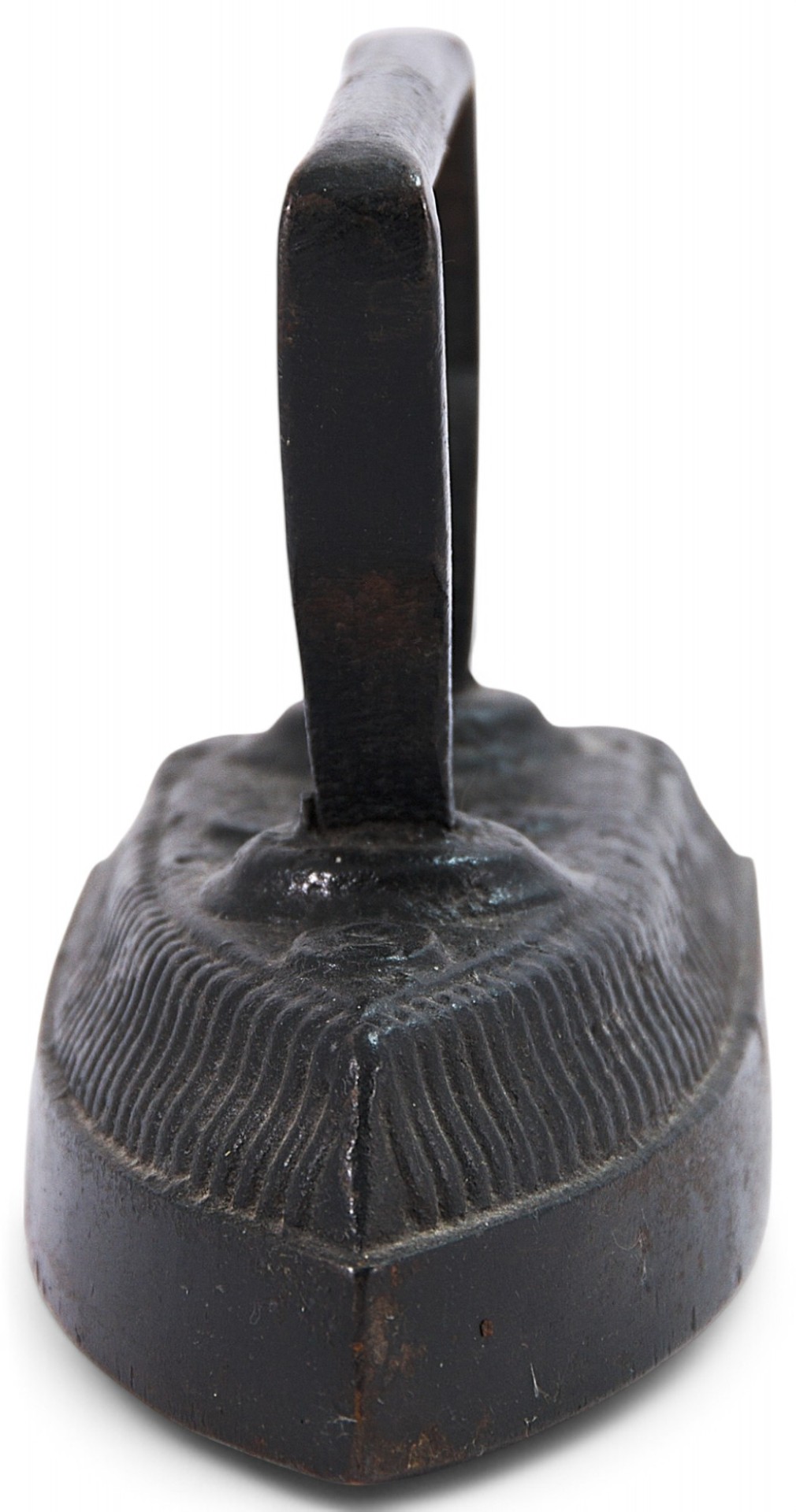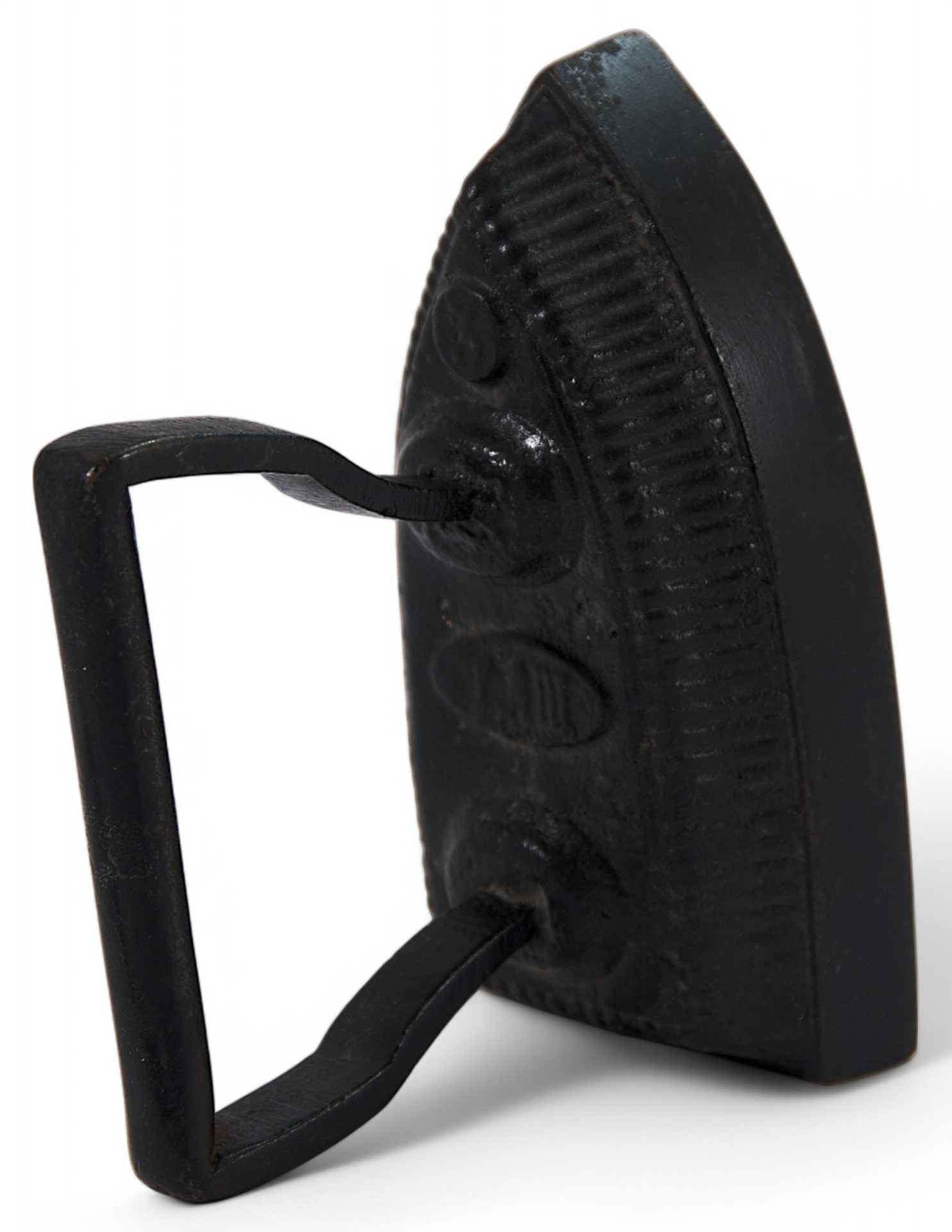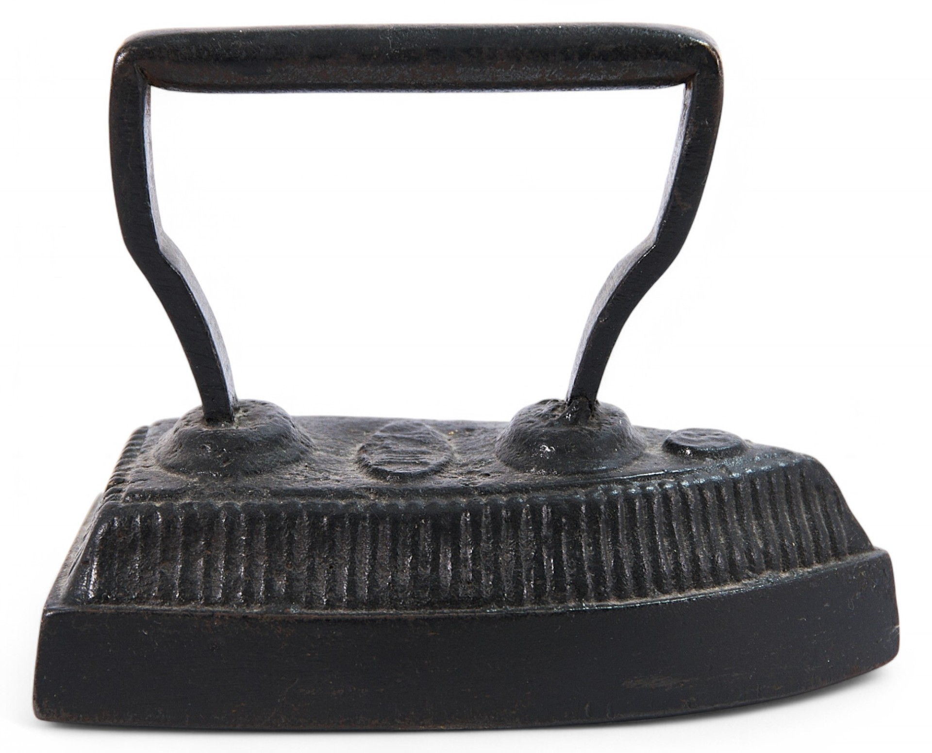 Цельнолитой чугунный утюг состоит из массивной подошвы и ручки.На носике утюга клеймо — «3». Ещё одно клеймо под ручкой (не читаемо). С XVIII—XIX веков утюги представляли собой металлические сооружения формы, близкой к современной. Утюги нагревались на газе или в печи. Наиболее распространёнными были нагревательные утюг- они ставились в печь и разогревались. Чугунный утюг разогревался очень долго — не менее получаса, горячим его невозможно было- брать без прихватки.