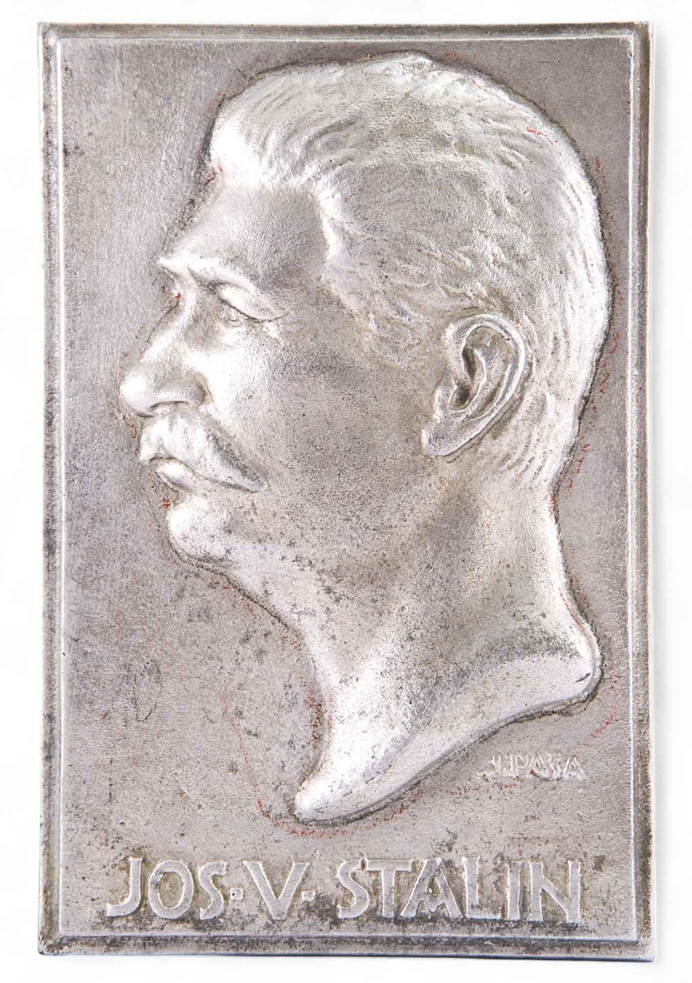 Портрет И.В. Сталина, выполненный как плакетка -барельеф. На плакетке подписи: «Jos.V.Stalin» и «J.Paša»Josef Pasa (1884 Букованы, Чехия1965 Прага, Чехия) - чешский скульптор, работавший в ателье Я. В. Мыслбека, Л. Салоуна (The ateliers ofJ.V. Myslbek, L. Saloun) и др. Известен своими работами в стилистике ар-деко Йозеф Вацлав Мысльбек (чеш. Josef Václav Myslbek', 20 июня 1848, Прага — 2 июня 1922, Прага) — один из крупнейших чешских скульпторов XIX столетия Иосиф Виссарионович Джугашвили (Сталин) (1879-1953) - революционер-большевик, генеральный секретарь ЦК КПСС (с 1922),