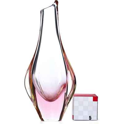 Ваза, представленная на изображении, относится к стеклянному искусству Богемии 1960-х годов. Этот регион, ныне являющийся частью Чехии, славится своим многовековым мастерством в производстве стекла. В данном предмете воплощены характерные черты богемского стеклоделия – четкость формы, изысканная работа с цветом и внимание к деталям.