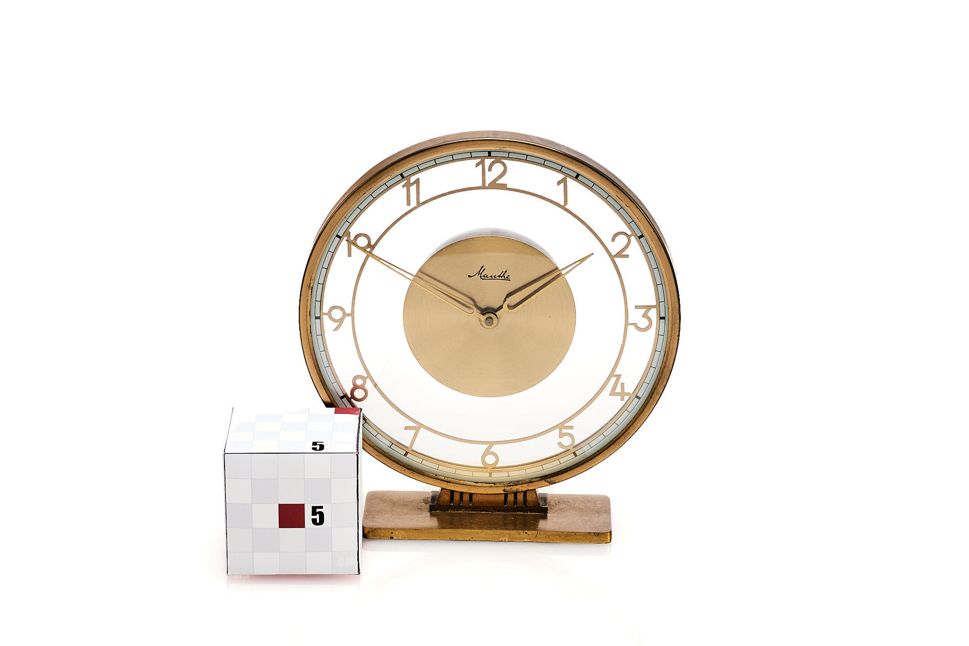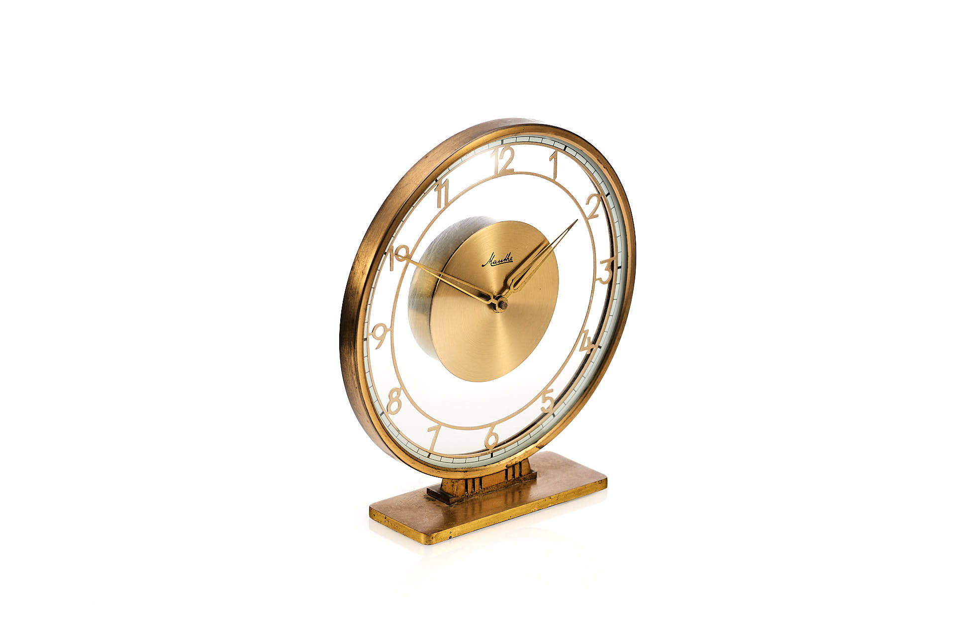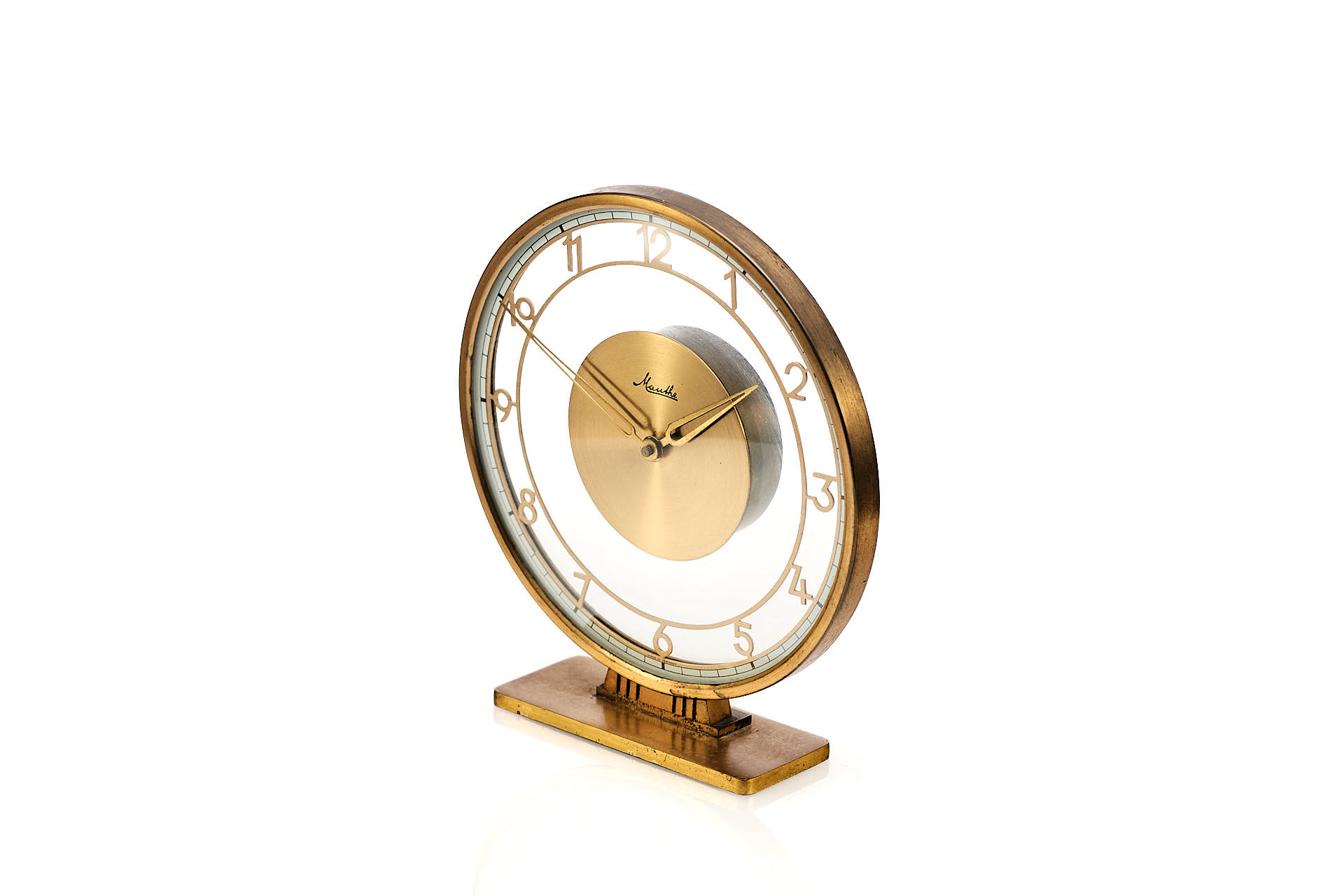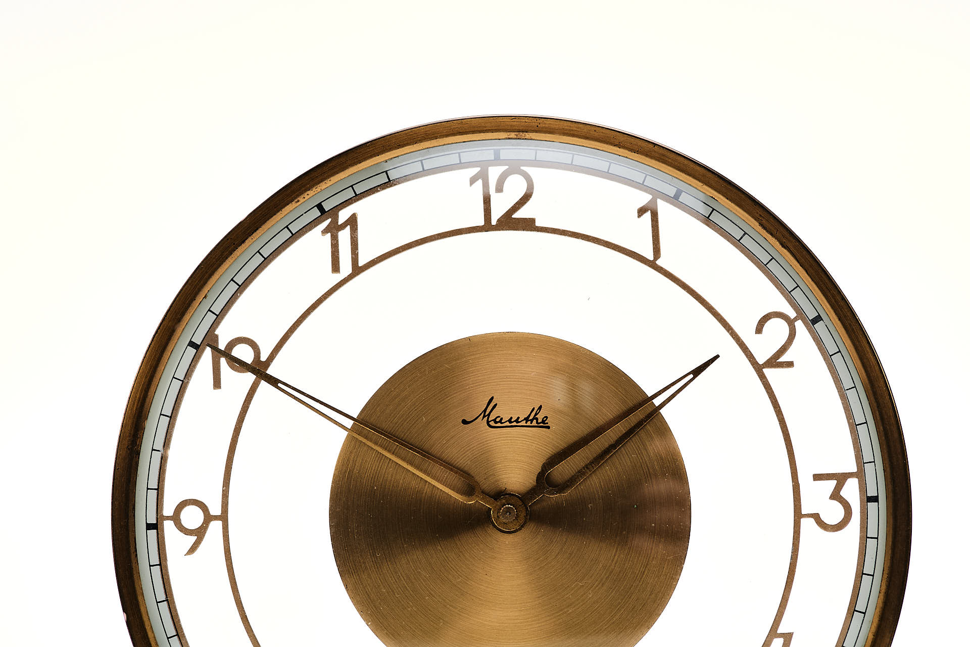 можно соотнести с проду кцией 1950-1960-х гг. На циферблате вверху- название фирмы-производителя "Mauthe.Часы настольниеые.