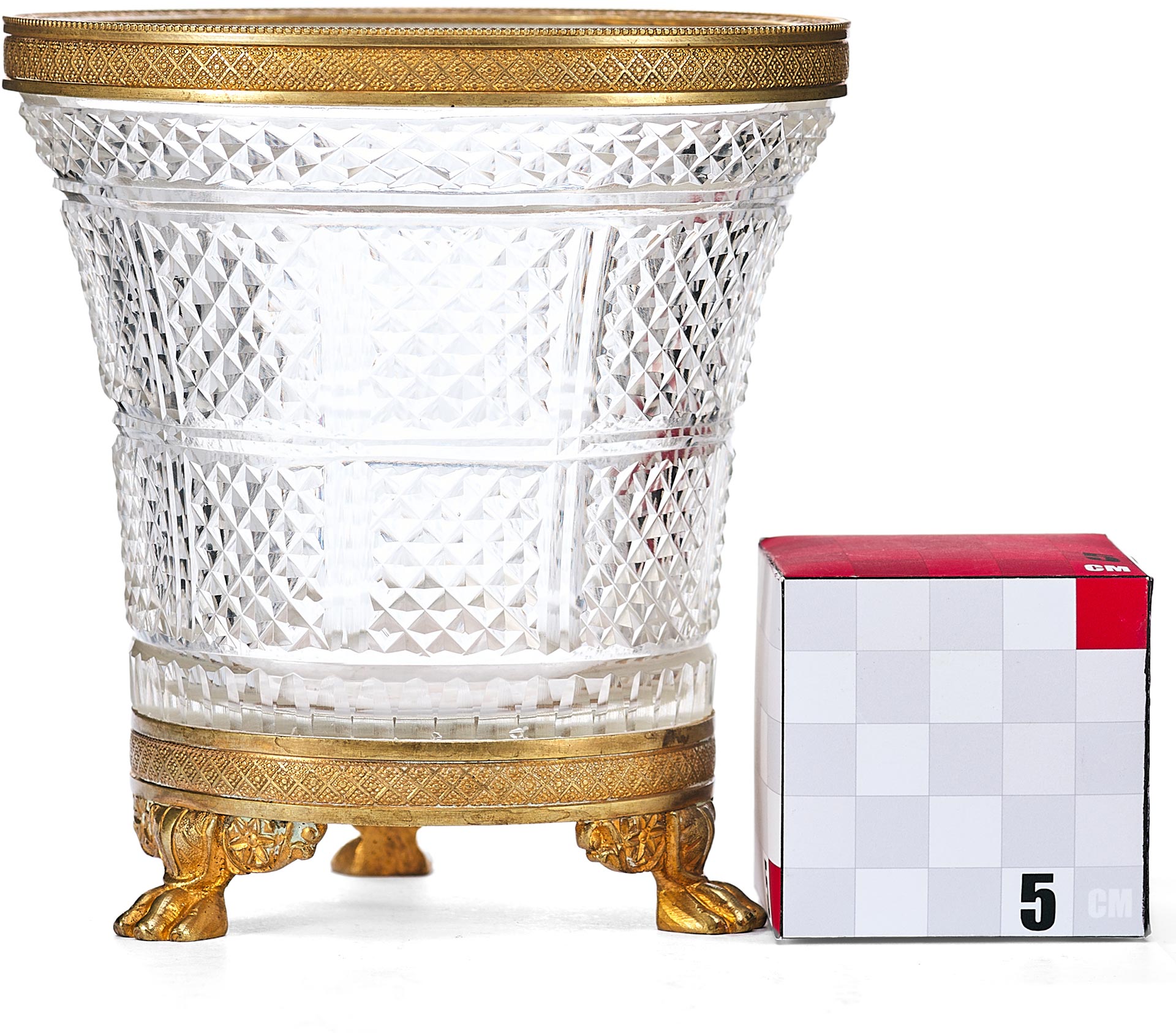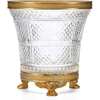 Ампир, зародившийся во Франции в эпоху Наполеона Бонапарта, отличался стремлением к величию, использованию античных мотивов и богатству декоративных элементов. В данной вазе элементы бронзового литья и чеканки демонстрируют внимание мастеров к деталям: три ножки в форме звериных лап отсылают к мифологическим и символическим образам, популярным в художественном оформлении эпохи.
