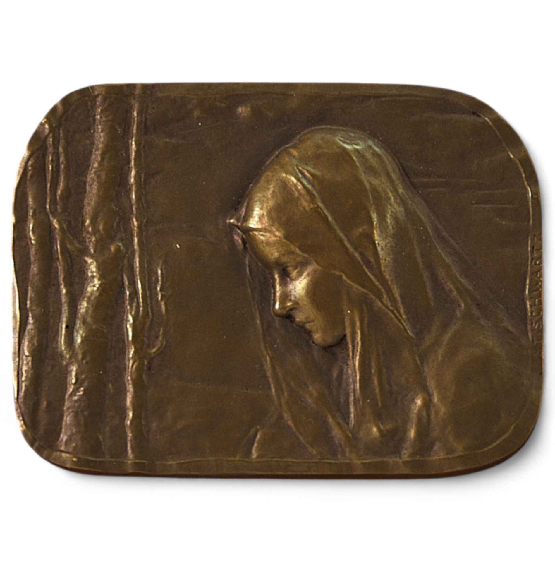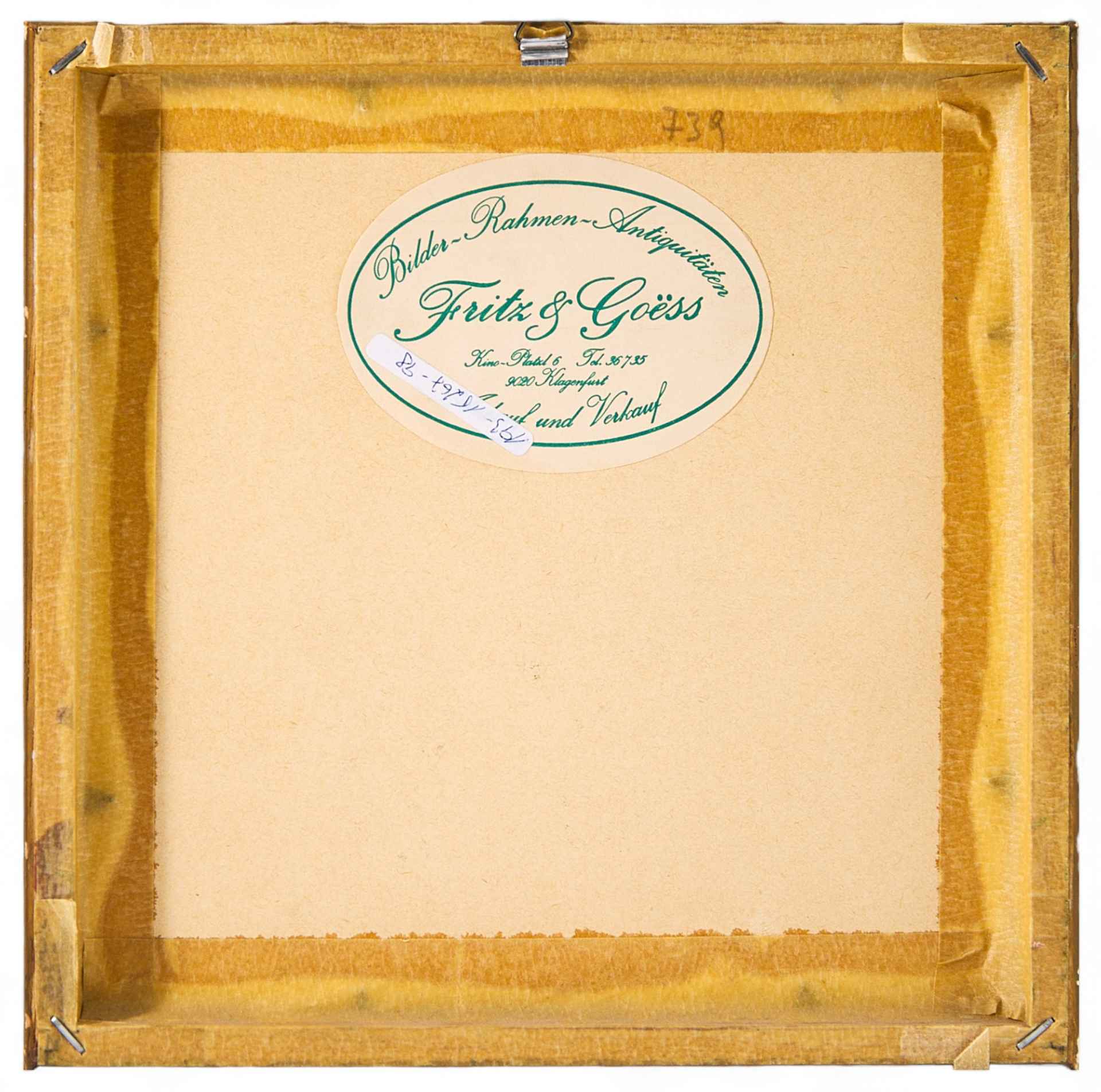 На торце барельефного изображения вырезано клеймо скульптора: «Т SCHWARTZ». На обороте этикетка антикварного магазина Fritz & Goéss Bilderrahmen-Antiquitäten.Венскую бронзу — скульптурную миниатюру, анималистику, небольшого
