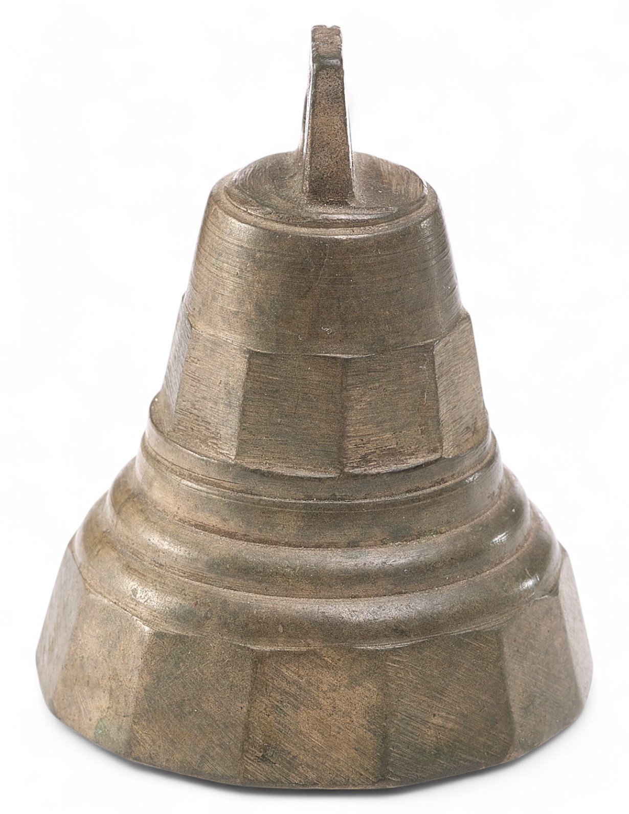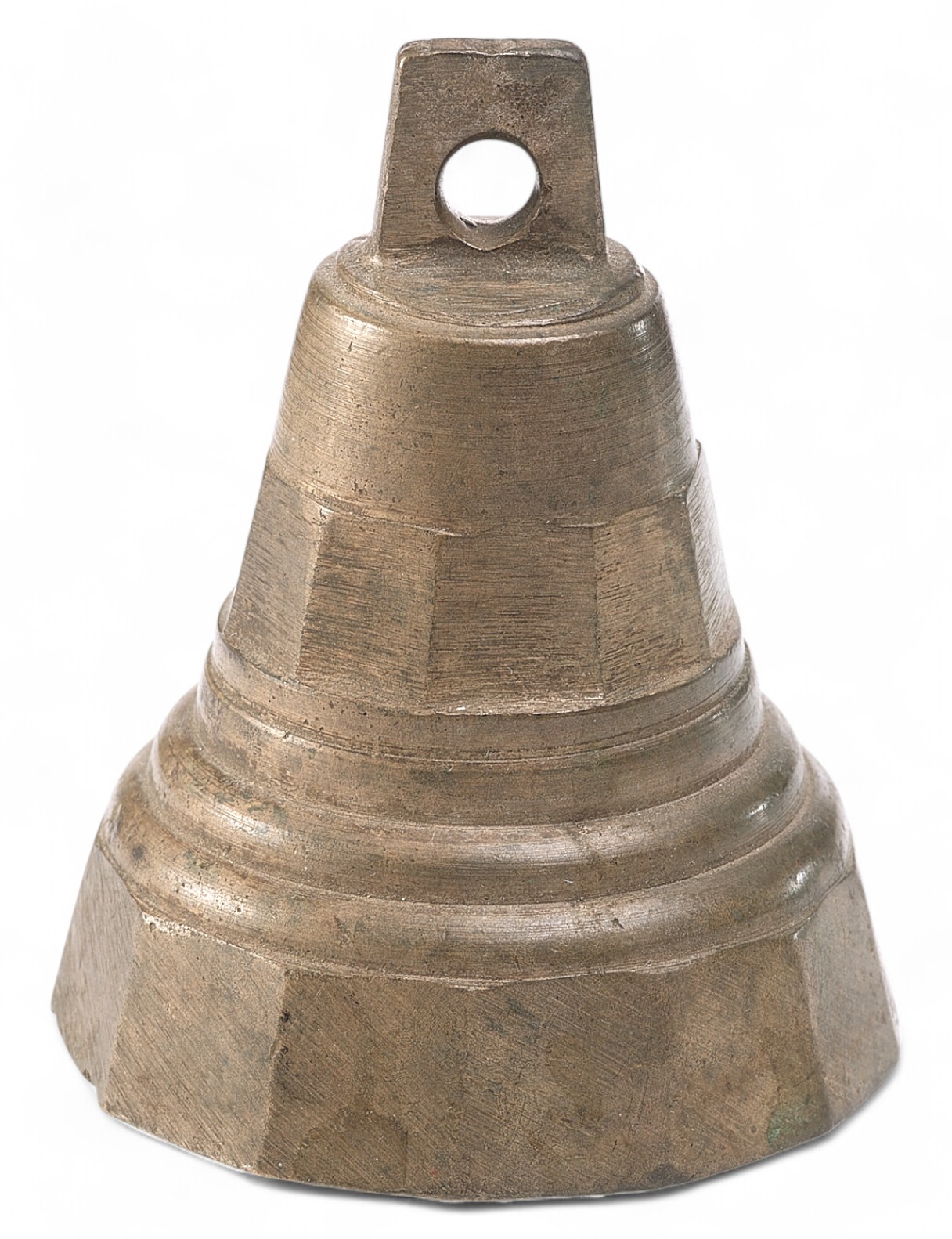 Строгая геометрия формы подчёркивает функциональный характер предмета, что типично для гладких гранёных колокольчиков. Сегодня такие изделия представляют интерес для коллекционеров, особенно при наличии оригинальной формы и хорошей сохранности.