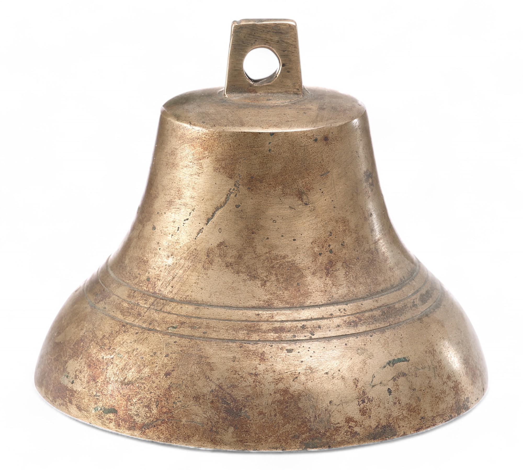 Колокольчик, называемый поддужный или ямщицкий. Тулово колокольчика украшено профилированными поясками. Клейма отсутствуют. По форме тяготеет к колокольчикам .выпускавшимся в г.Слободском Вятской губернии.