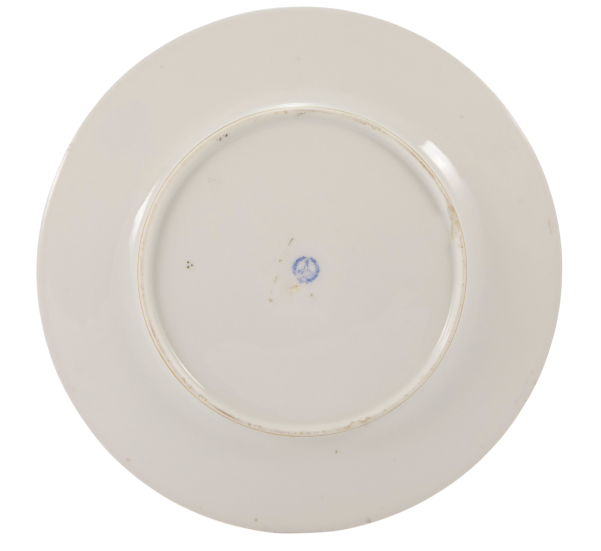 На донышке тарелки клеймо Императорского фарфорового завода —вензель императора Александра 3, ставившееся в период 1881-1883 гг. Согласно легенде тарелка находилась в доме инженера H.H. Ипатьева во время пребывания в Екатеринбурге императорской семьи Романовых. Императорский фарфоровый завод (ИФЗ).