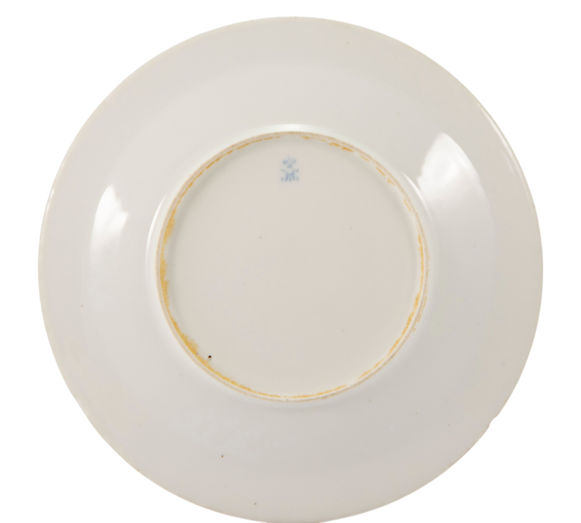 На донышке гарелки синее клеймо Императорского фарфорового завода - HI под императорской короной, без даты. Состояние использованных материалов не противоречит указанной датировке.