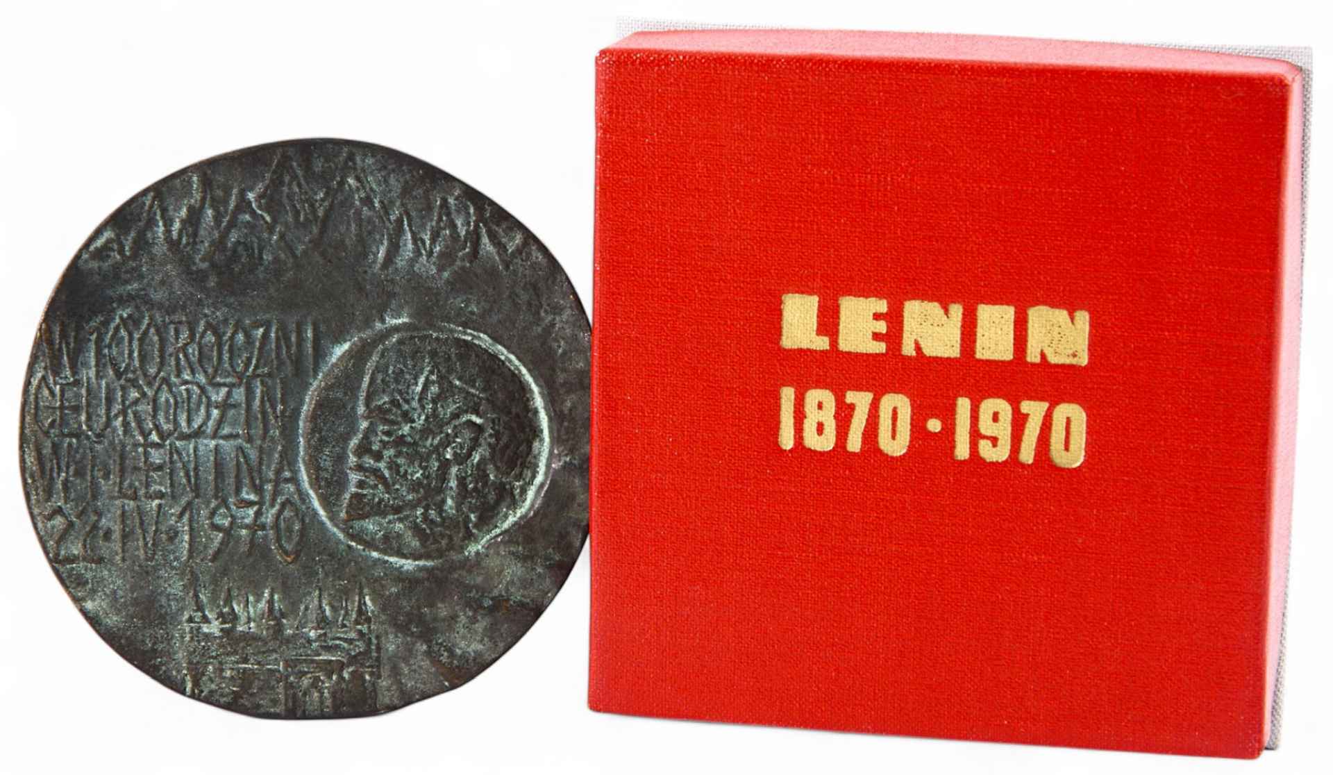 На реверсе профильное изображение В.И. Ленина и надпись: «W 100 Roczni Ceurodzin WTLenina/ 22-iw 1970». Автор медали польский скульптор, профессор Краковской академии искусств, Bronislaw Chromy (1925-2017).