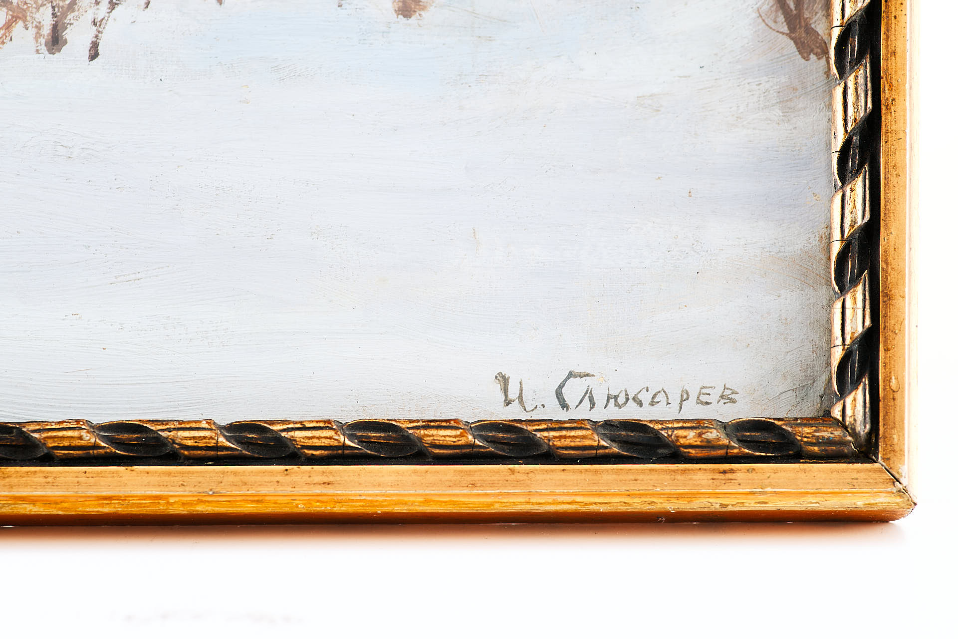Подпись сомнений в достоверности не вызывает и по начертанию полностью совпадает с автографами художника. Анализ соотношения подписи с красочным слоем позволяет считать ее подлинной. Приемы изображения, рисунок, композиция, палитра полностью соотносится с творчеством художника И. Слюсарева. Состояние материалов и живописная манера соответствует датировке - 1930-е годы.