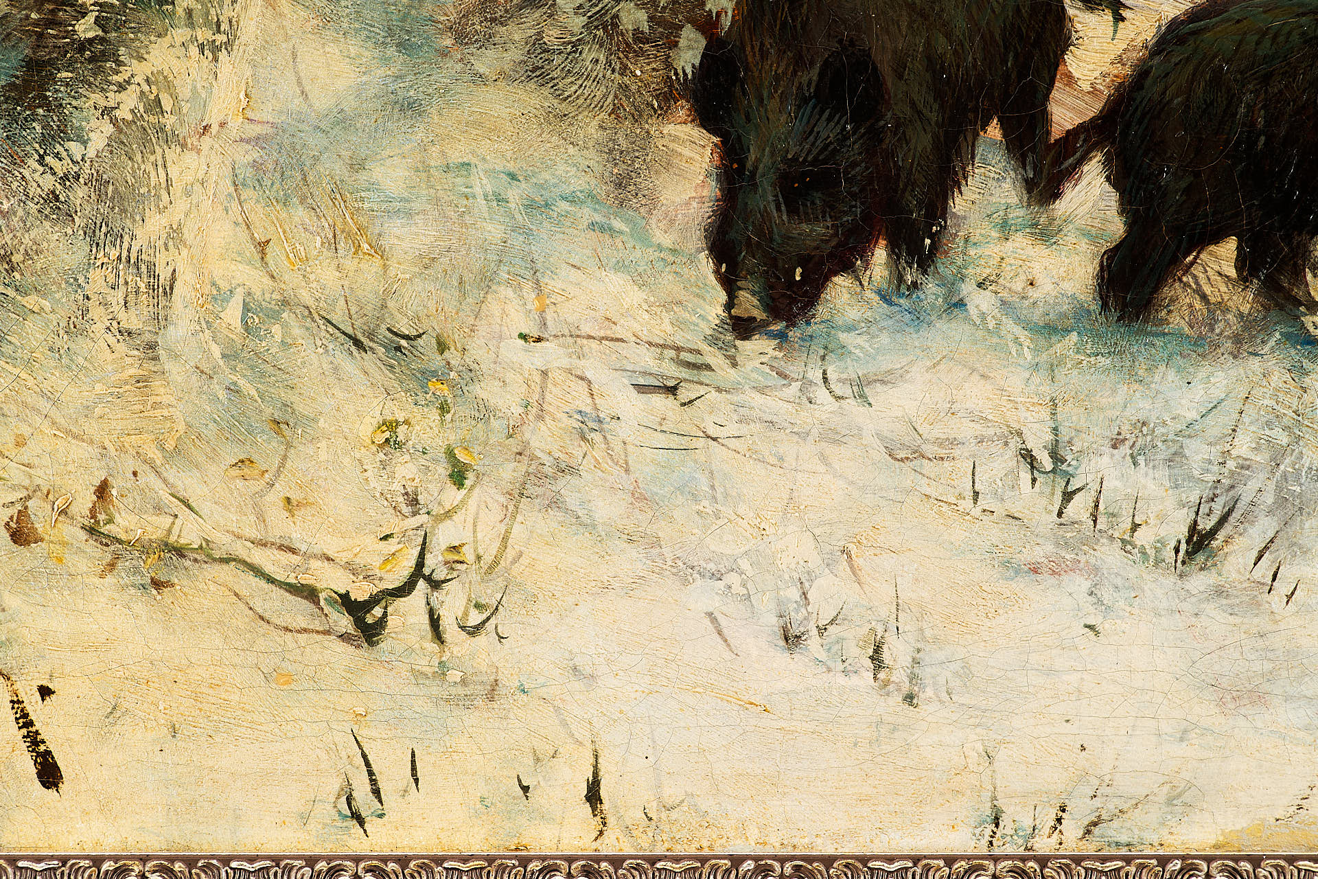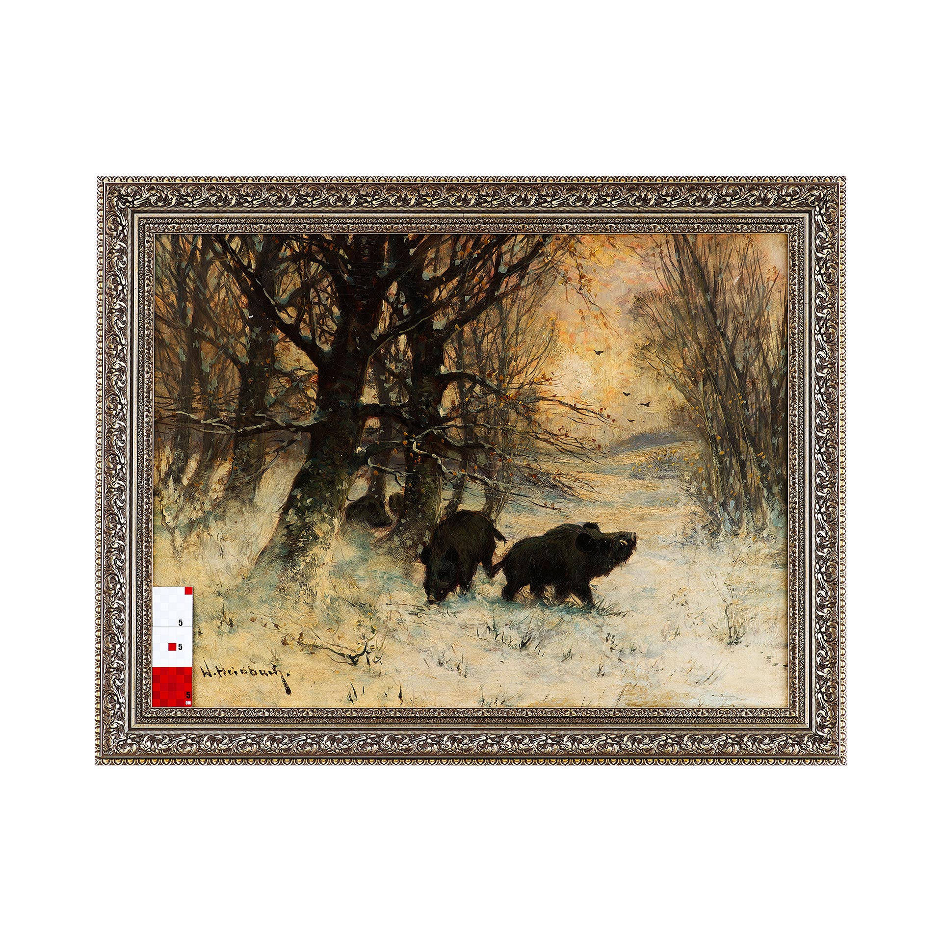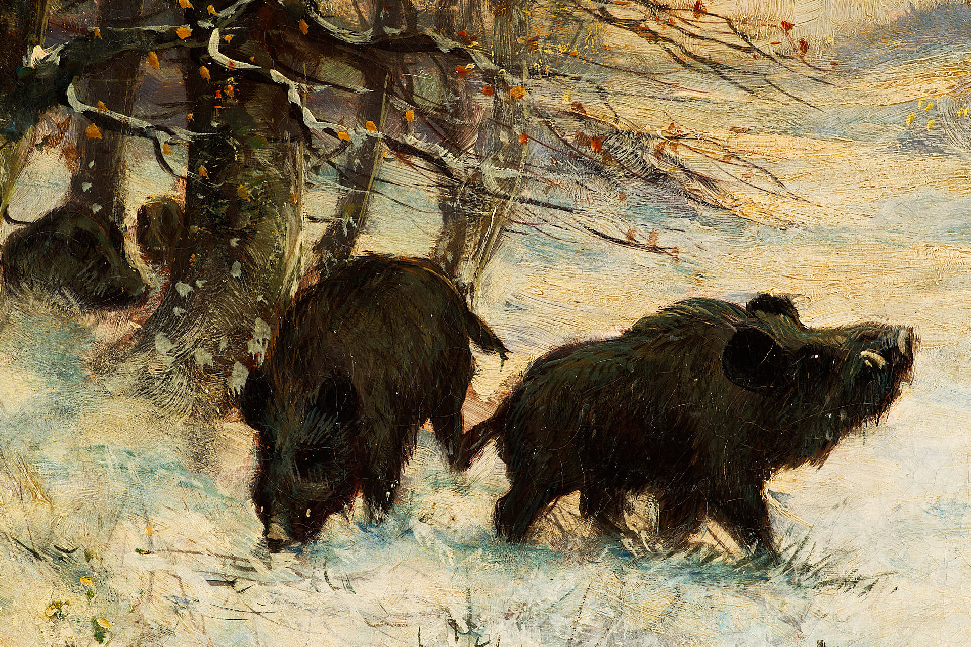 W. Heidbach Кабаны в зимнем лесу х/м Европа 1900-е гг. 60x80 см. Европа 1900-е гг