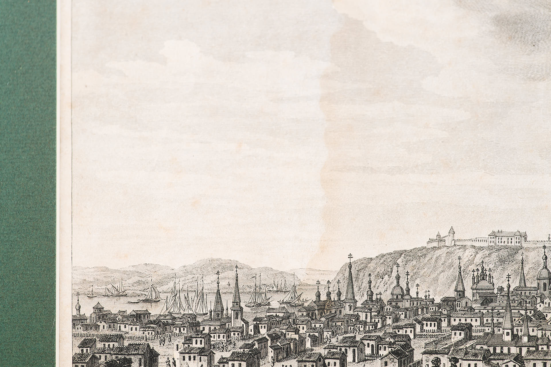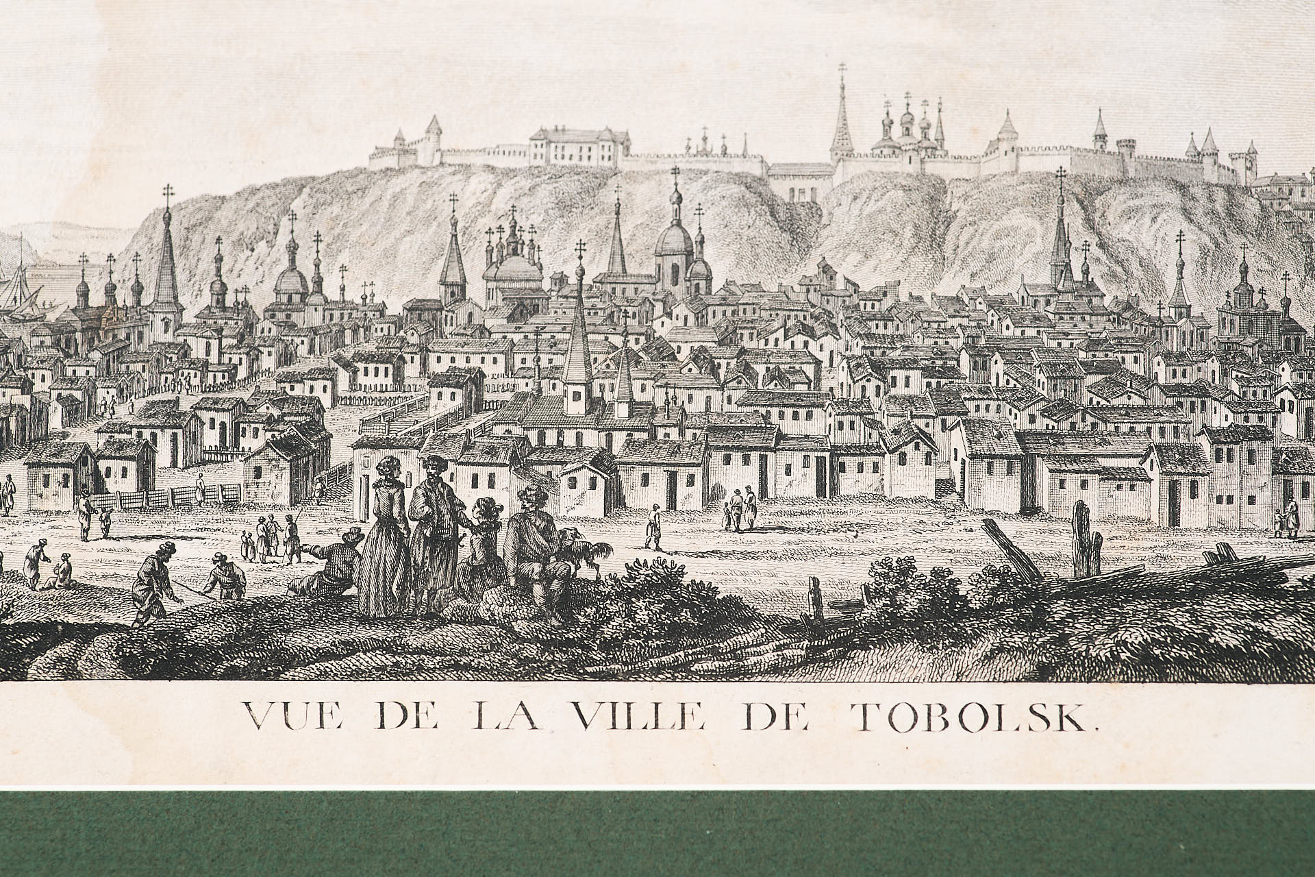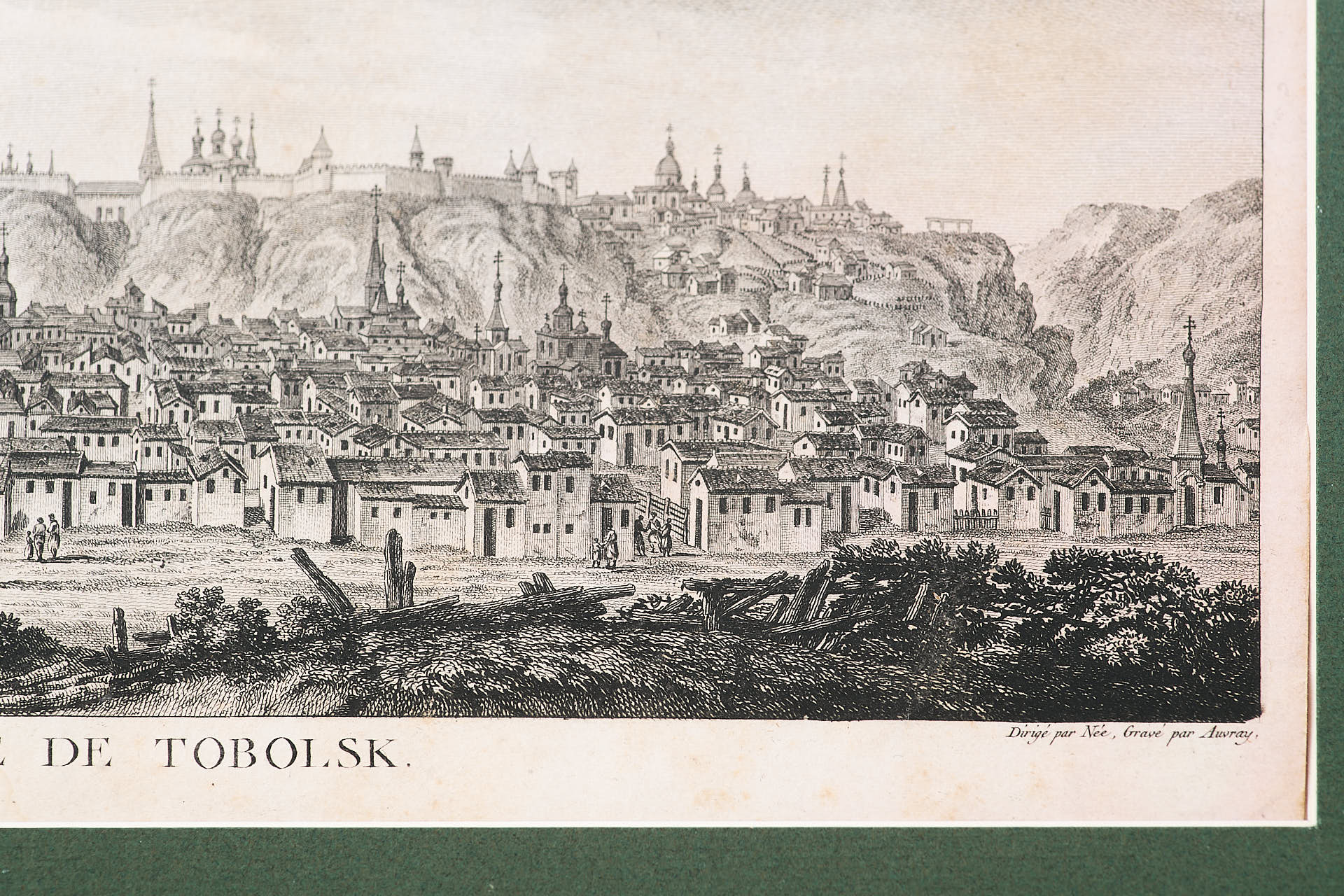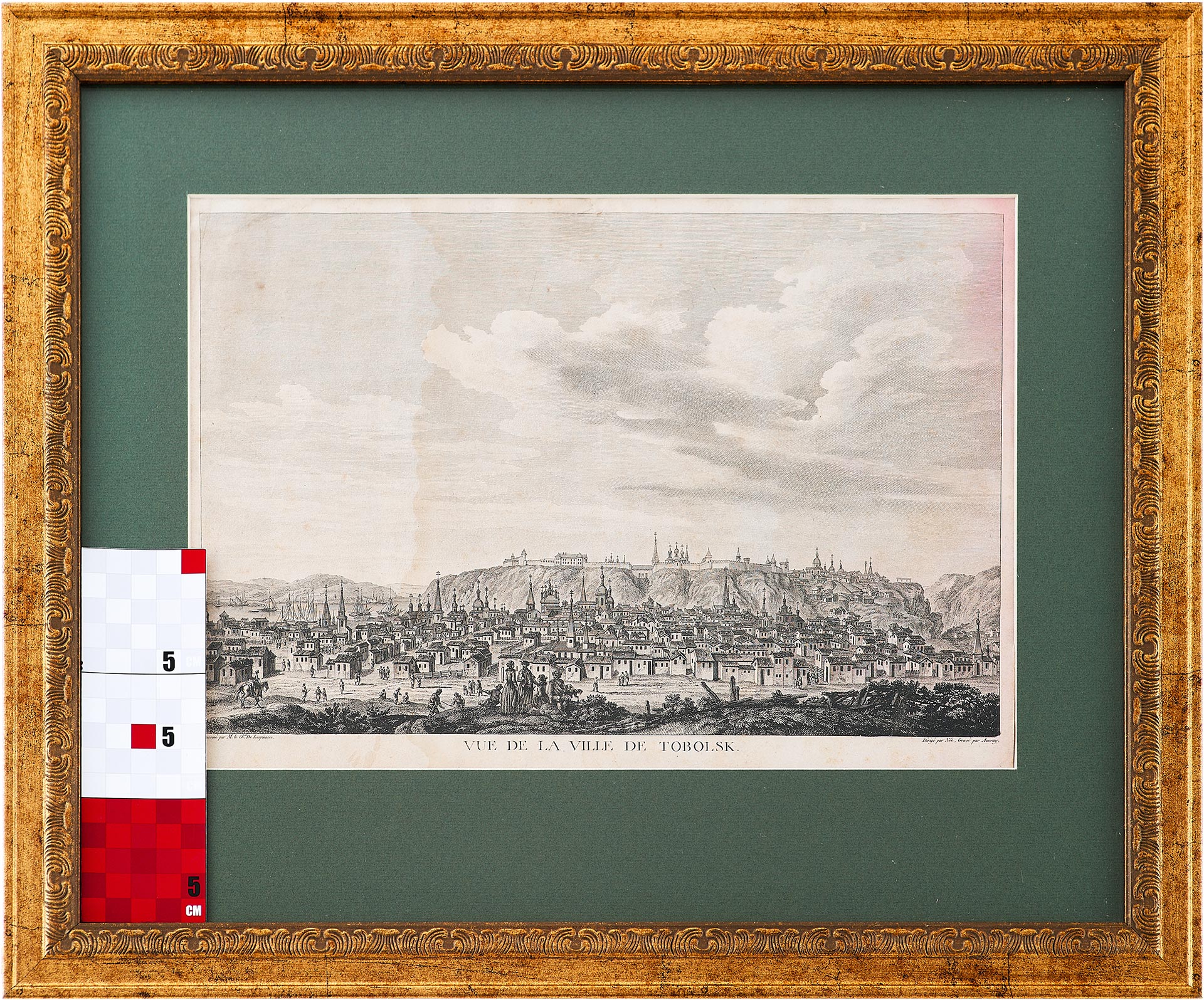 сочинению Н.Г.Леклерка. Оригинал имеет классическую для панорамных видов городов того времени композицию, обладает хорошей репрезентативностью, эффектен, интересен деталями. Зрителю открывается вид на Тобольск. Работы гравера Фр.-Д. Нее и его учеников отличает прекрасная техника.Одно из самых ранних видовых изображений Тобольска. Гравюра имеет