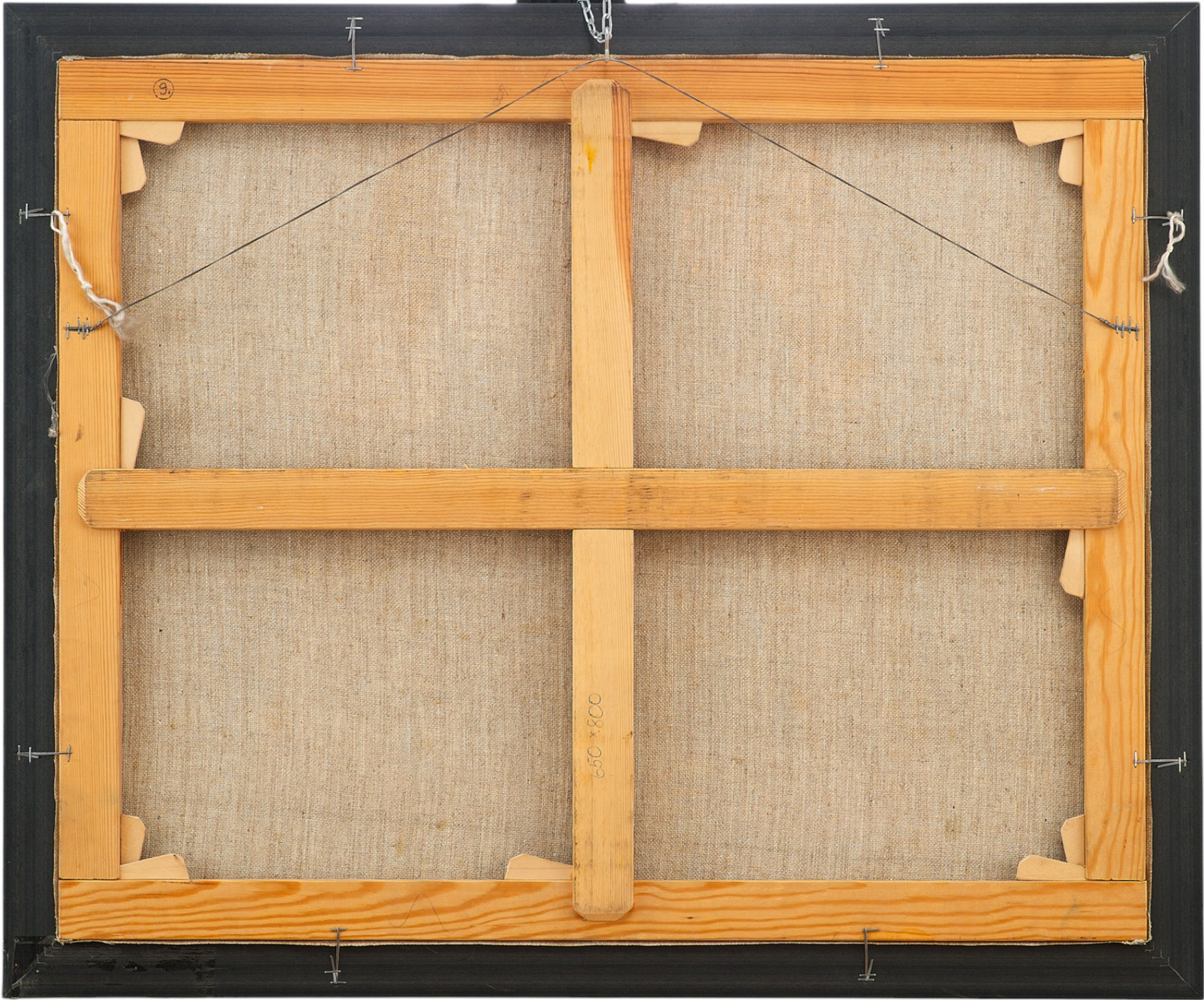 В правом нижнем углу фирменный знак в виде монограммы, заключенной в круг, встречающийся на других работах автора. Датировка и атрибуция: По состоянию живописных материалов временем создания произведения можно считать 1990-2004 гг. В результате атрибуции данной работы и сравнения ее с эталонными произведениями А.И.Языкова, установлено сходство в колористическом и композиционном решении (см.прил.); приемах построения красочного слоя и характере мазка при изображении отдельных деталей. Наличие подписи, время создания, а также стилистические и технологические признаки, представленной на экспертизу картины, позволяют с уверенностью отнести ее к творчеству художника Языкова Алексея Игоревича.