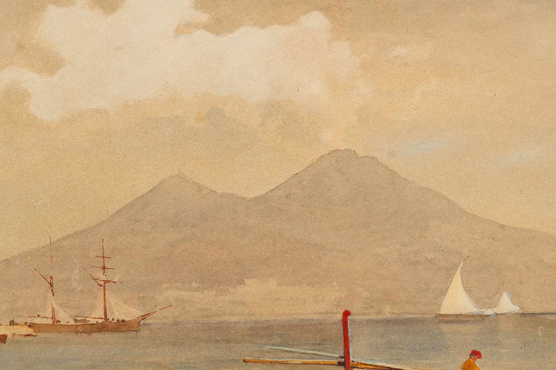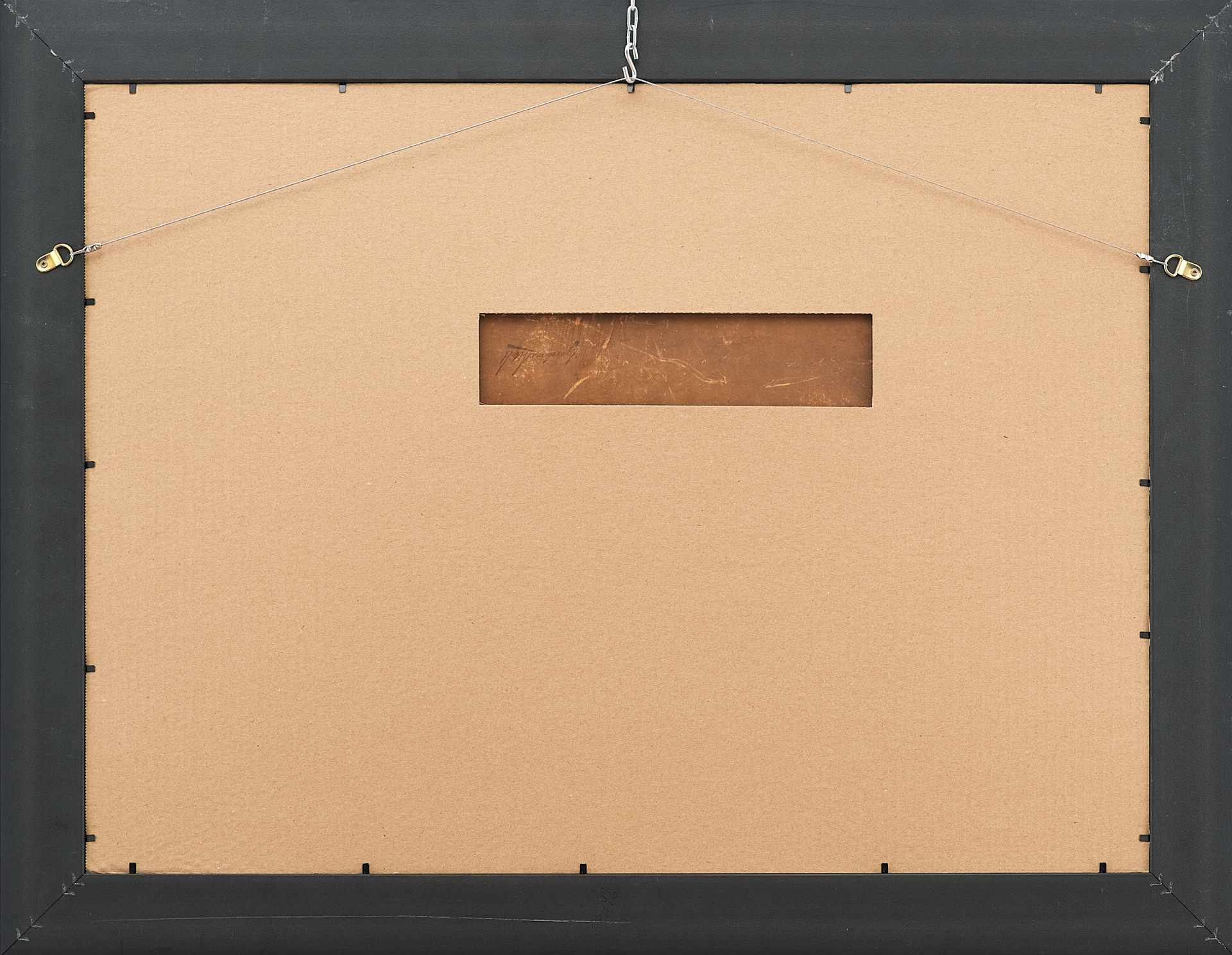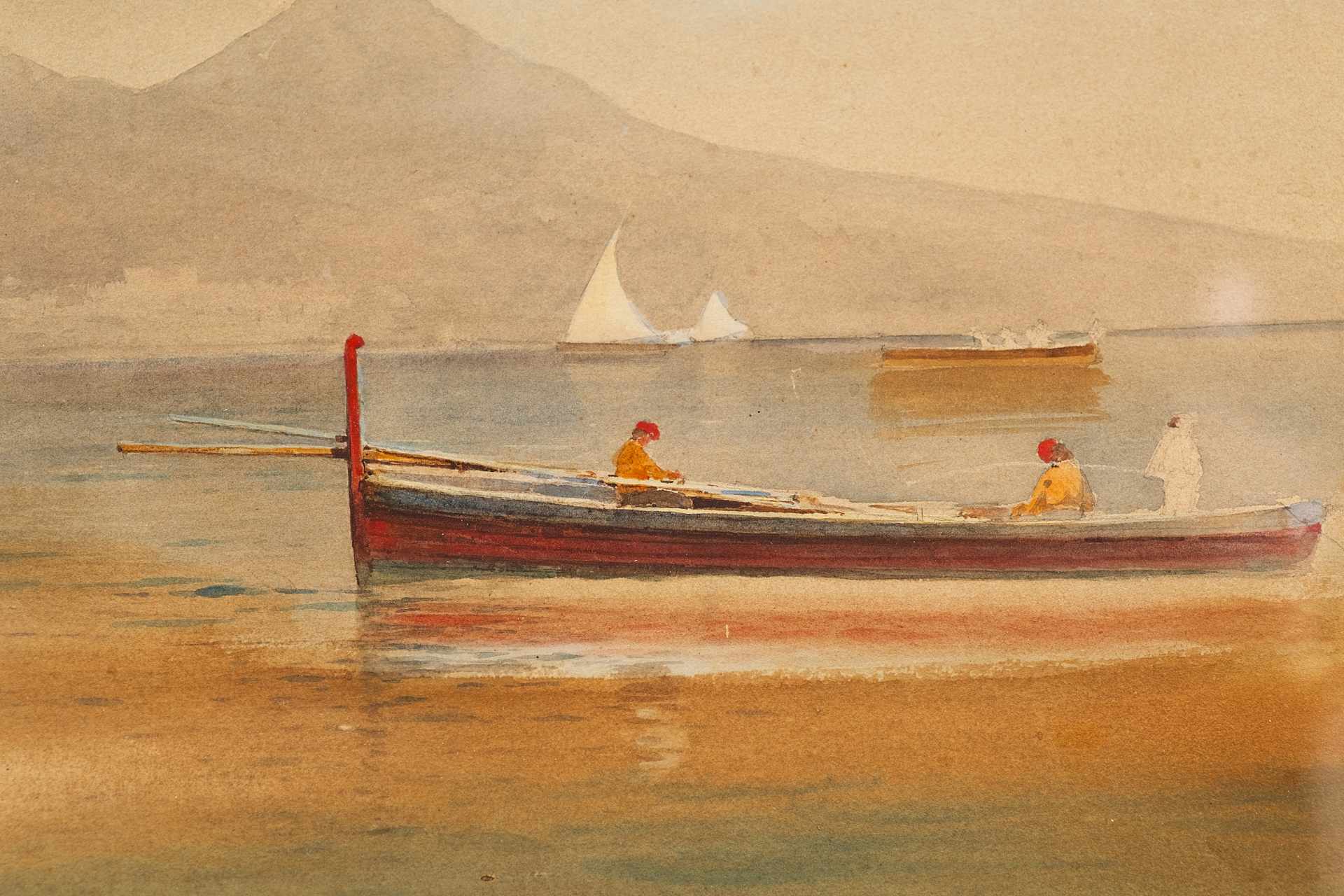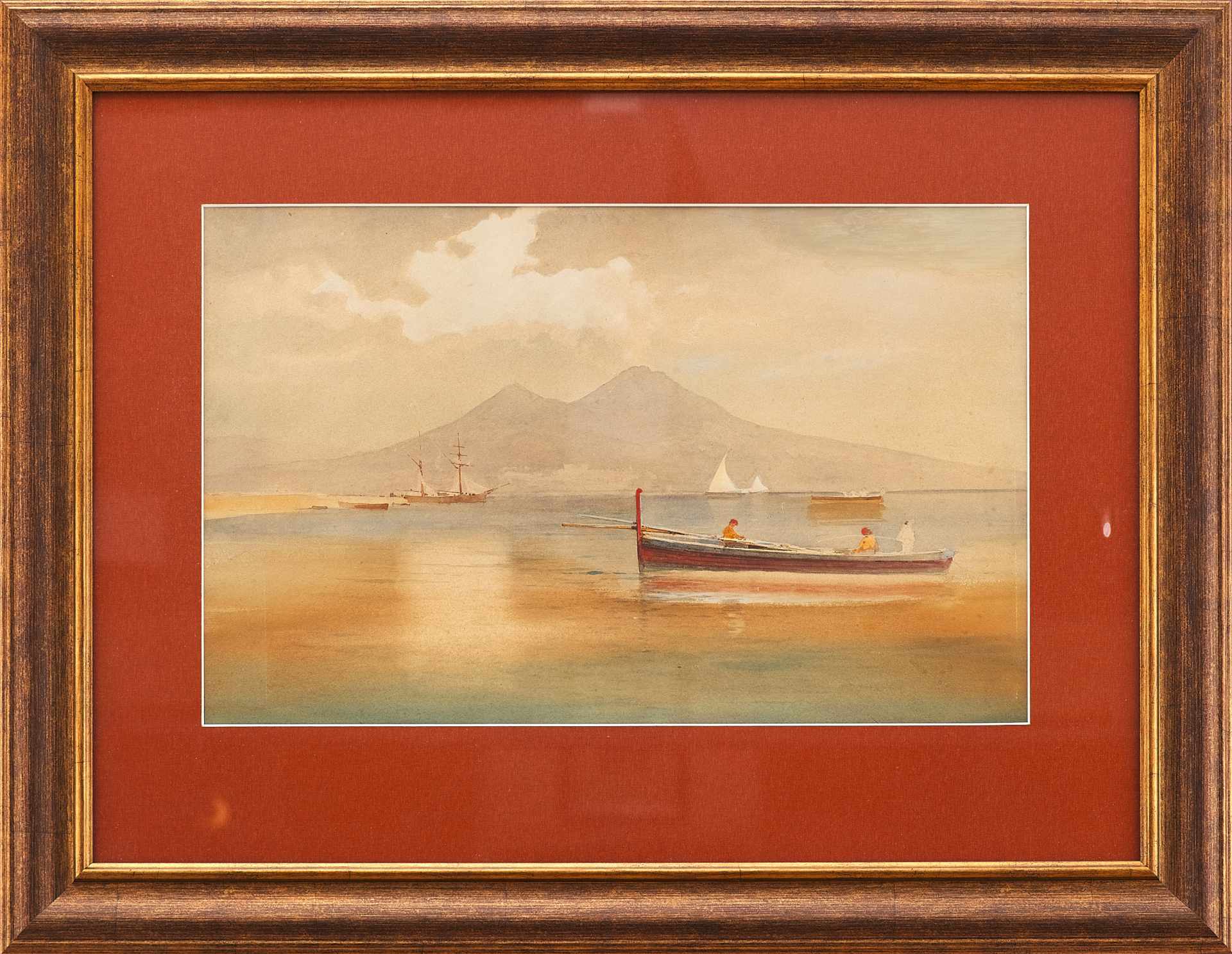 На картине изображен морской пейзаж. На водной поверхности широкой коричневой полосой отражаются горы и небо, затянутое облаками. Справа рыбацкая лодка, на горизонте видны парусники. На обратной стороне картона чернилами надпись: “Н. Прокофьевъ”; справа вверху “Анна И. Гессенъ”. Произведение находилось в собрании семьи Гессен.