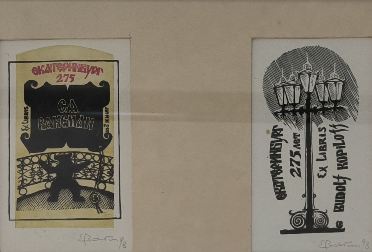 Планшет с двумя экслибрисами из книг С.А. Ваксмана и Р.В. Копылова СССР 1998