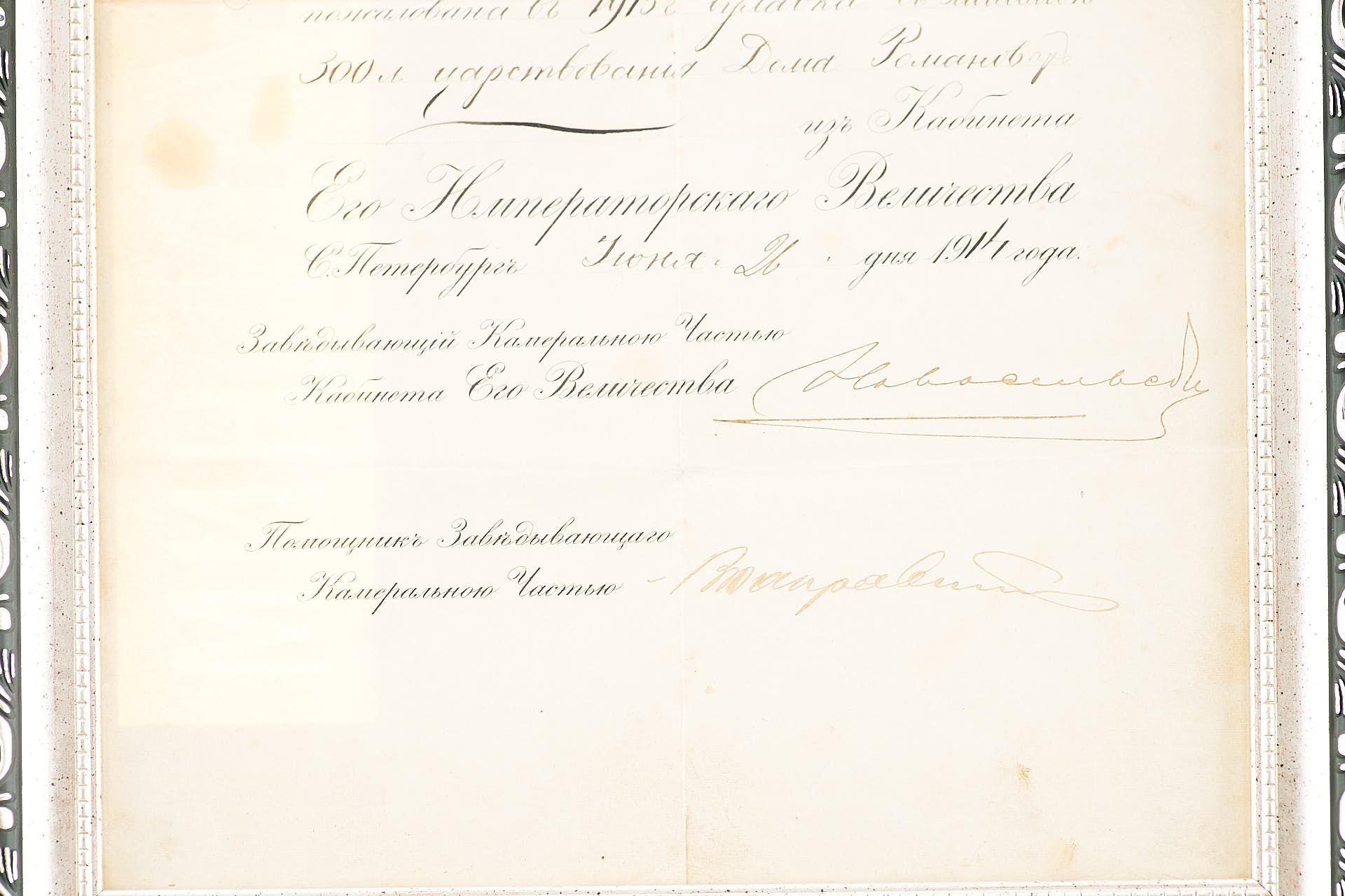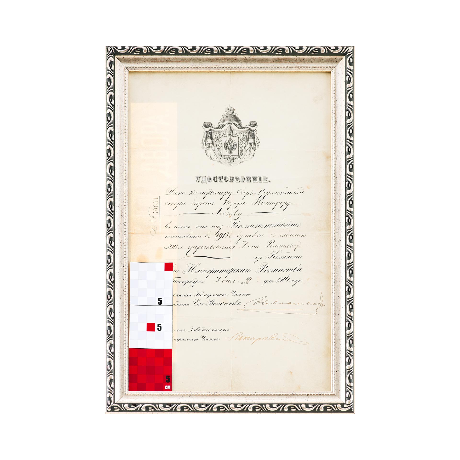 Удостоверение на награждение Брошью 300 ЛДР из Кабинета Его Императорского Величества 1914 г. Российская империя 26 июня 1914