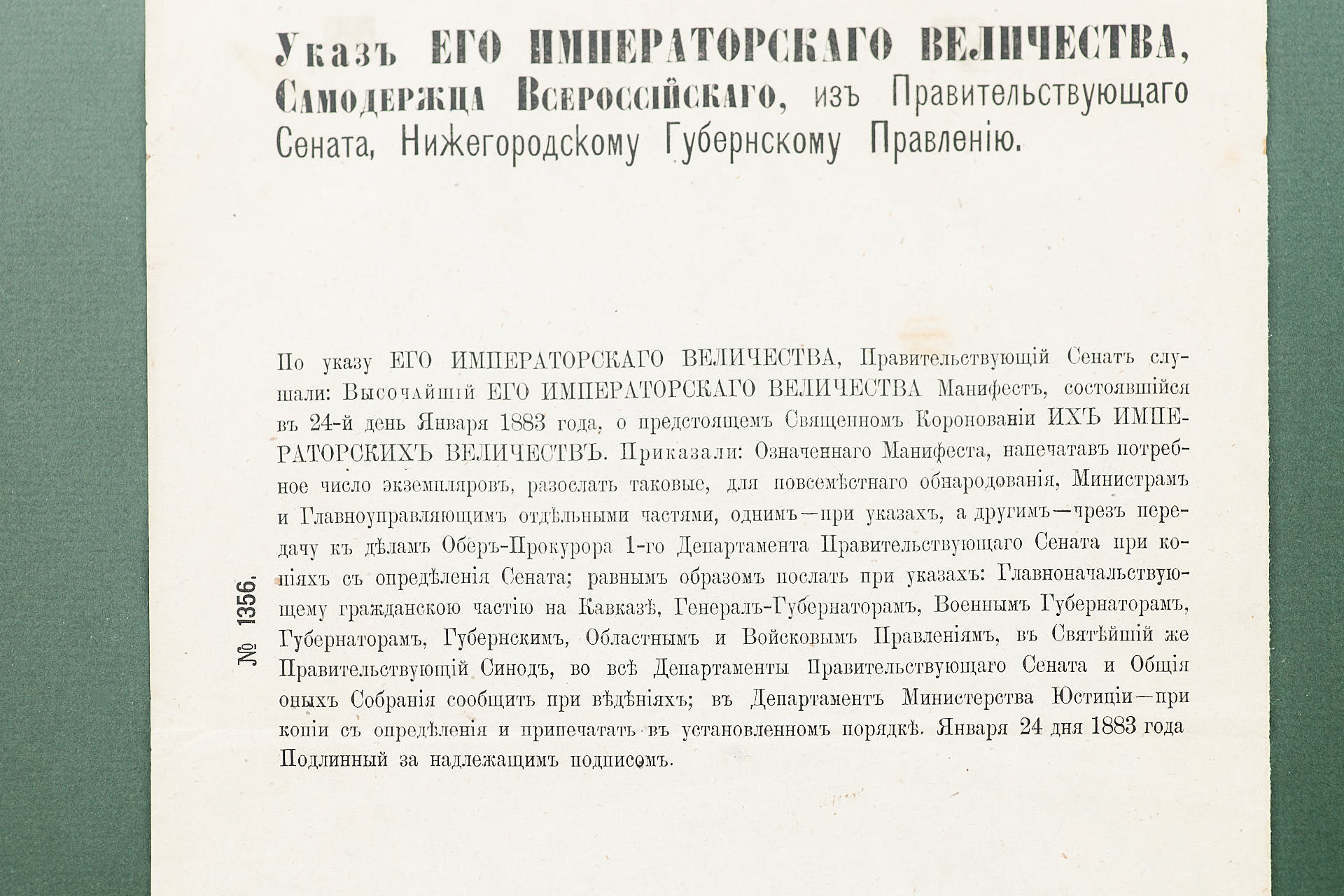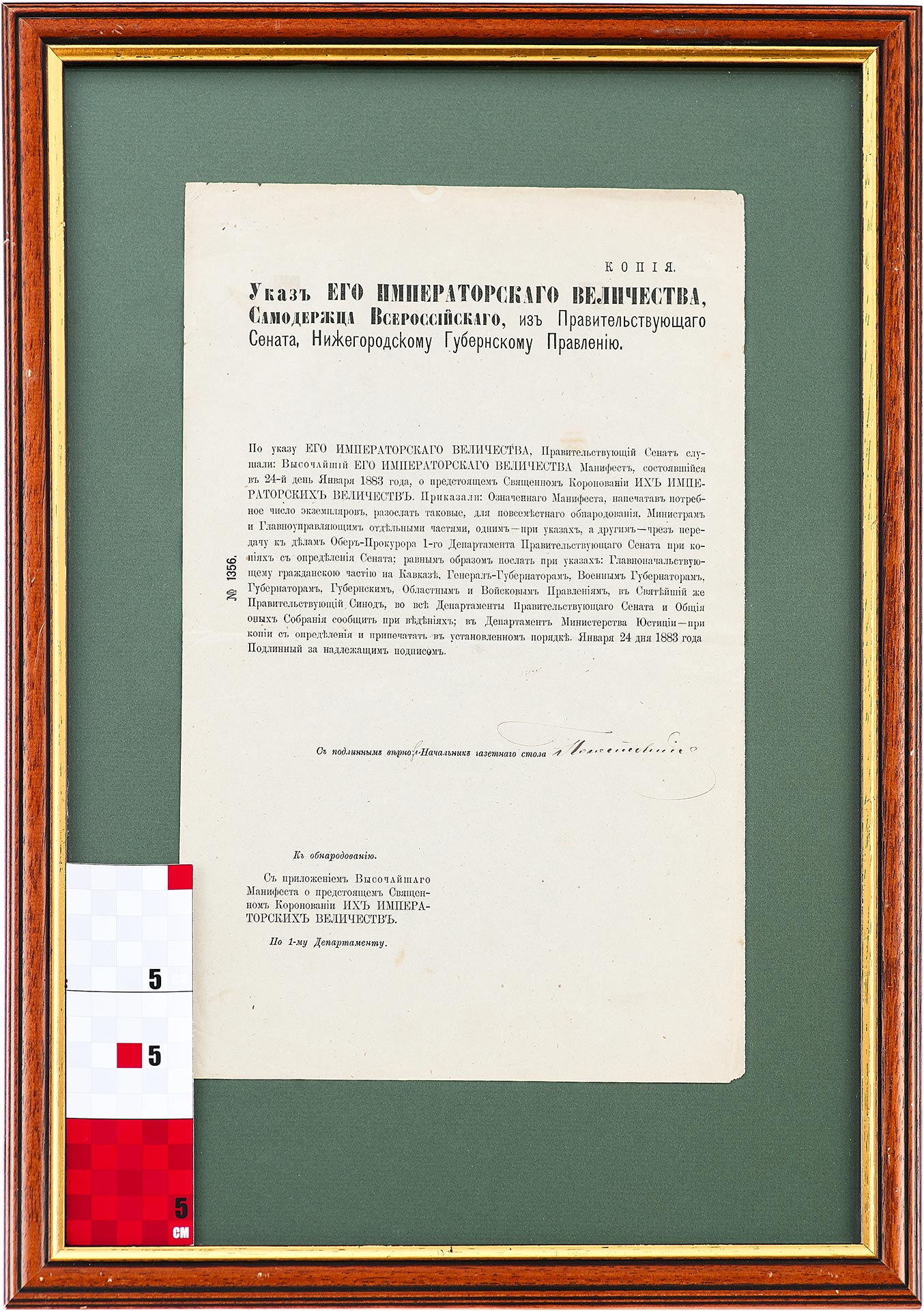 Копия Указа его Величества Нижегородскому губернскому правлению. Российская империя 24 января 1883