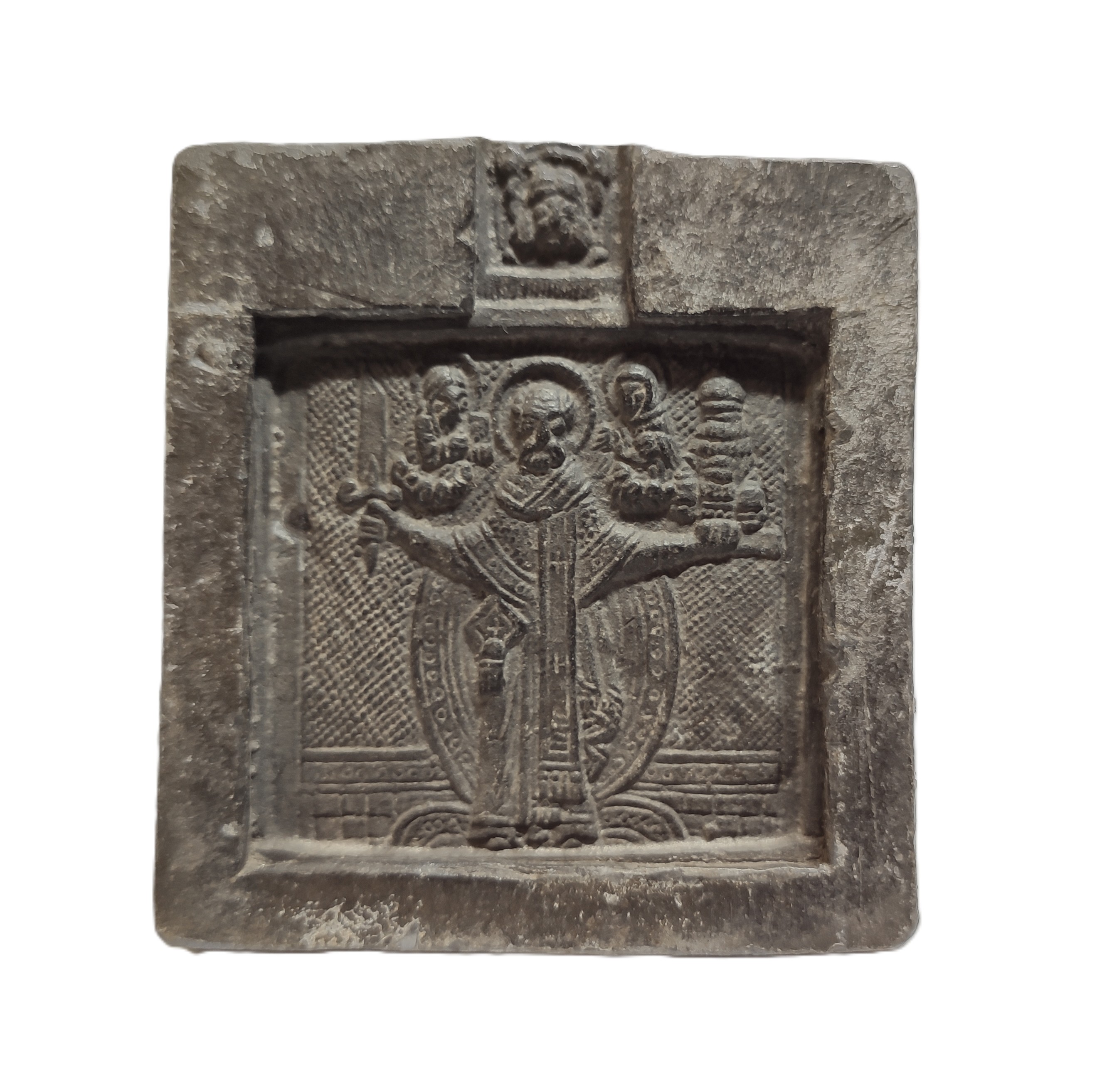 Литьевая модель иконы Св. Николай Можайский метал, Урал XIX в. 6,1х5,9 см. Урал XIX в.