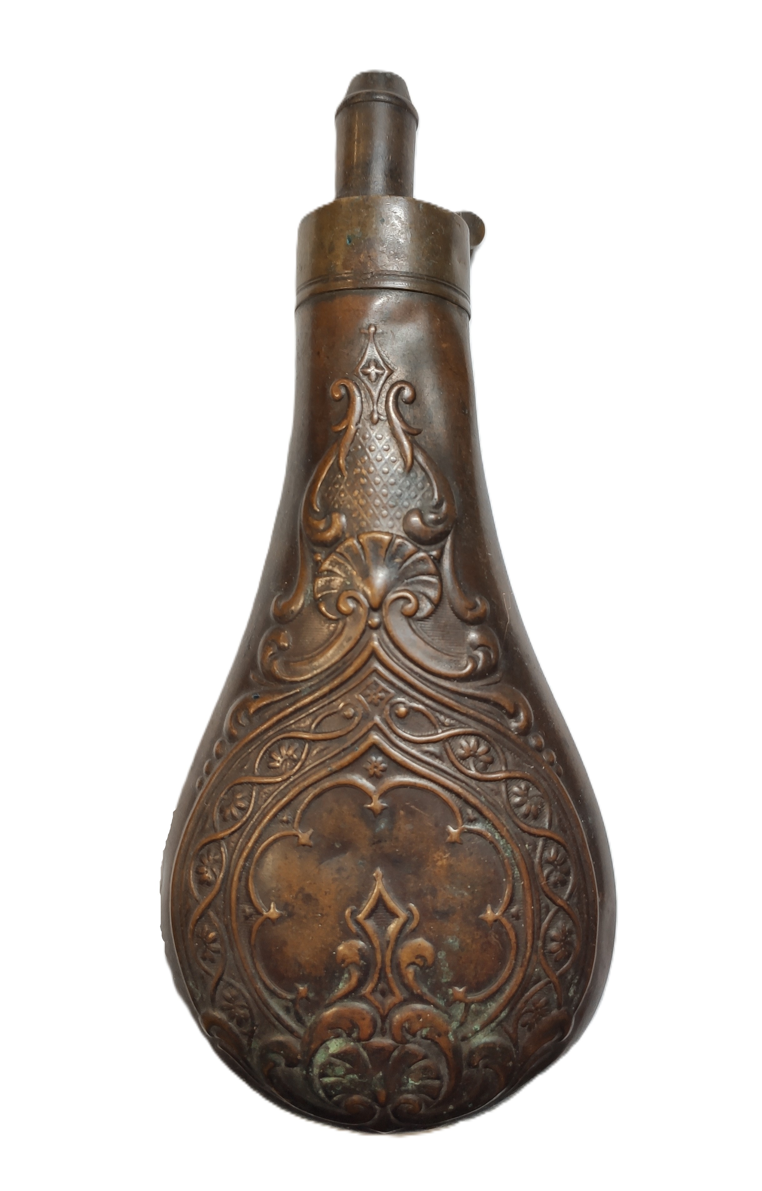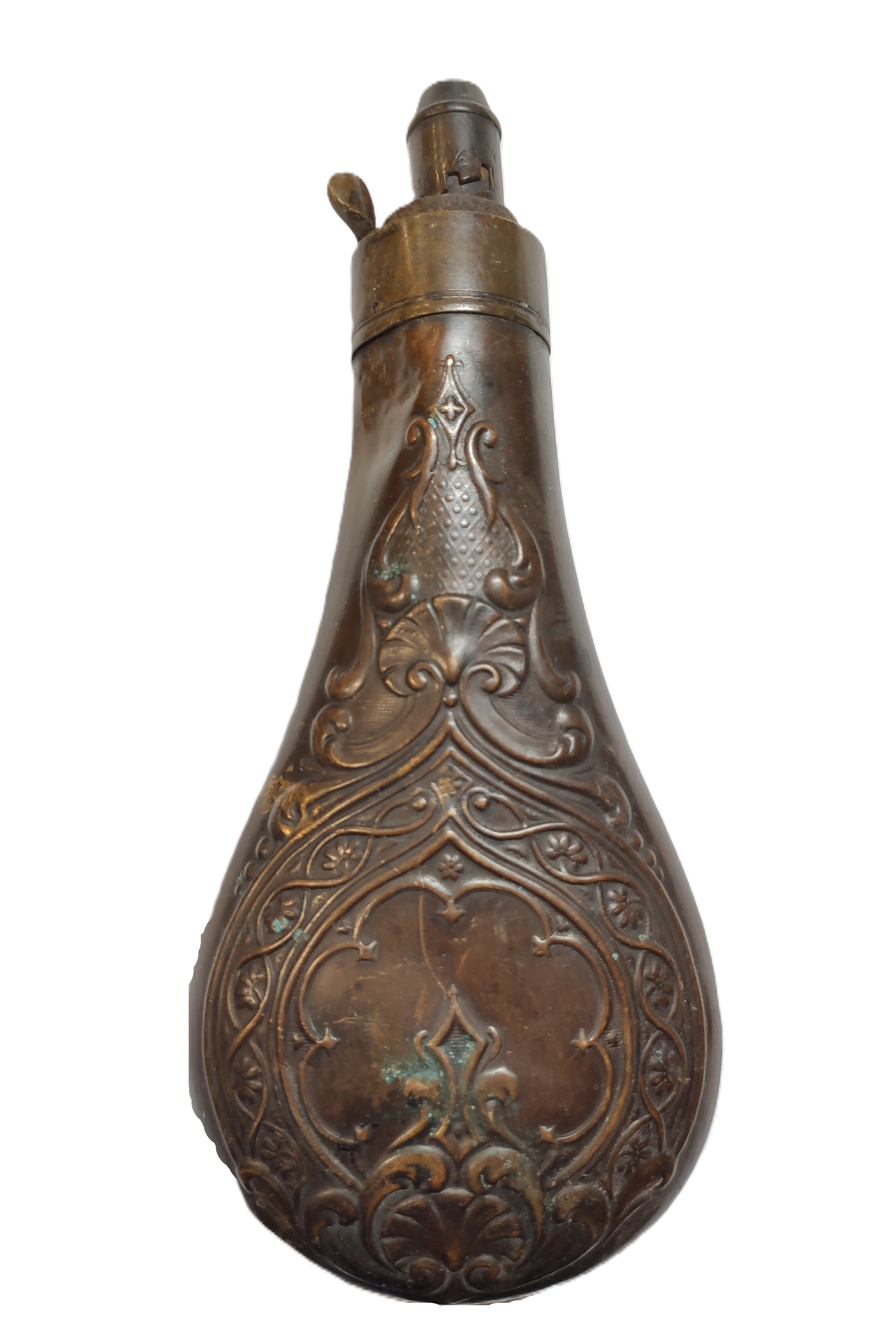 Пороховница Drams латунь, сталь Европа кон. XIX в. 20х8,5 см. Европа кон. XIX в.