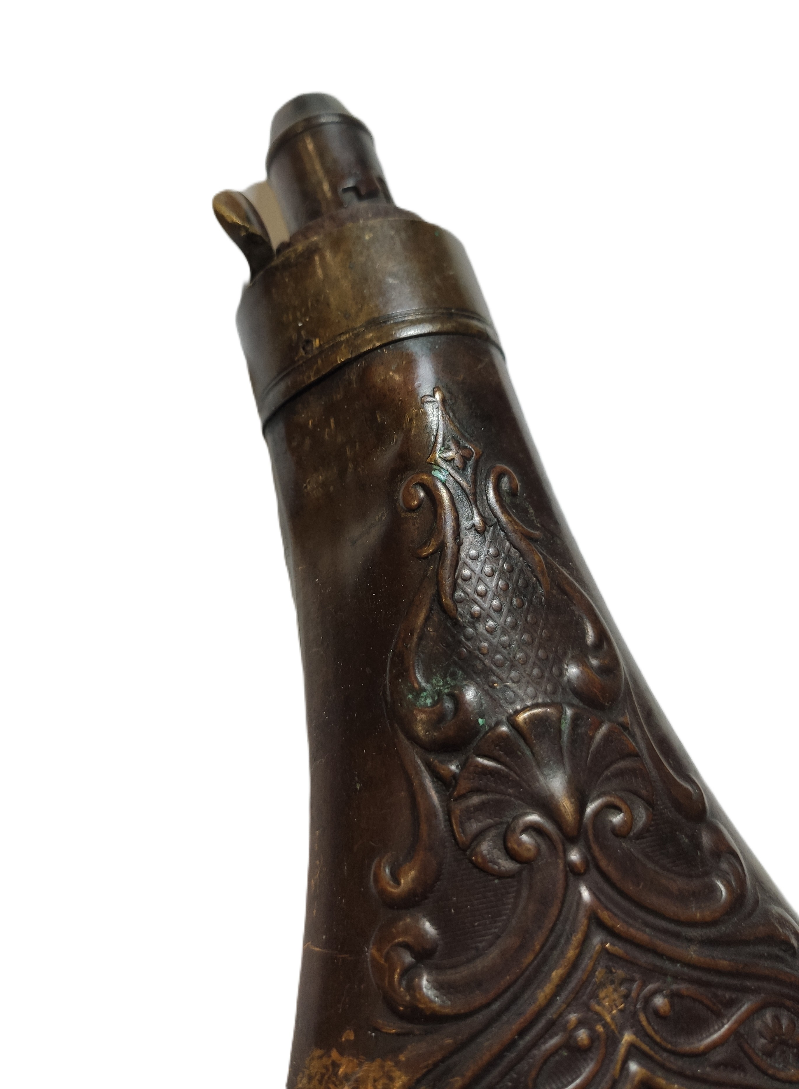Пороховница рог латунь Европа кон. XIX в. 22х8 см. Европа кон. XIX в.