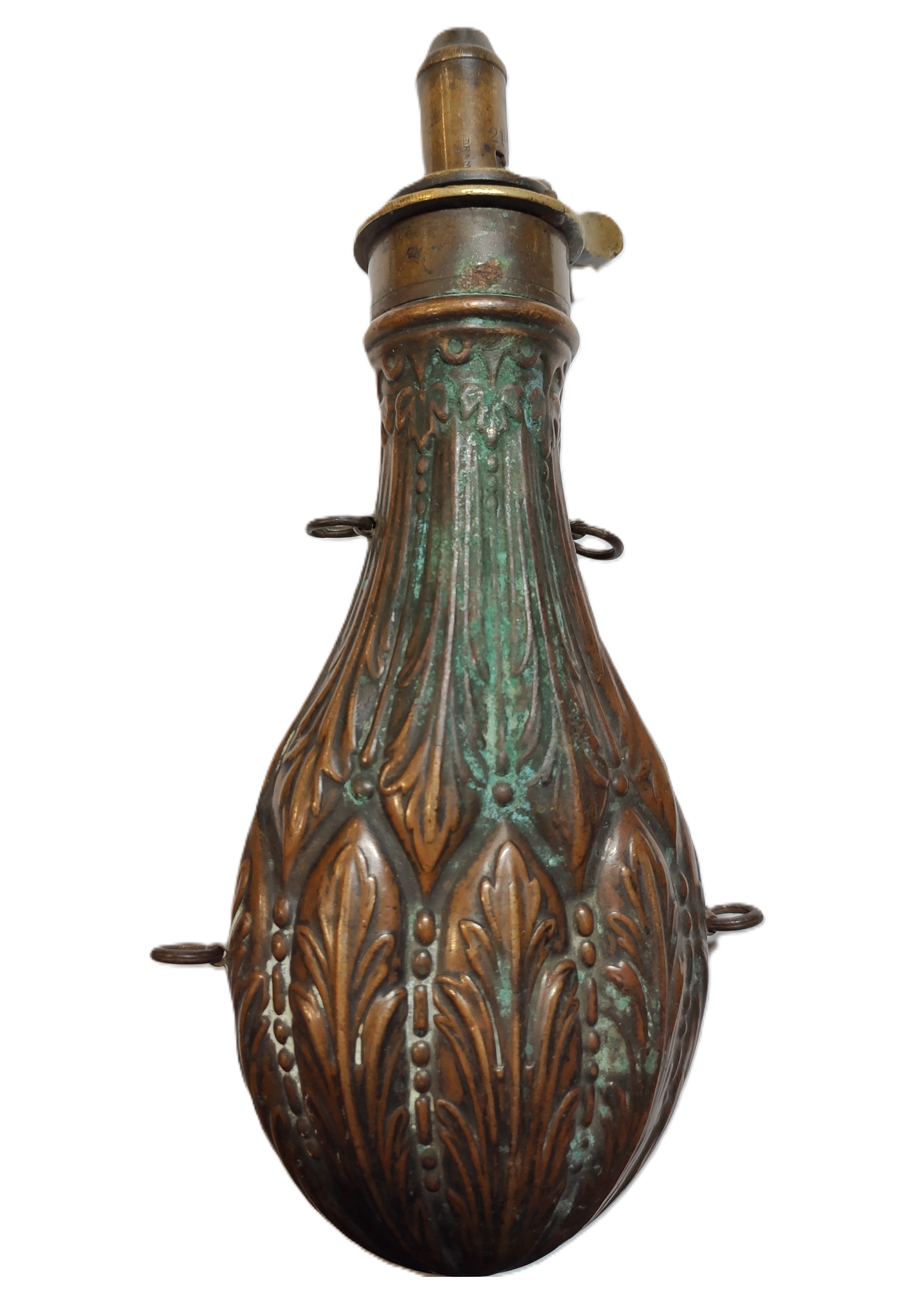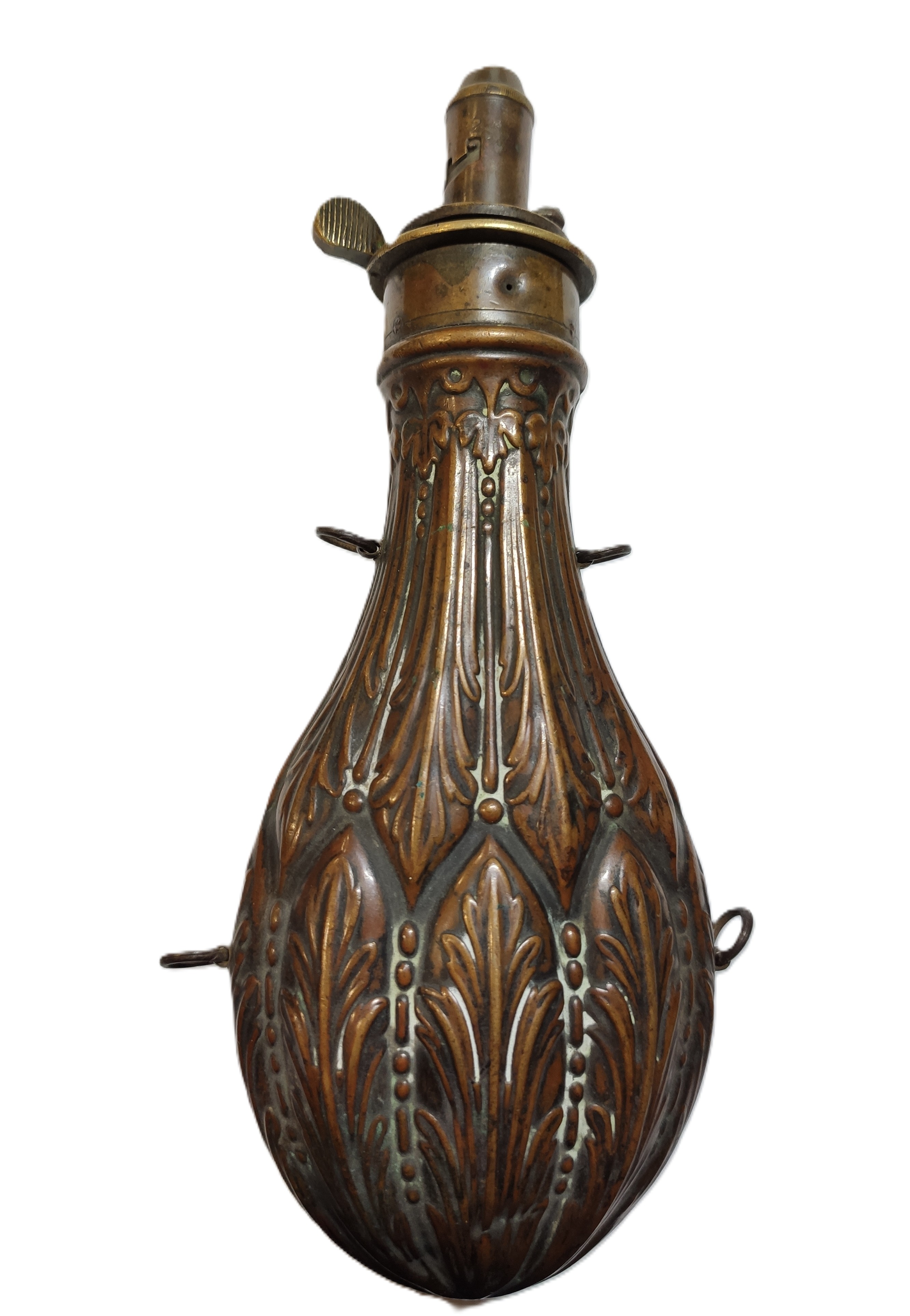 Пороховница для дульнозарядных ружей James Dixon & Sons Sheffield латунь, сталь кон. XIX в. 20,5х8,5 см.