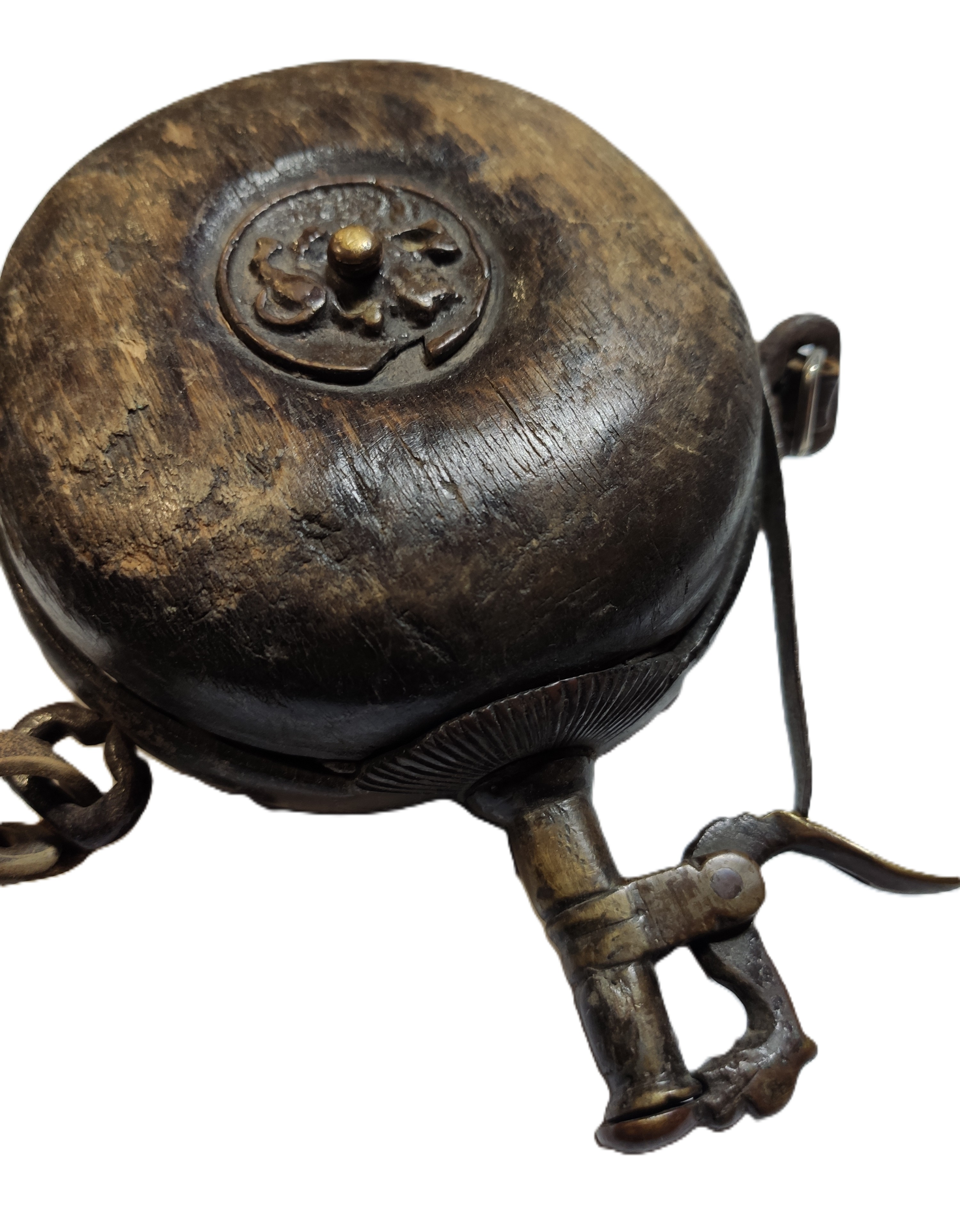 Пороховница дерево, латунь Россия (?) кон. XVIII в. Размер 18х13х4 см.