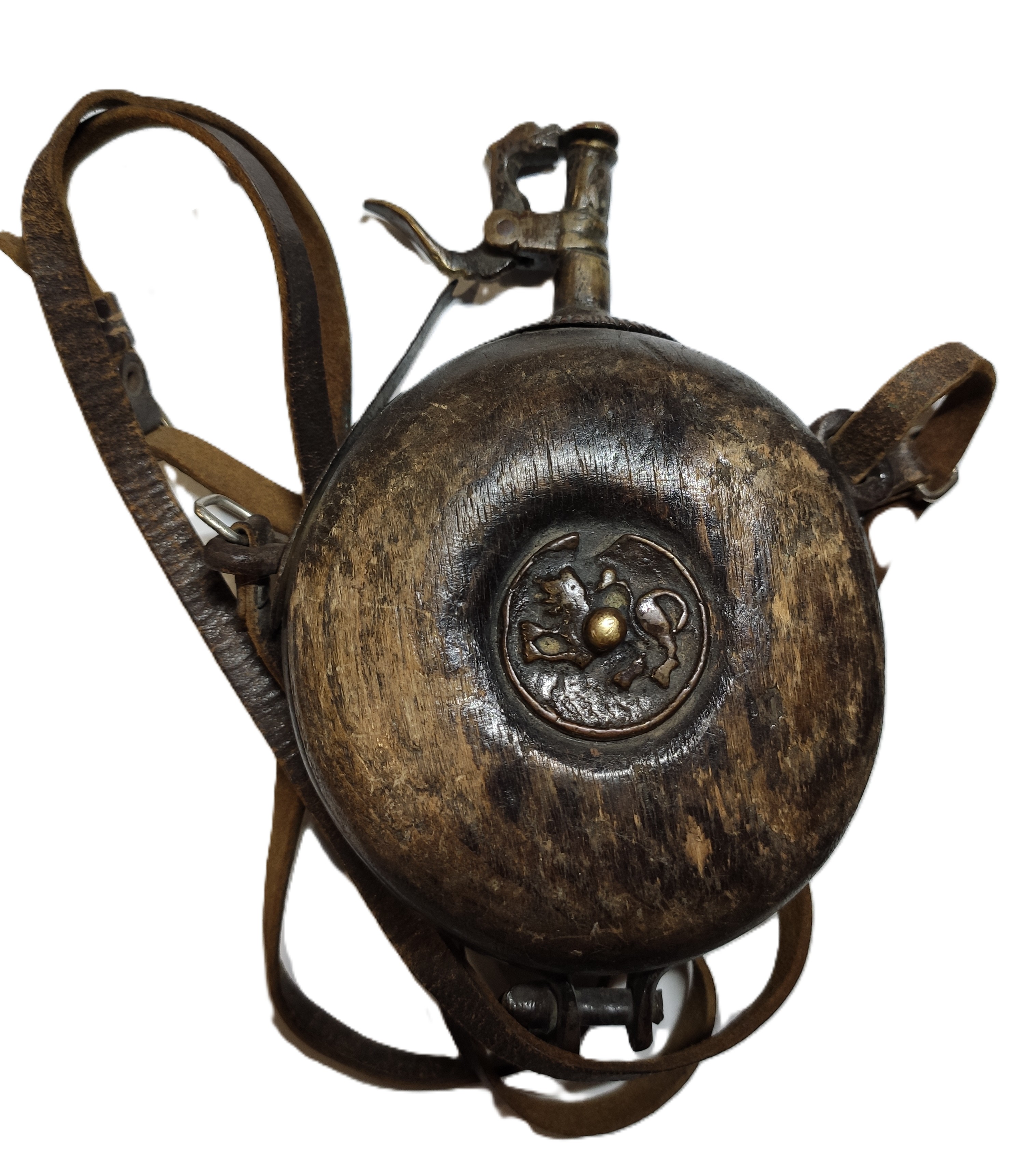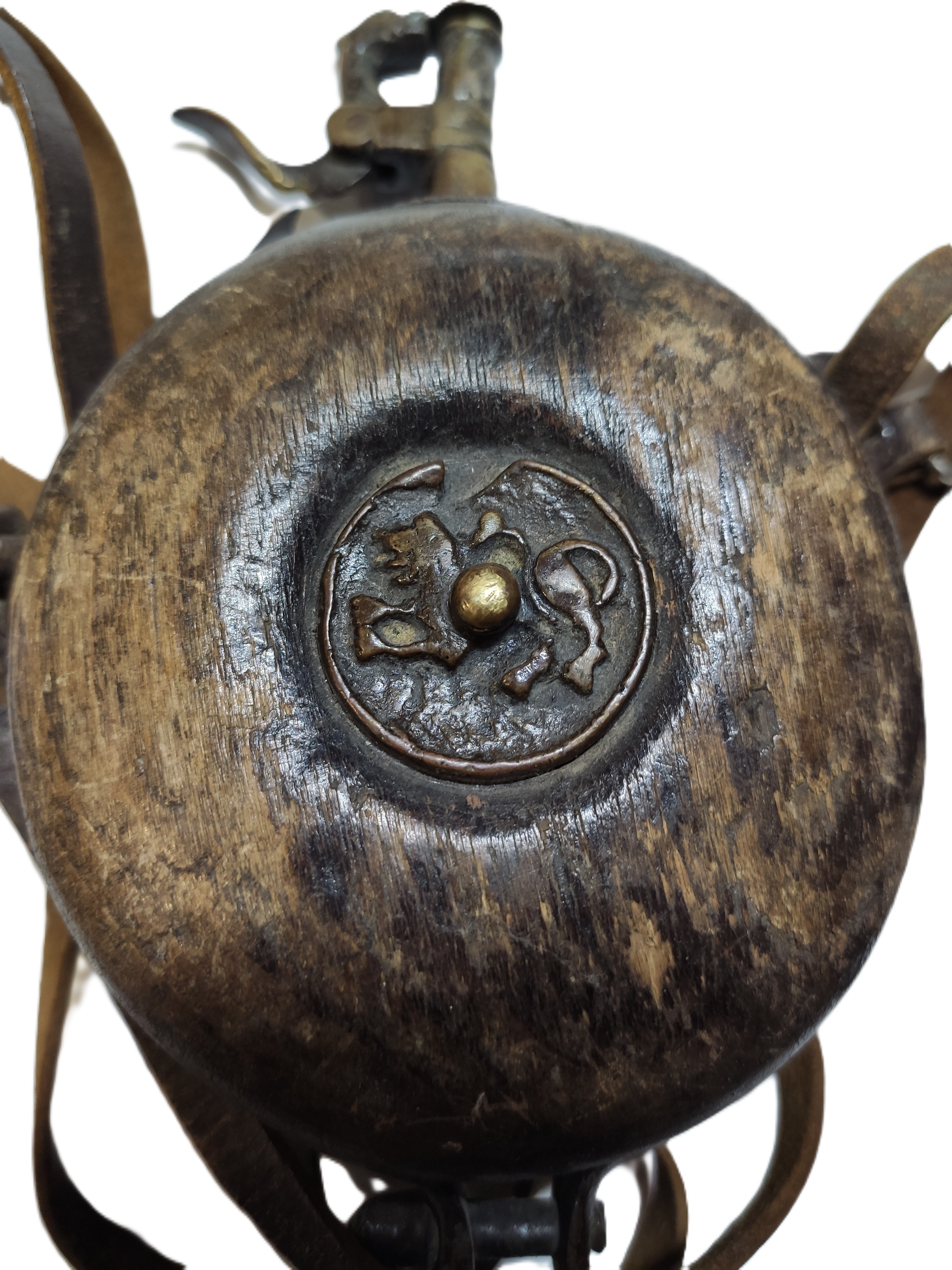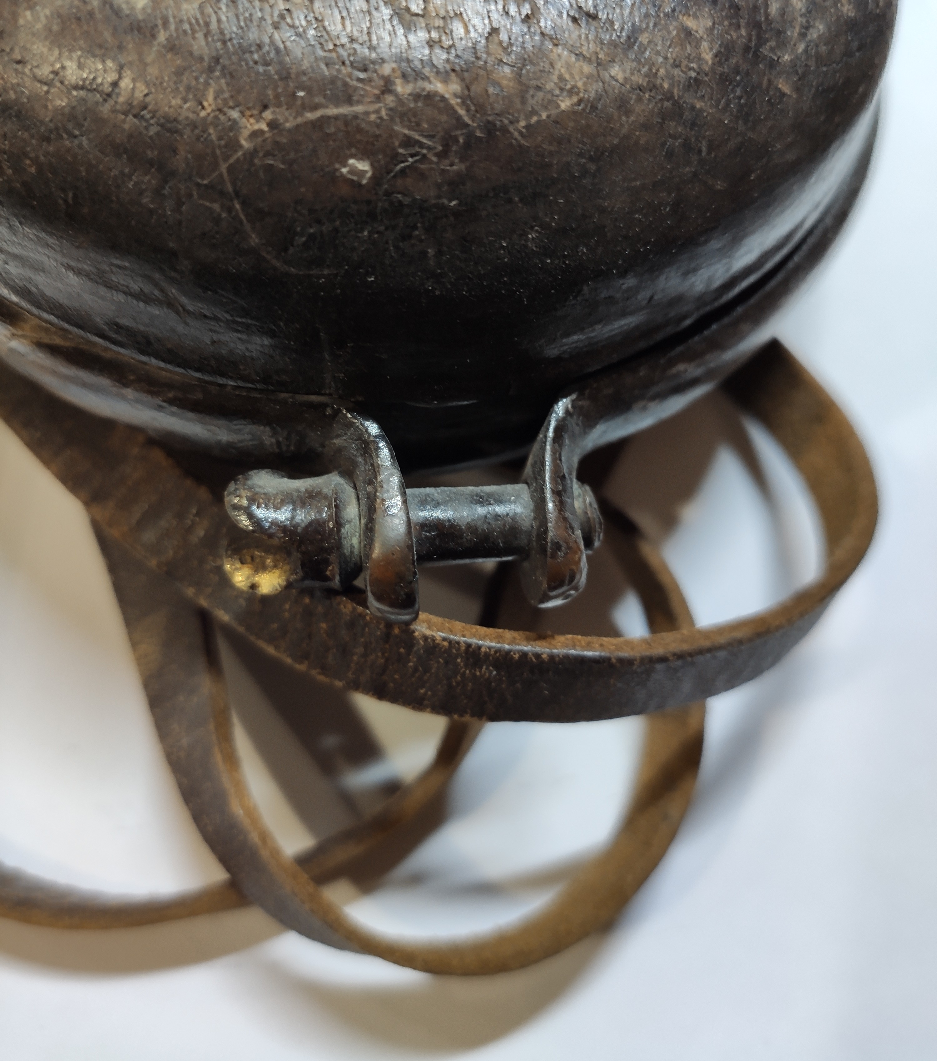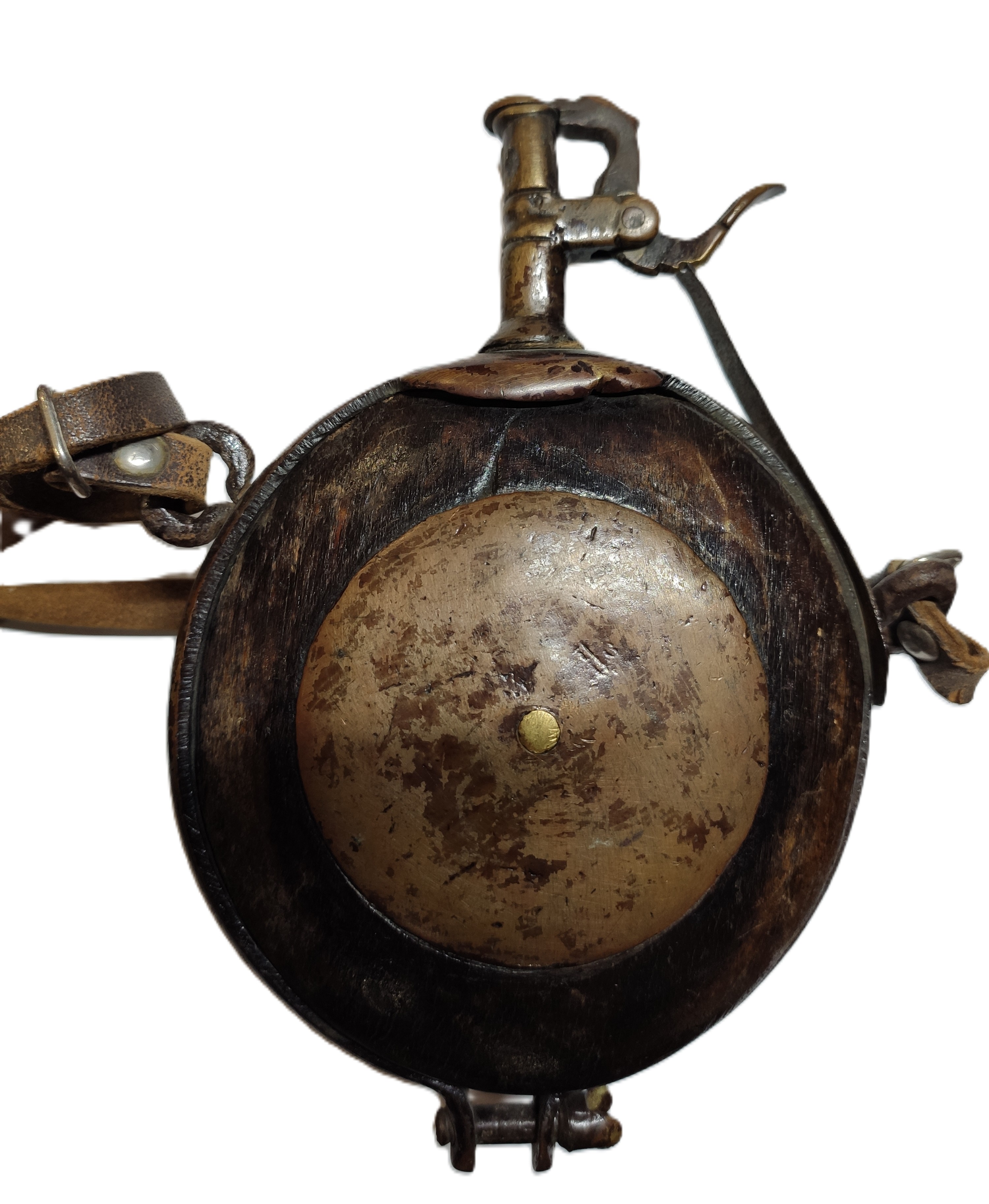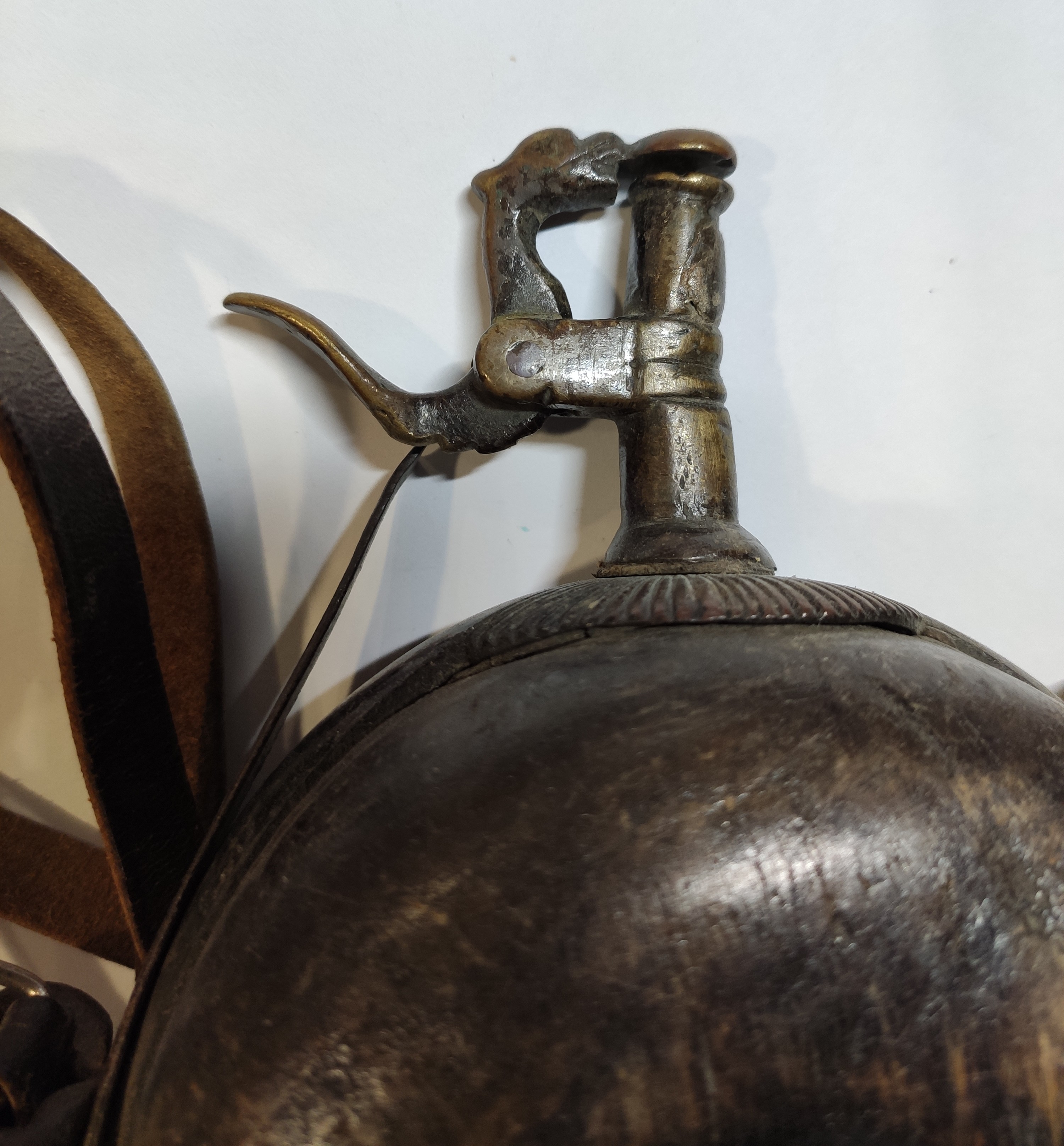 Пороховница в кожаном чехле Dixie Gun Works латунь, сталь США 1950-е гг. 20,5х8,5 см. Юнион-Сити, США кон. XIX в.