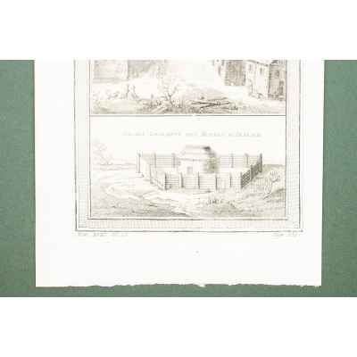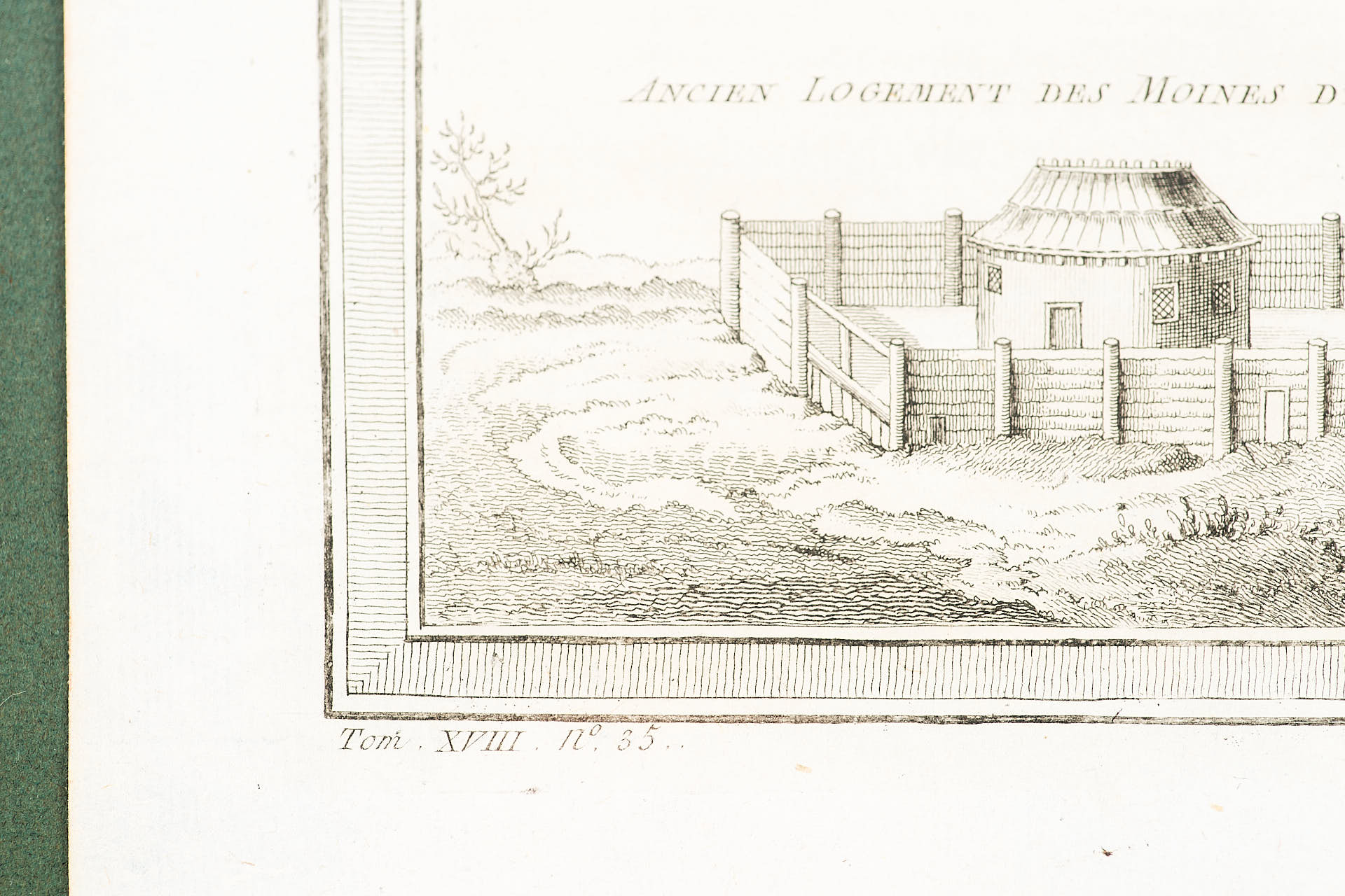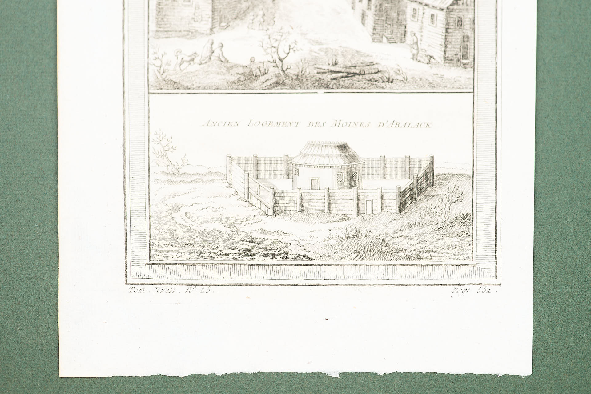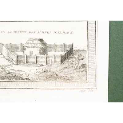 На нижней части показано отдельное здание, обнесённое забором. Подпись гласит: «Ancien Logement des Moines d'Abalack» («Древнее жилище монахов в Абалаке»).