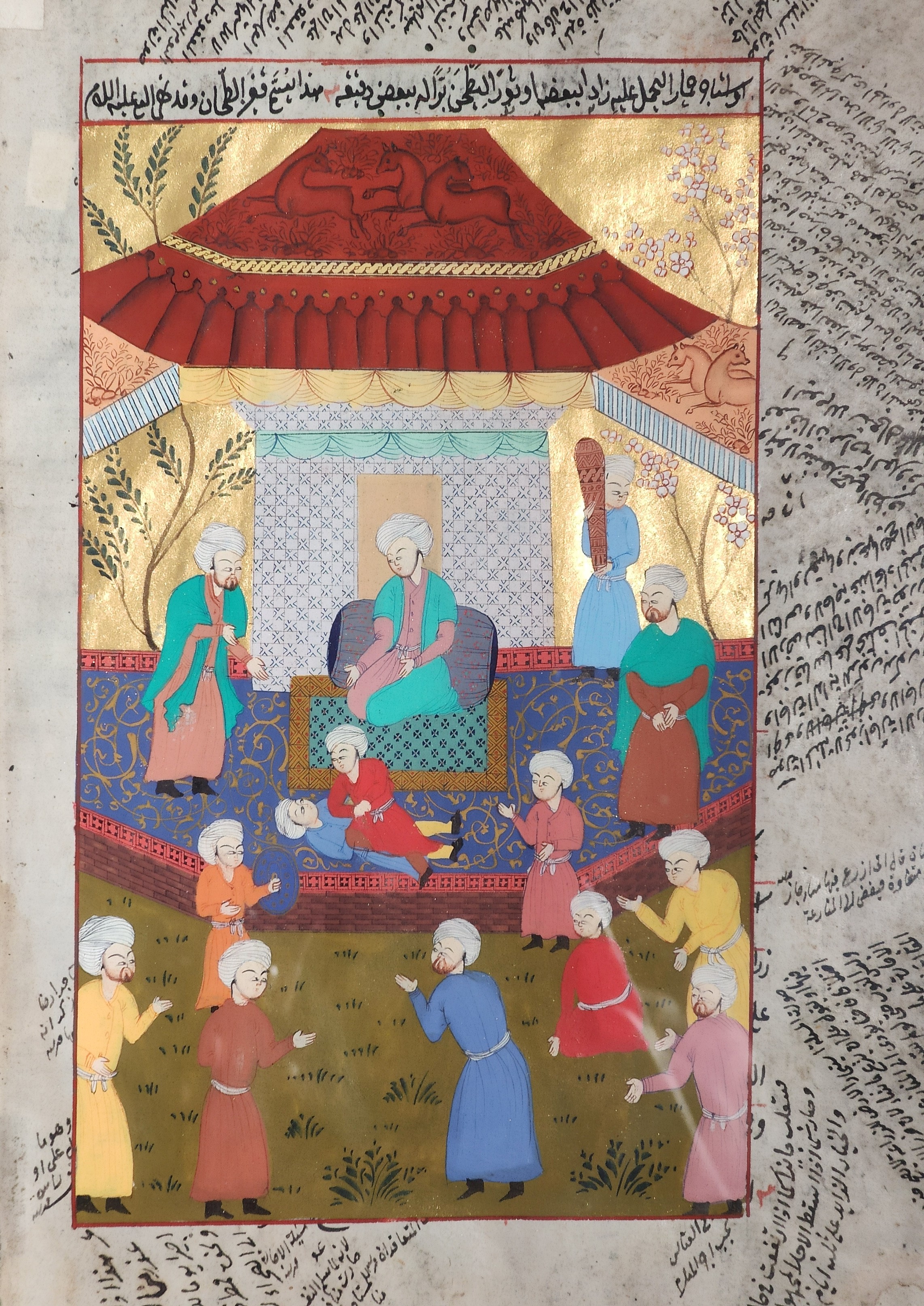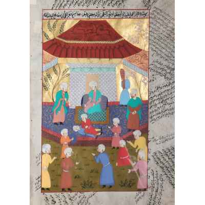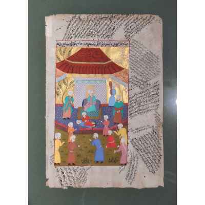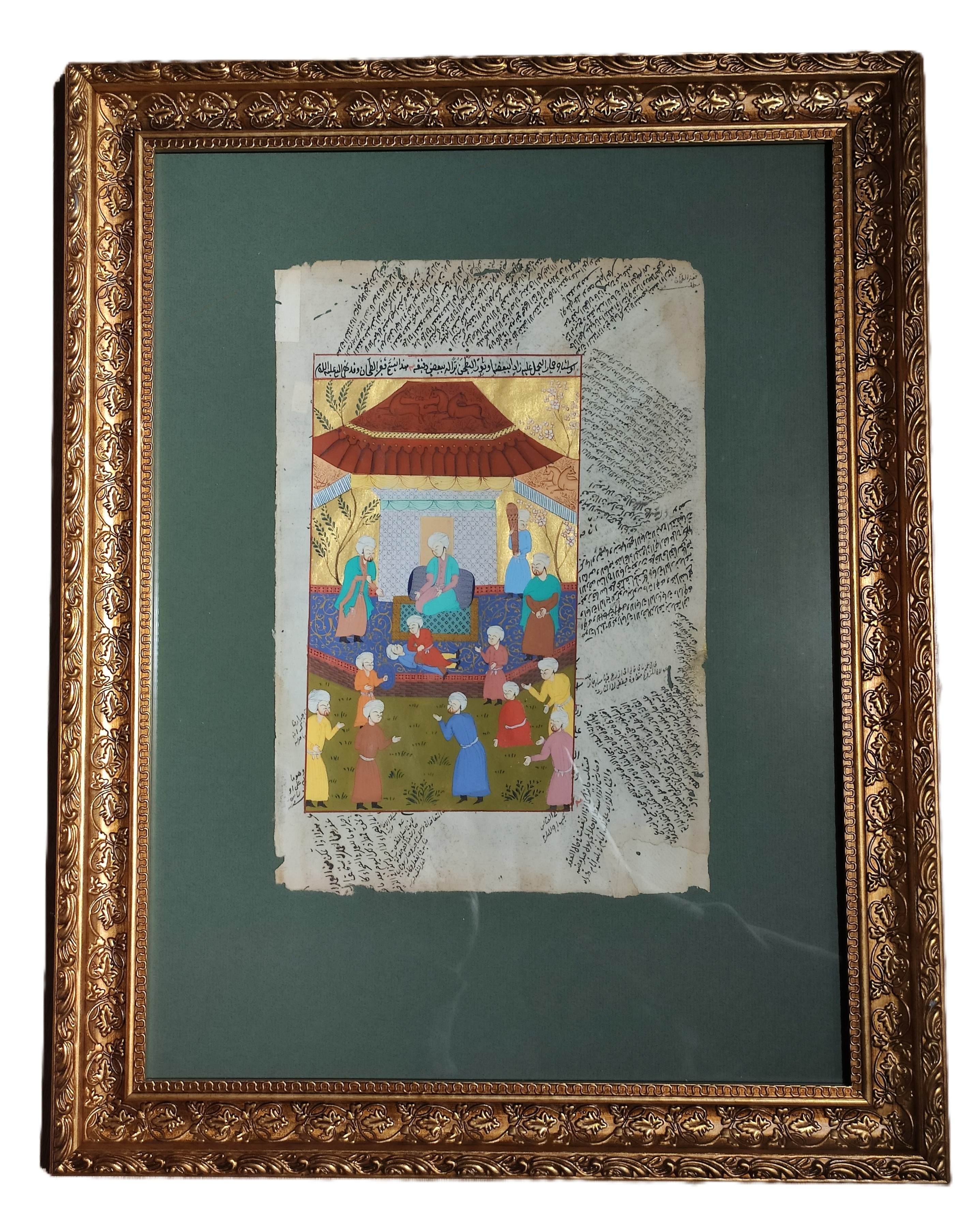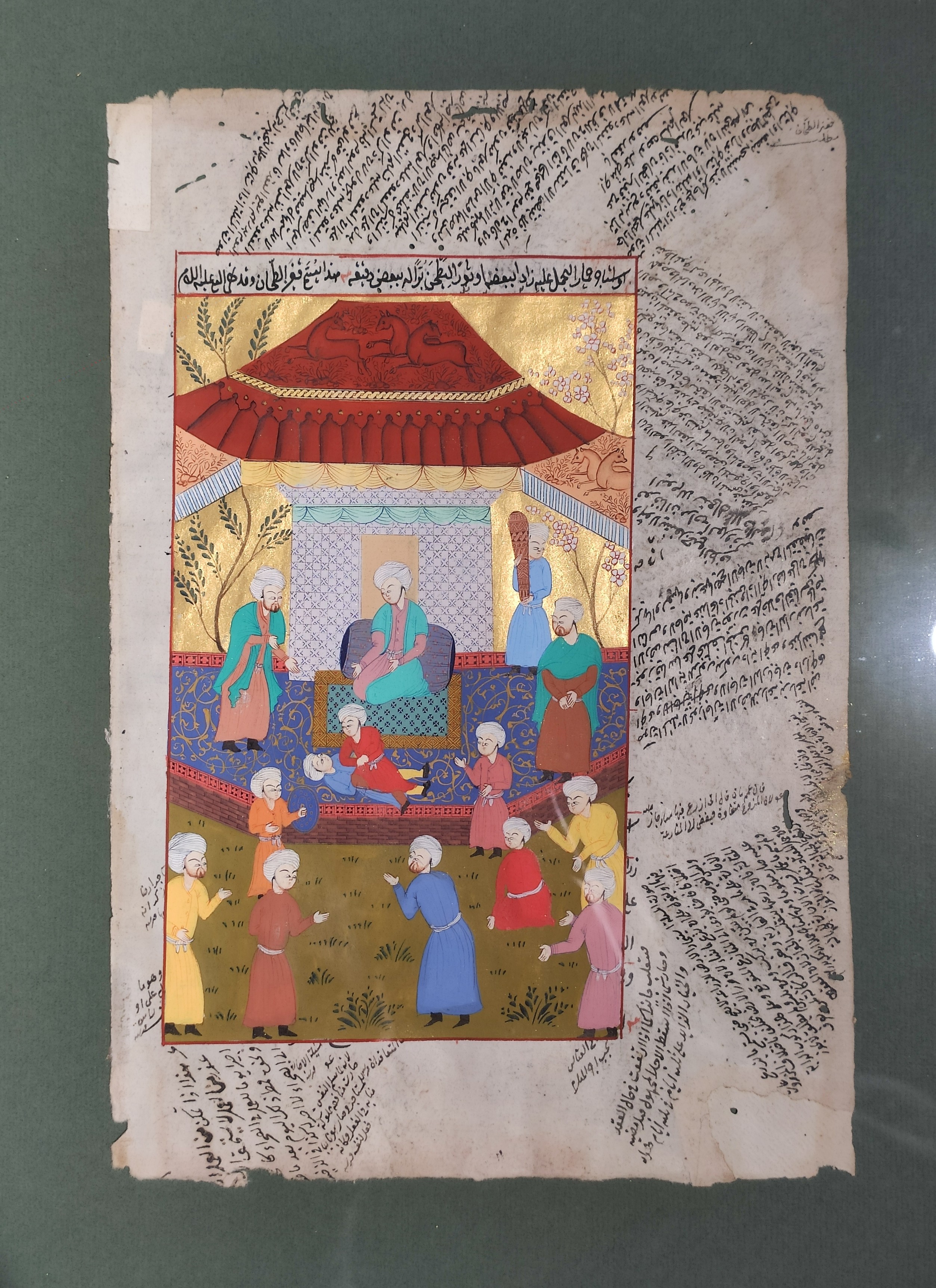 Книжная миниатюра, на полях которой присутствую каллиграфические надписи.