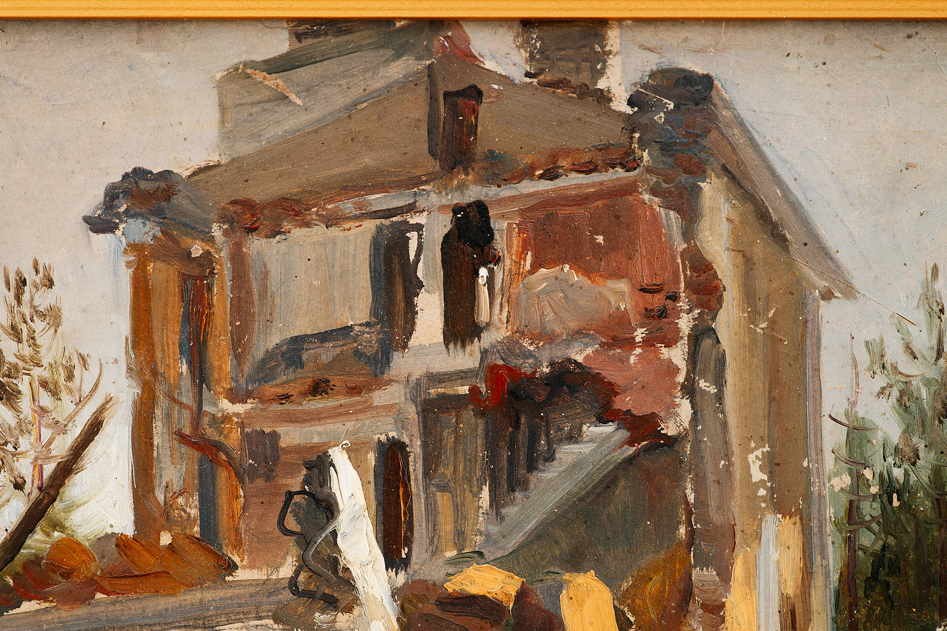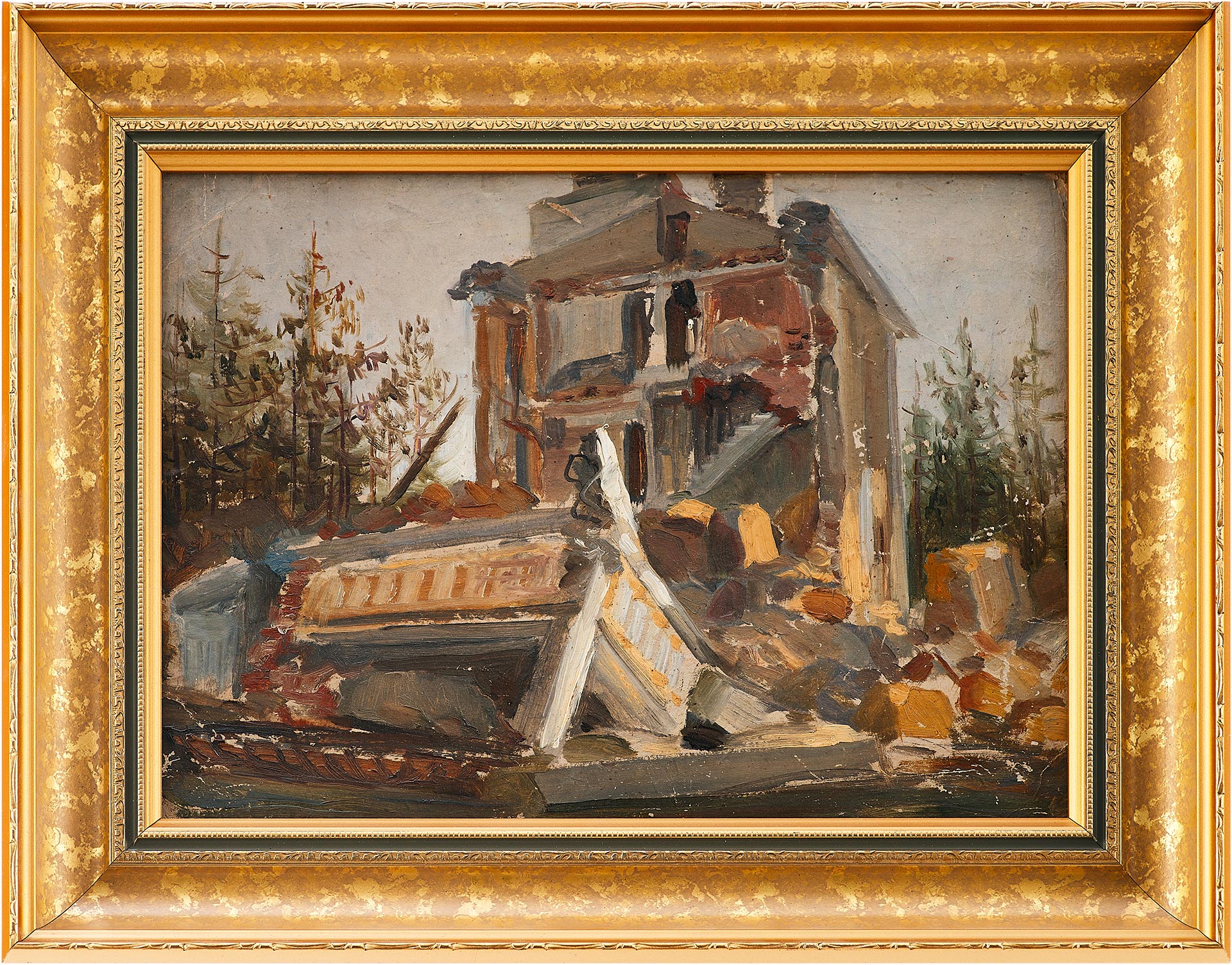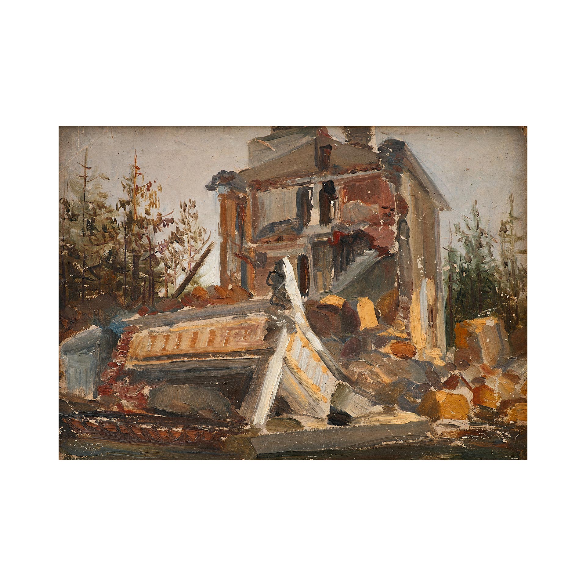 С. В. Герасимов Разрушенная усадьба картон, масло сер. ХХ в. Размер 27х37 см.